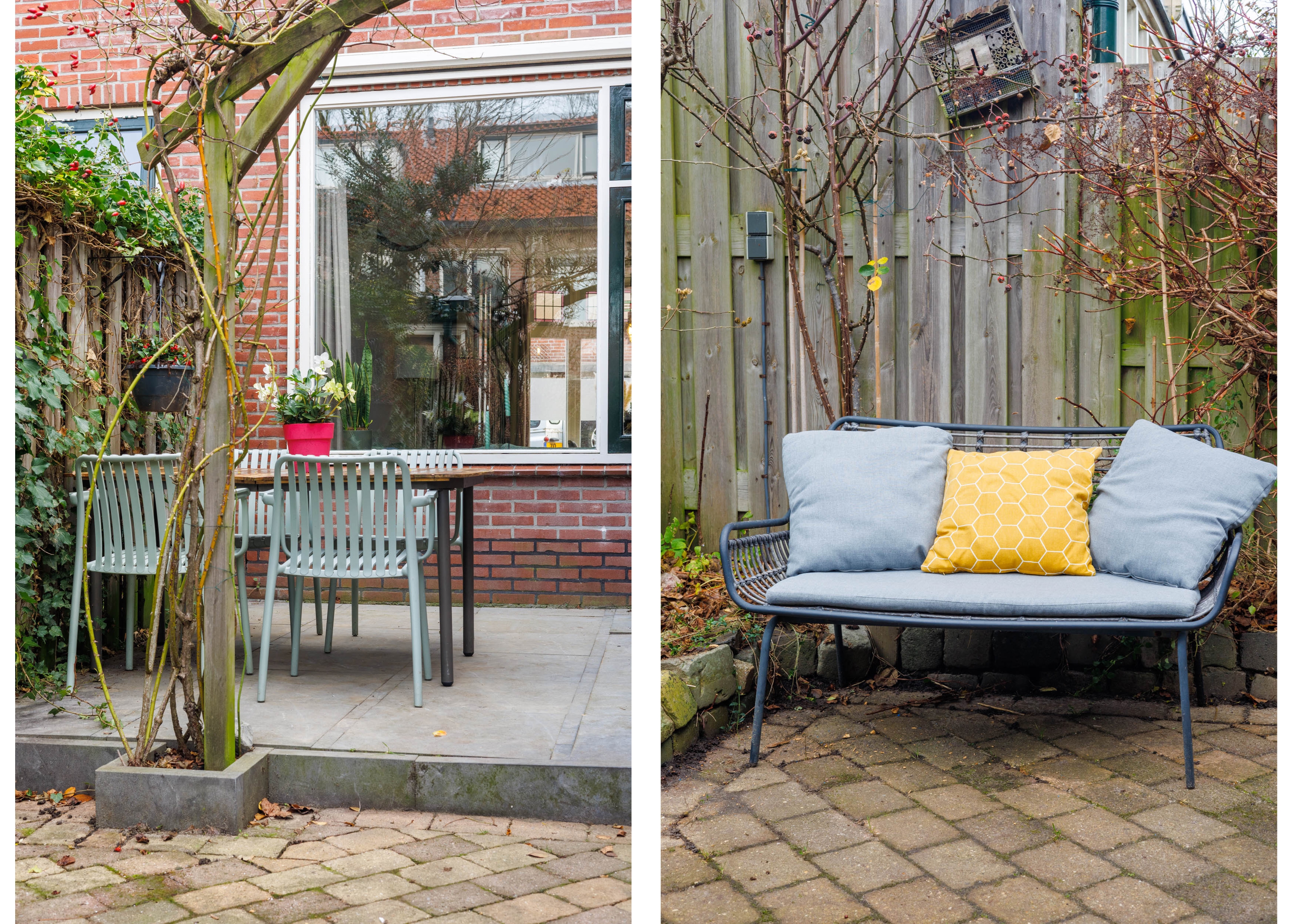 Vanuit de keuken bereik je de fijne achtertuin met een afsluitbare berging/schuur en een overdekte fietsenstalling(steen). Er zijn meerdere zitplekjes waar je kan genieten van de zon en er is fraaie beplanting zoals een appelboom.