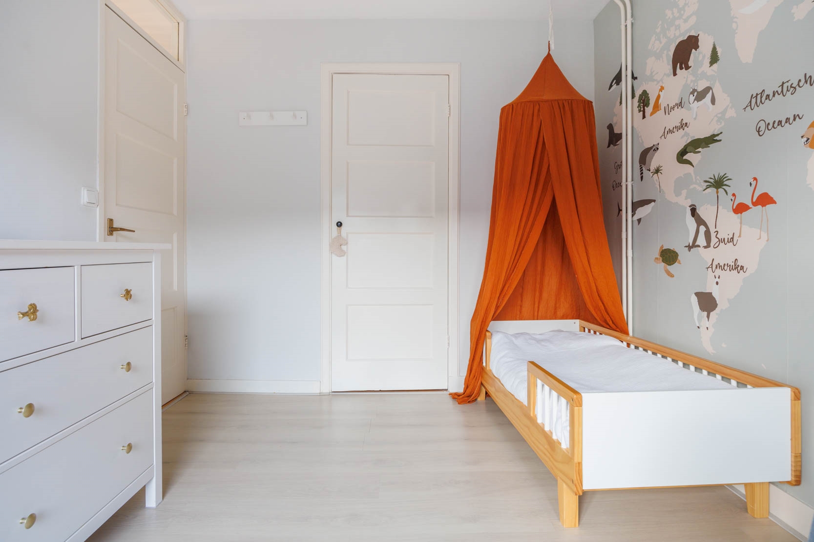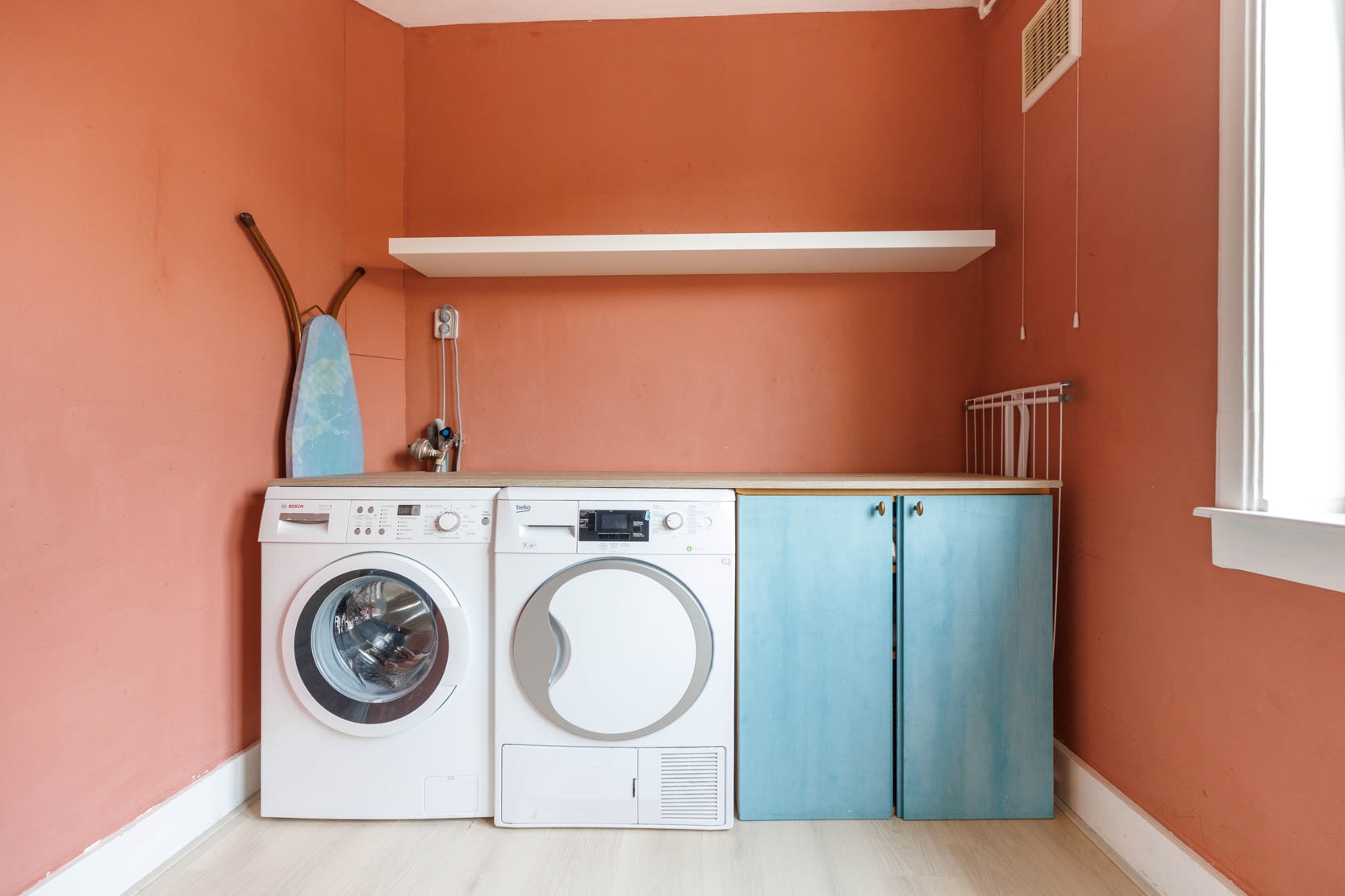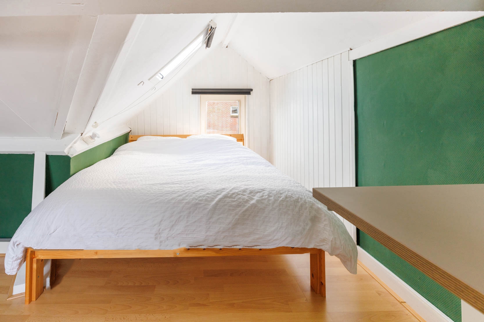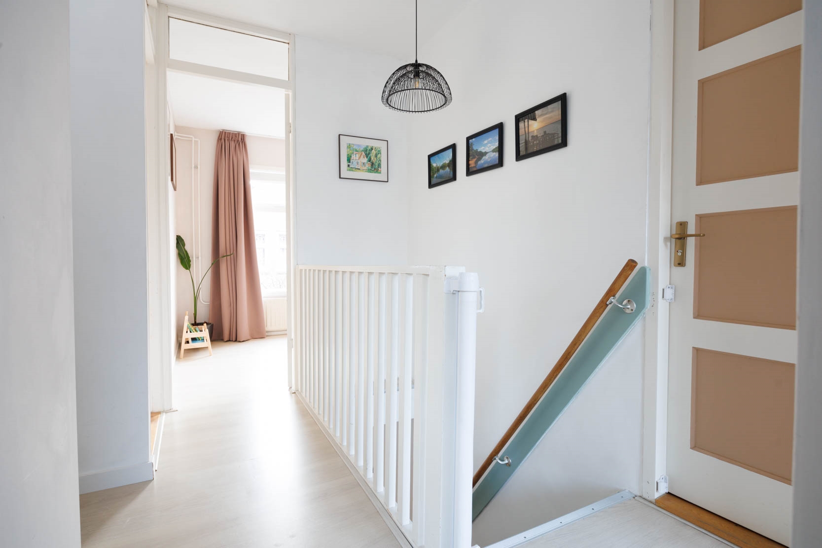 Spacious landing with four (bed)rooms, one of which is currently used as a laundry/drying room. From this room you can access the generous west-facing roof terrace.