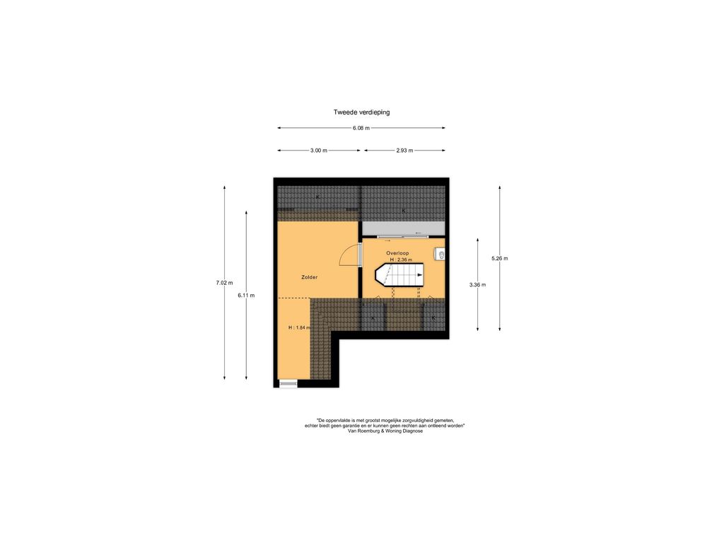 Ruime overloop met vier (slaap)kamers, waarvan een in gebruik is als was/droog ruimte. Vanuit deze kamer bereik je het royale dakterras (W).