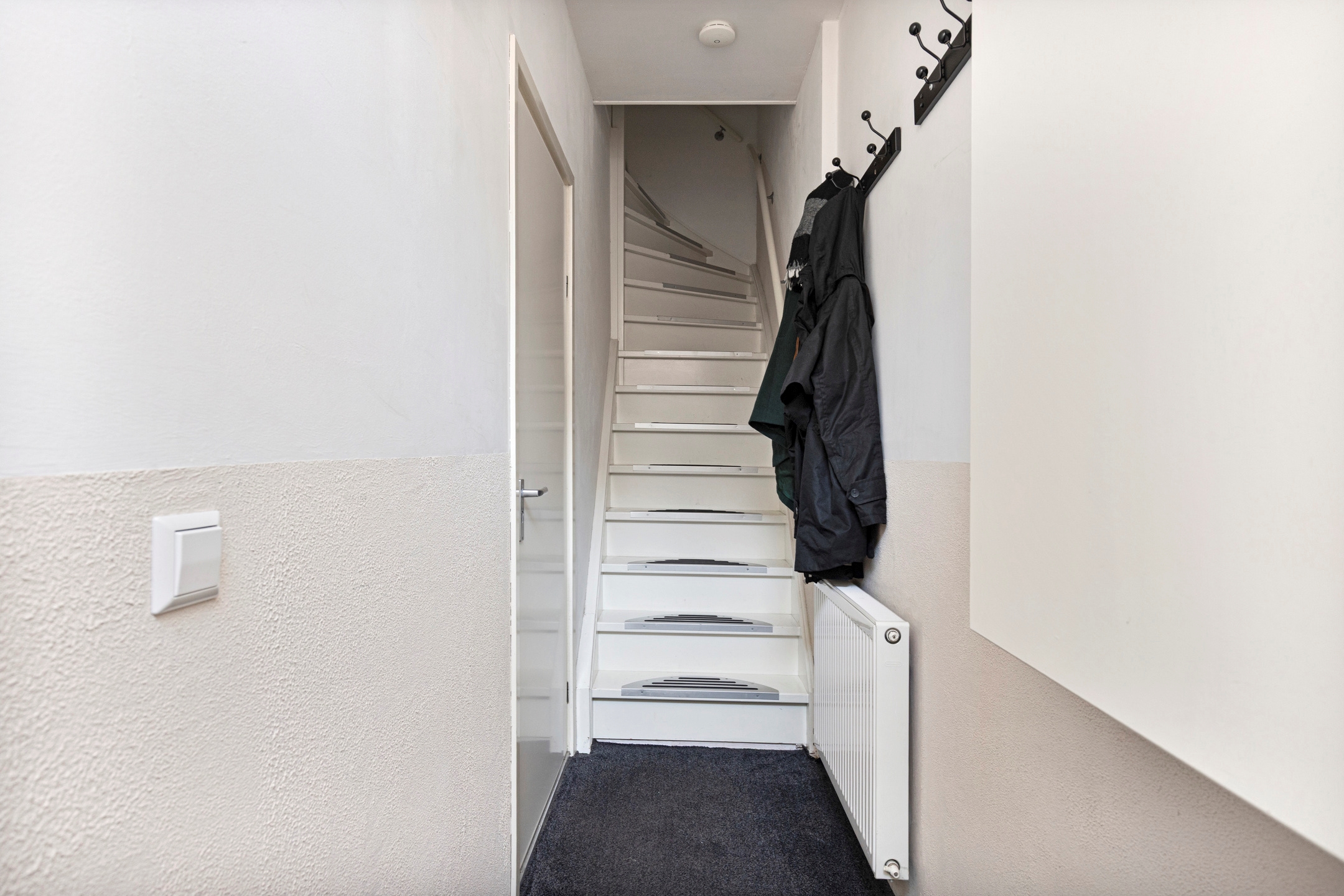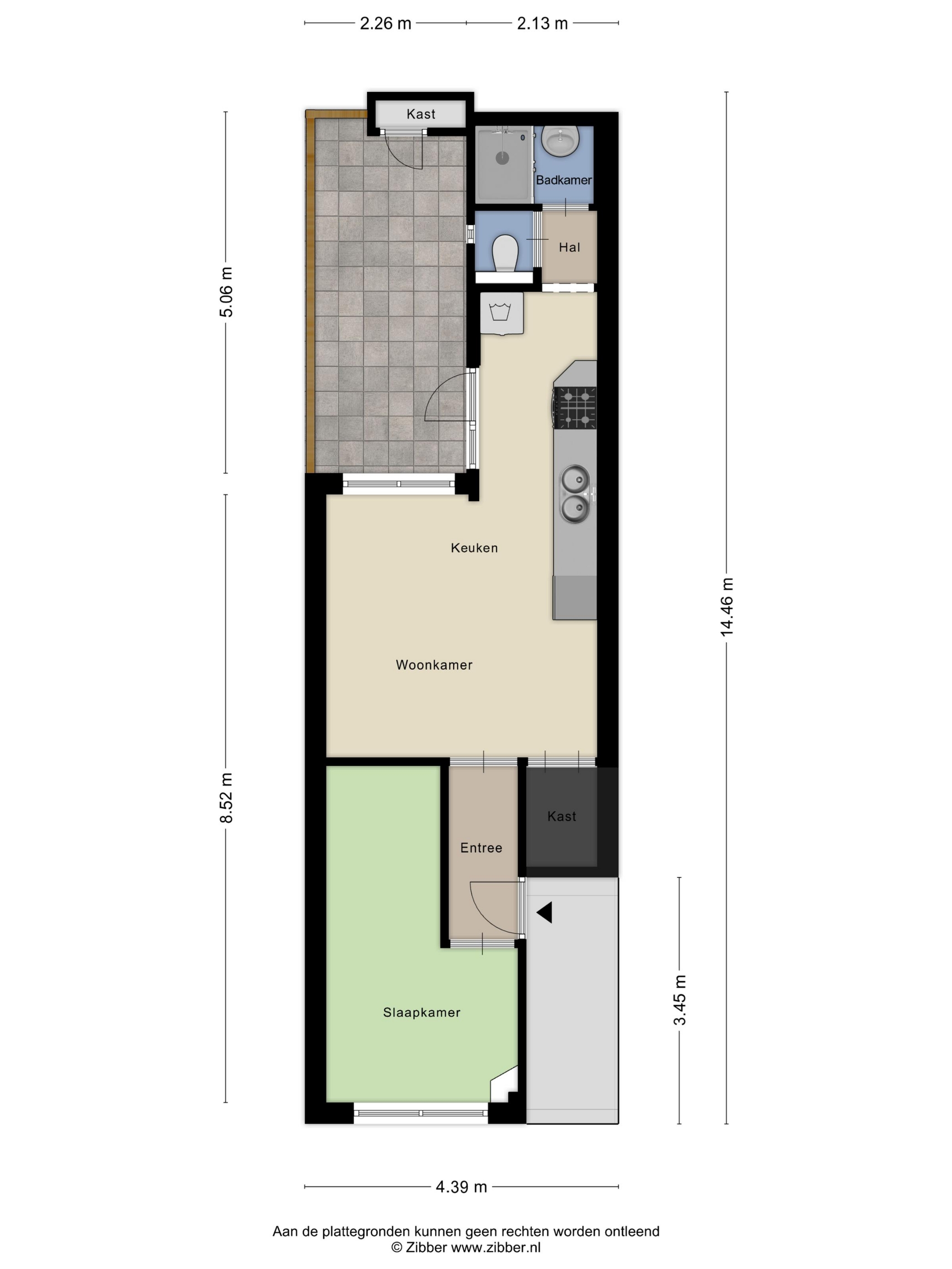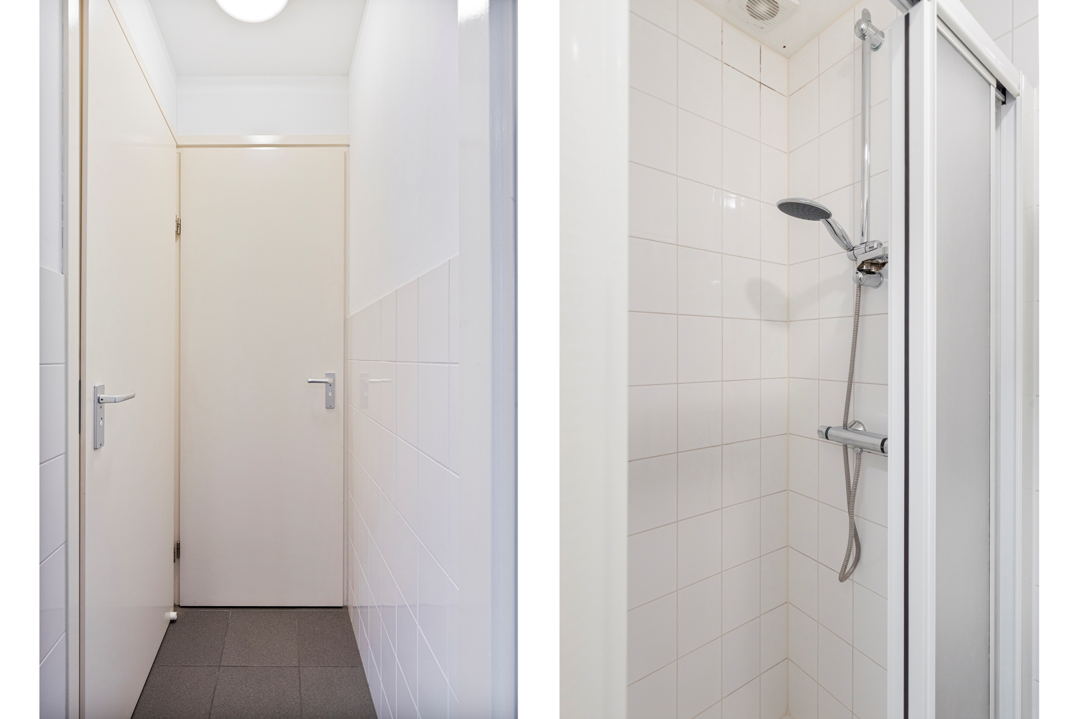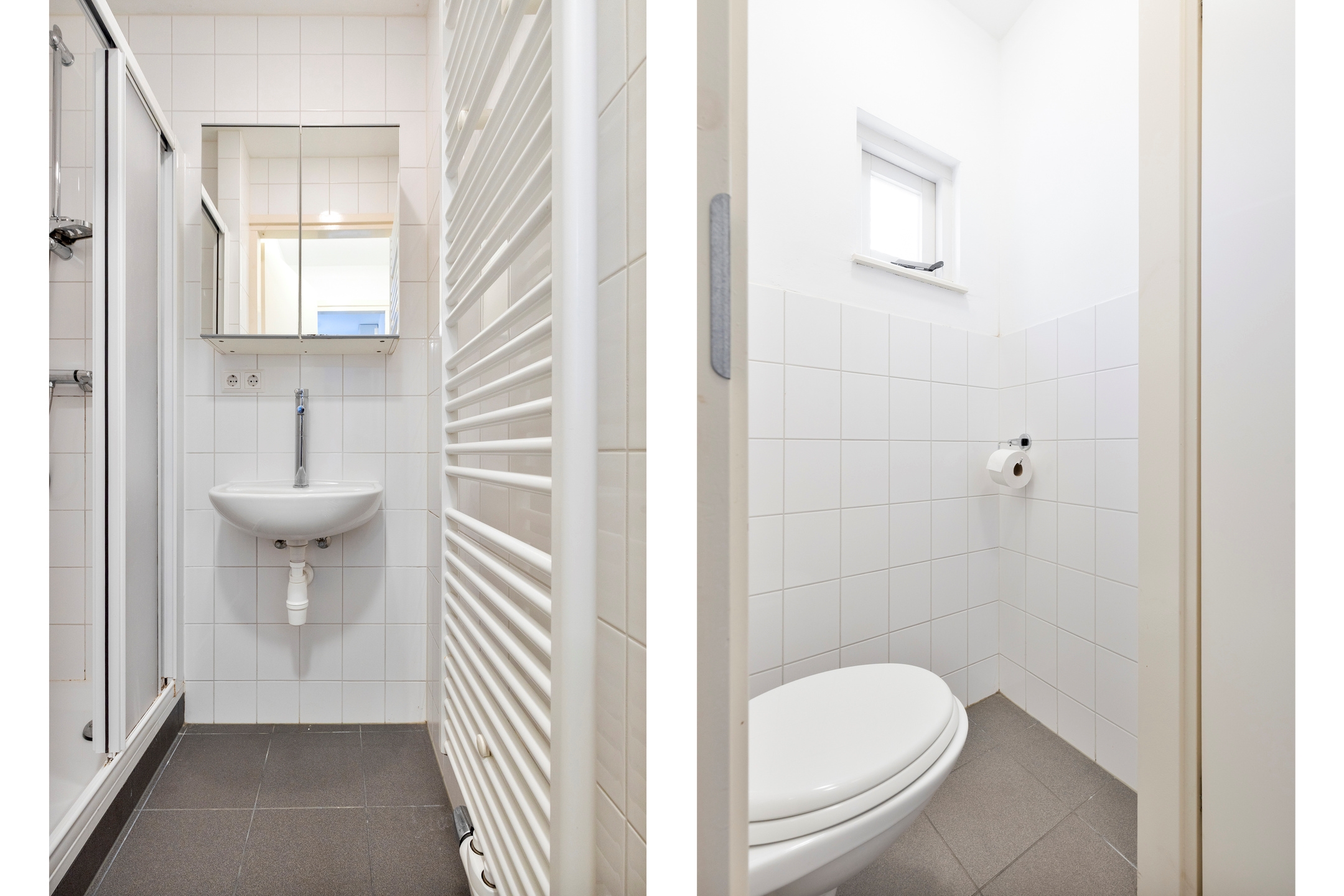 Aan de achterzijde bevindt zich verder een hal met toegang tot het moderne toilet en de badkamer, voorzien van douche en wastafel. Hiernaast is ruimte voor wasmachineplaatsing, waardoor alles praktisch bij elkaar ligt.