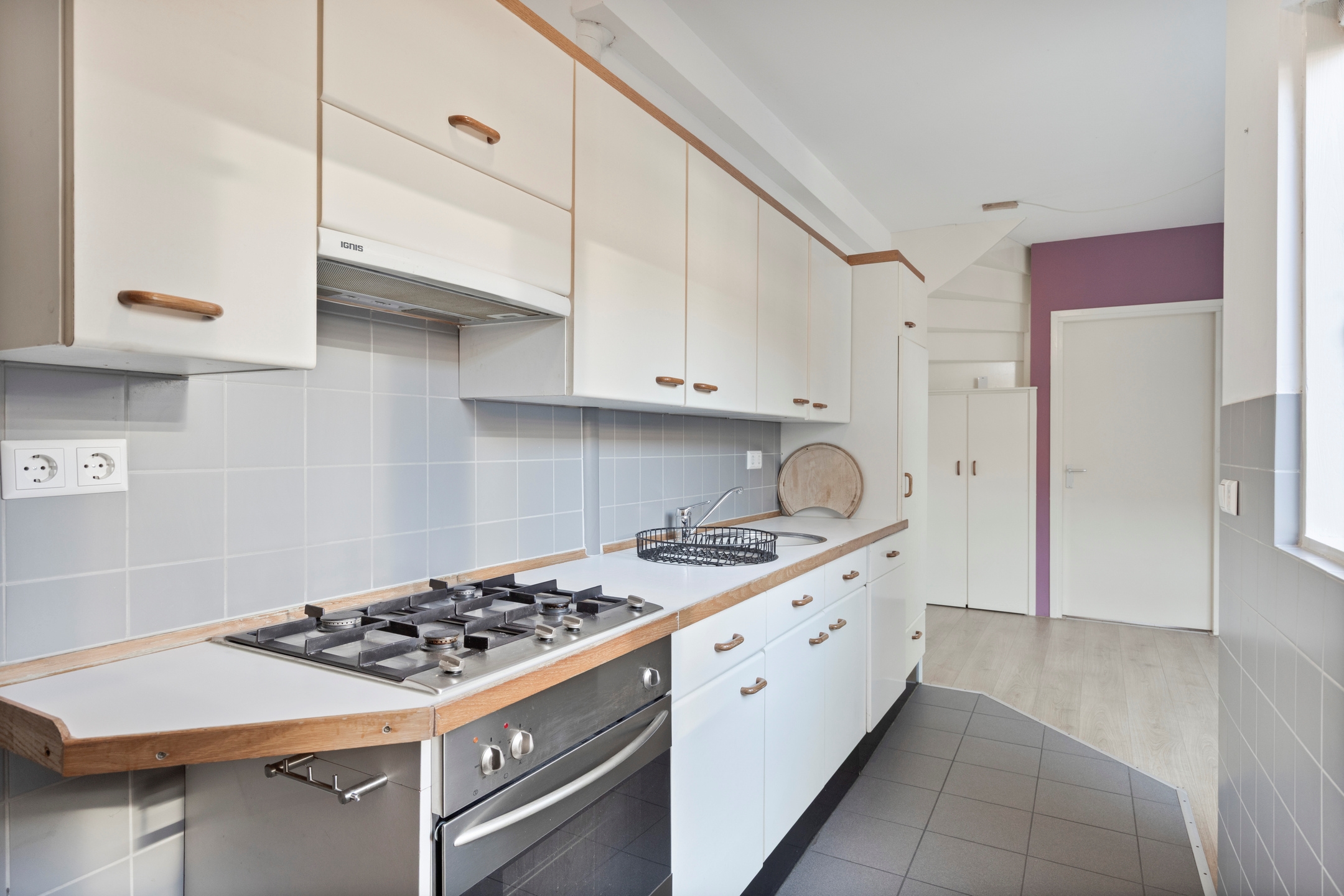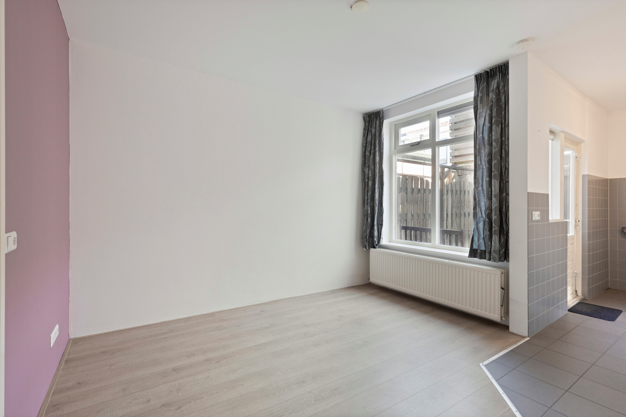 De lichte woonkamer met ruime trapkast ligt centraal in het appartement en vormt een fijne leefruimte, met direct aansluitend de nette halfopen keuken. Deze keuken biedt volop werk- en kastruimte en heeft een logische indeling met zicht op zowel de woonkamer als de achtertuin. Achter de keuken ligt de ruime stadstuin. Hier is genoeg ruimte voor een gezellige zit plek, planten of een compacte buitenkeuken. Daarnaast is er een buitenkast voor opslag.