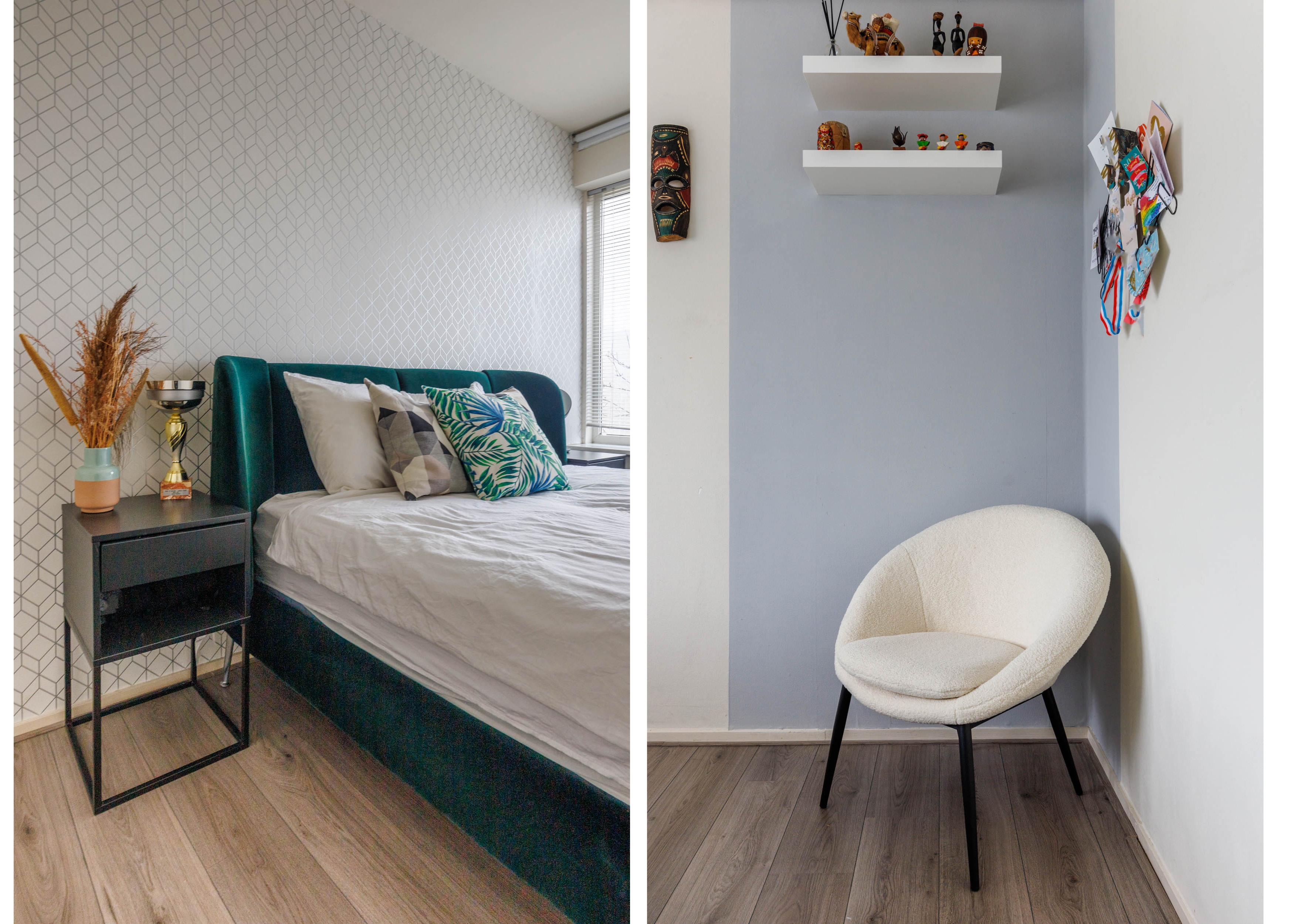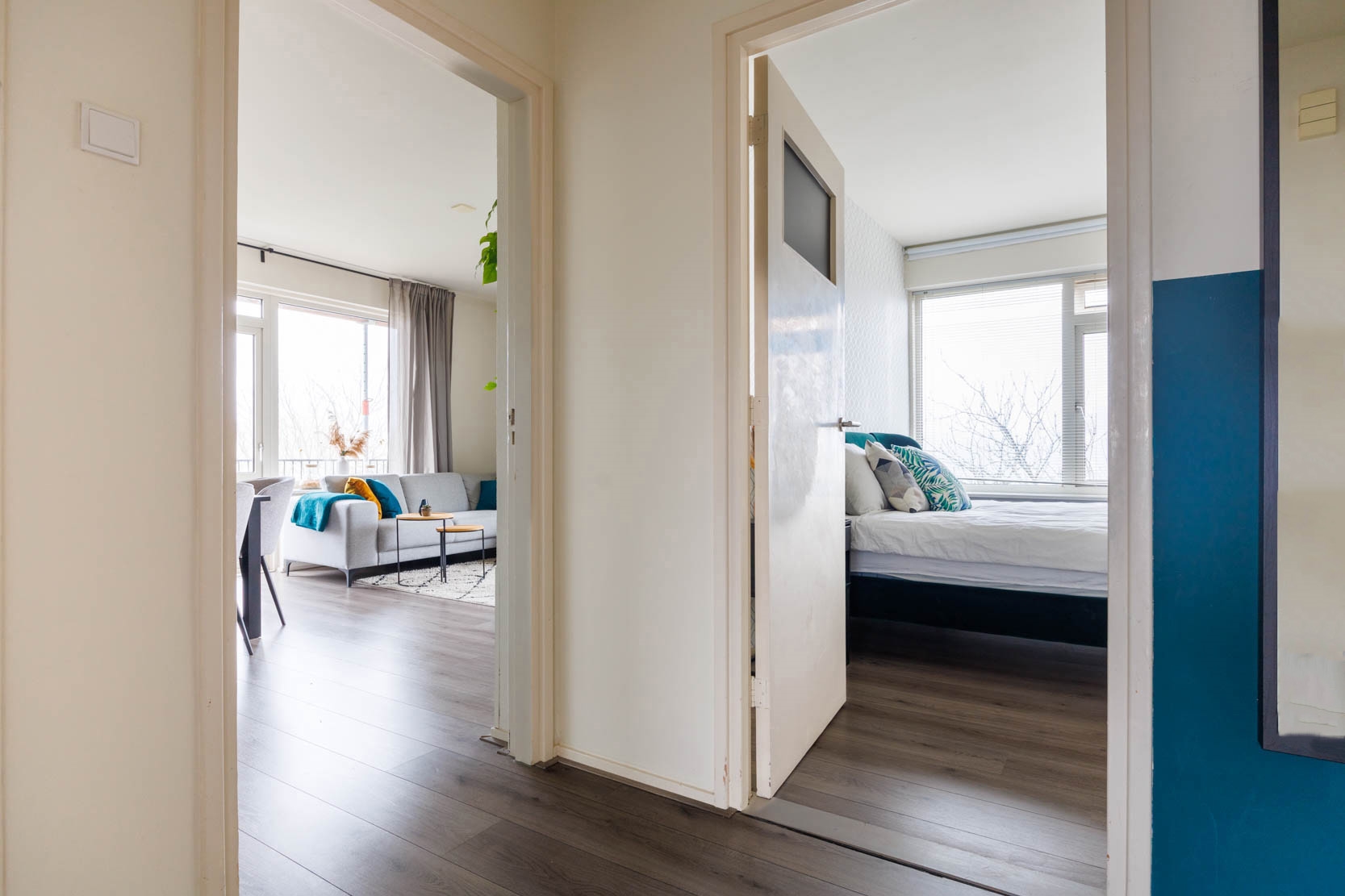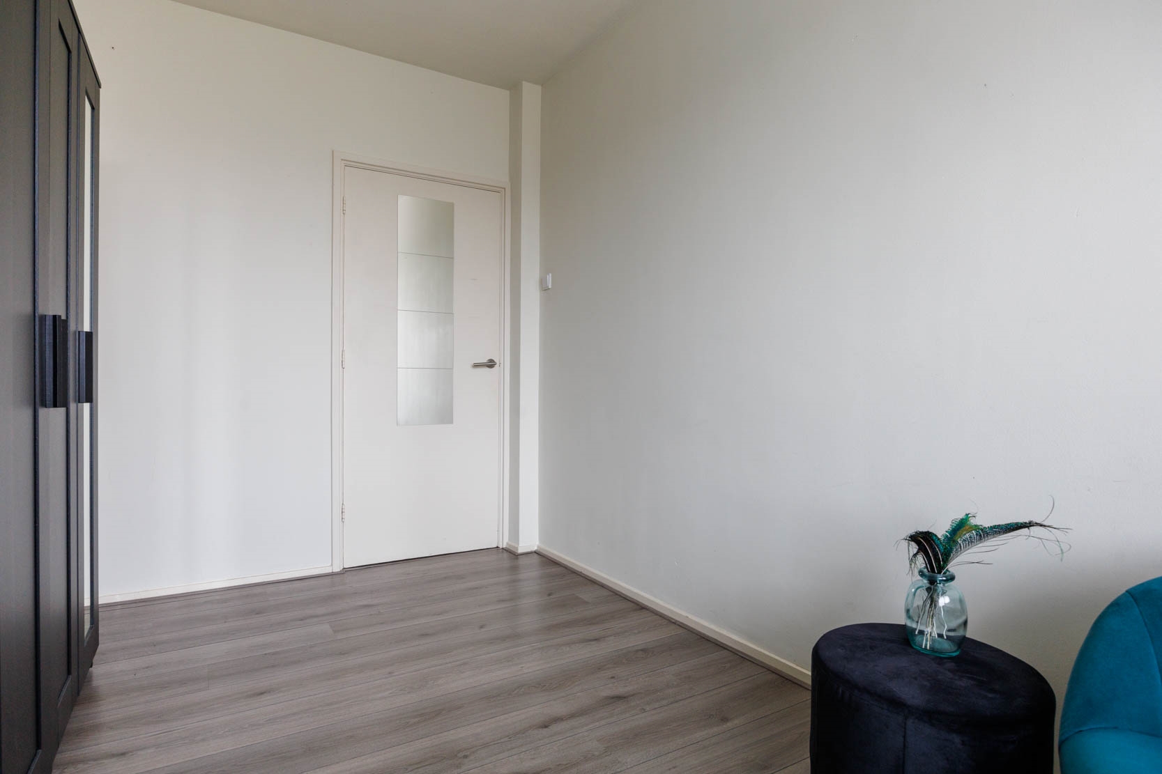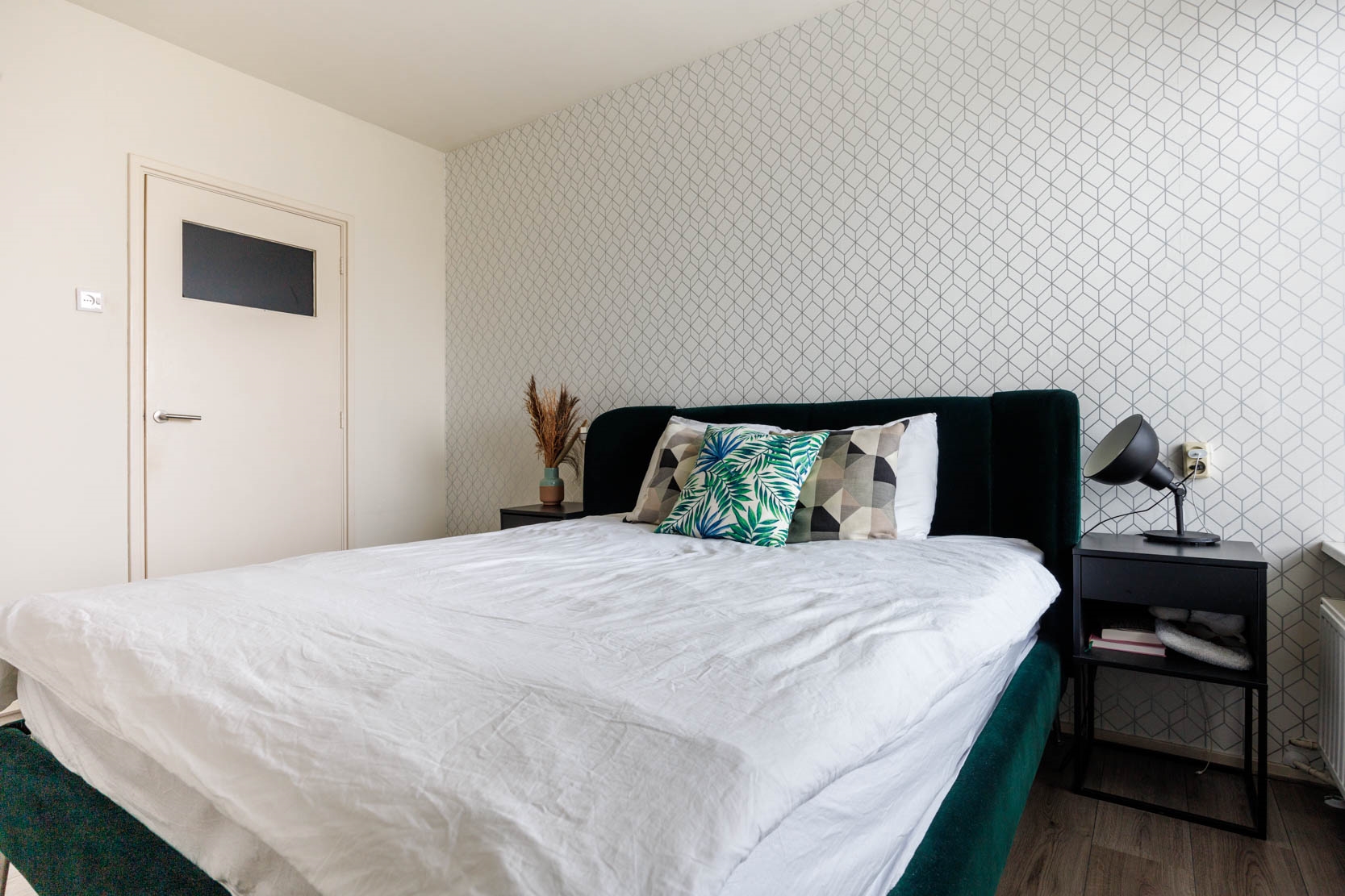 De woonkamer is heerlijk licht door de hoekligging met meerdere raampartijen en beschikt over een deur naar een fijn balkon aan de zijkant van het appartement (ZO). Vanuit de woonkamer is de slaapkamer aan de voorzijde te bereiken met toegang tot een ruime inbouwkast.
