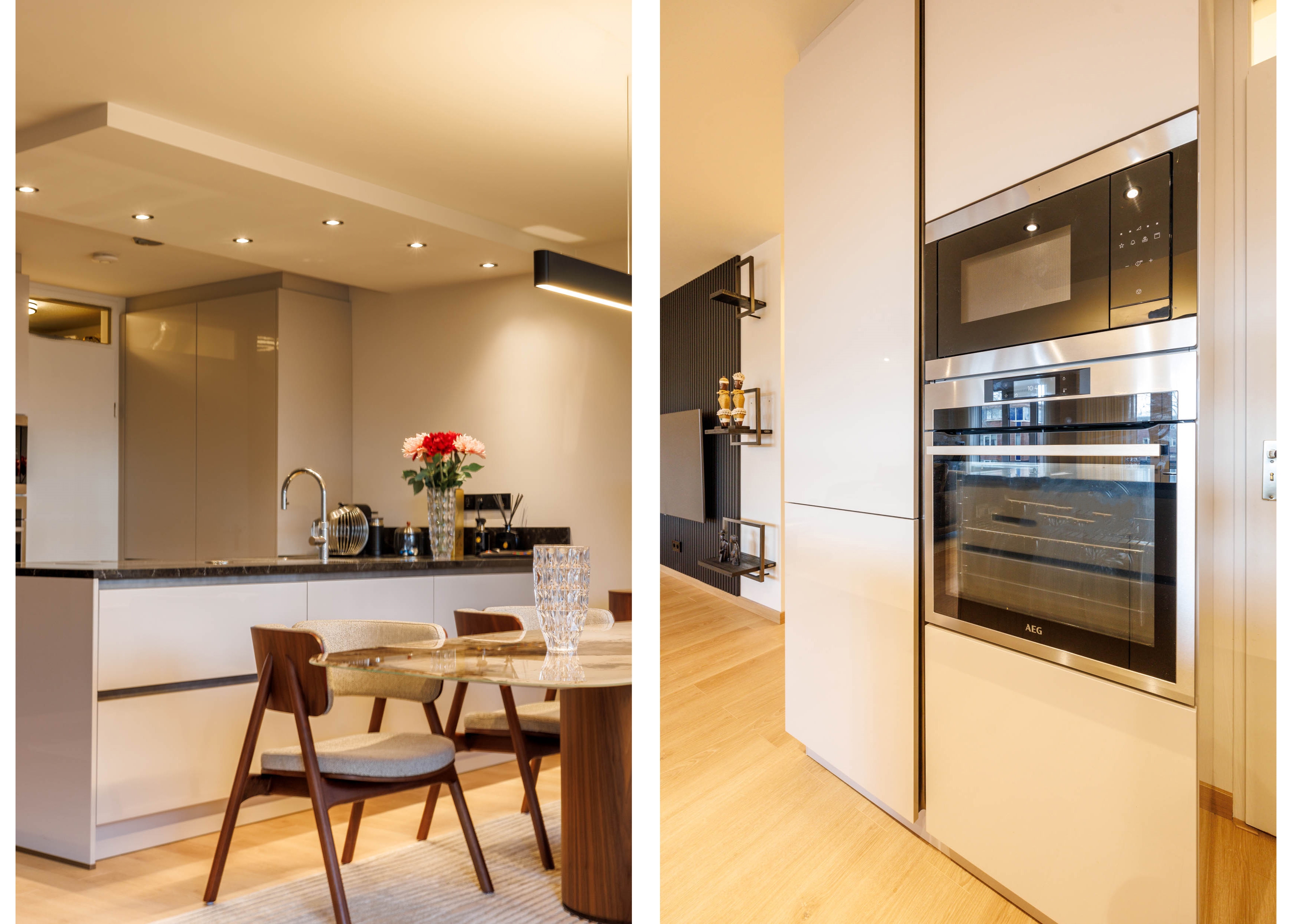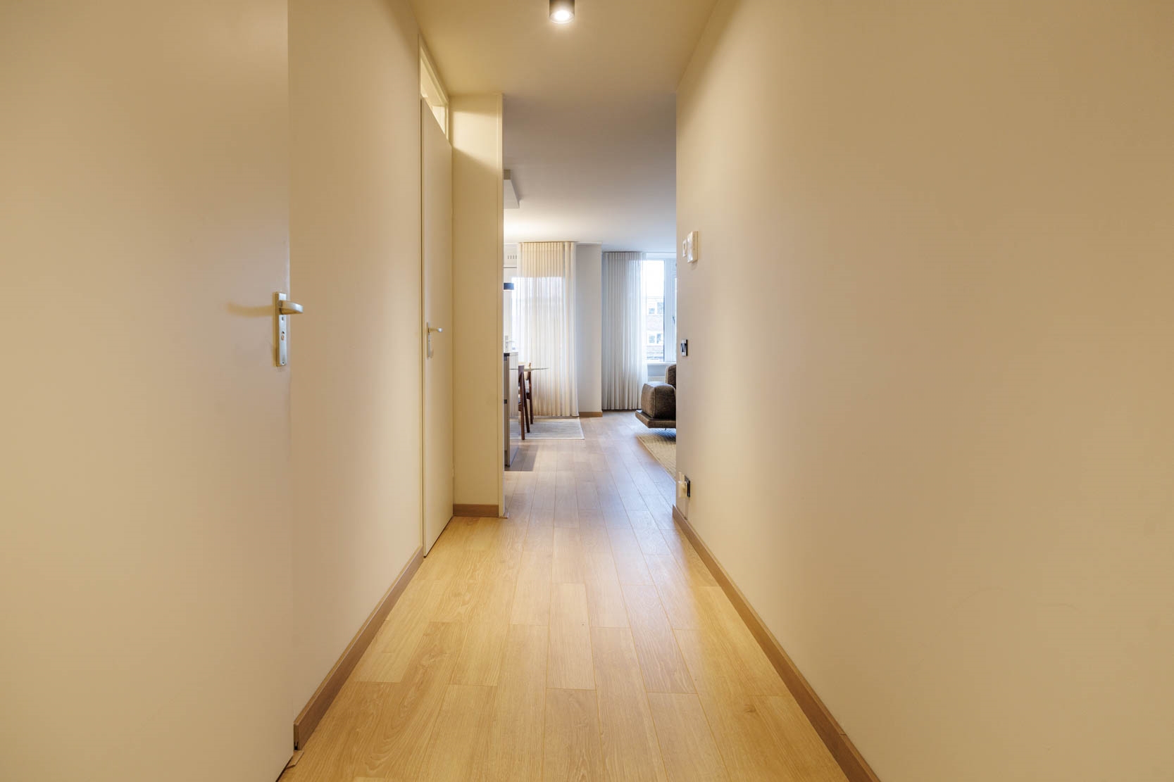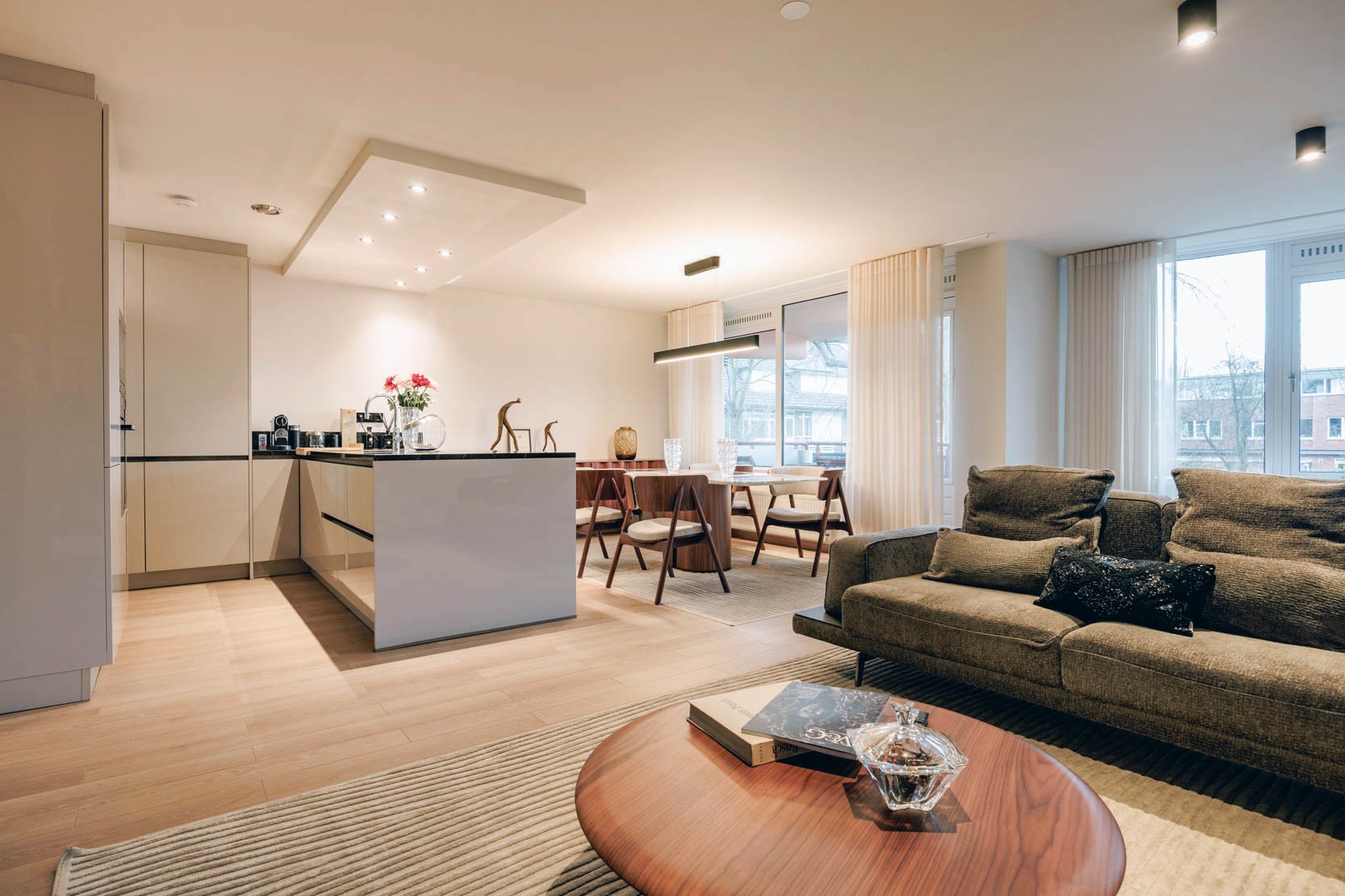 Via de entree met garderobe en meterkast bereik je de royale hal, die naadloos overgaat in de riante living. De woonkamer is dankzij de vele raampartijen heerlijk licht en straalt een gevoel van luxe en comfort uit. De prachtige Bruynzeel-keuken met kookeiland is uitgerust met hoogwaardige AEG-inbouwapparatuur, waaronder een inductiekookplaat met geïntegreerde afzuiging, Quooker, een oven, een magnetron, een vaatwasser een koel-/vriescombinatie en een natuurstenen blad. De fraaie hoge kasten bieden volop extra bergruimte. Vanuit de keuken is de wasruimte bereikbaar, voorzien van aansluitingen voor wasmachine en droger en de opstelling van de cv-ketel. Het fijne balkon, gelegen op het noordwesten, biedt een groen uitzicht en zicht op het speeltuintje.