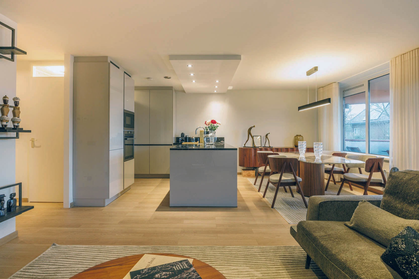 Via the entrance with wardrobe area and meter cupboard, you reach the spacious hallway, which seamlessly flows into the generous living area. Thanks to the many windows, the living room is wonderfully bright and exudes a sense of luxury and comfort.