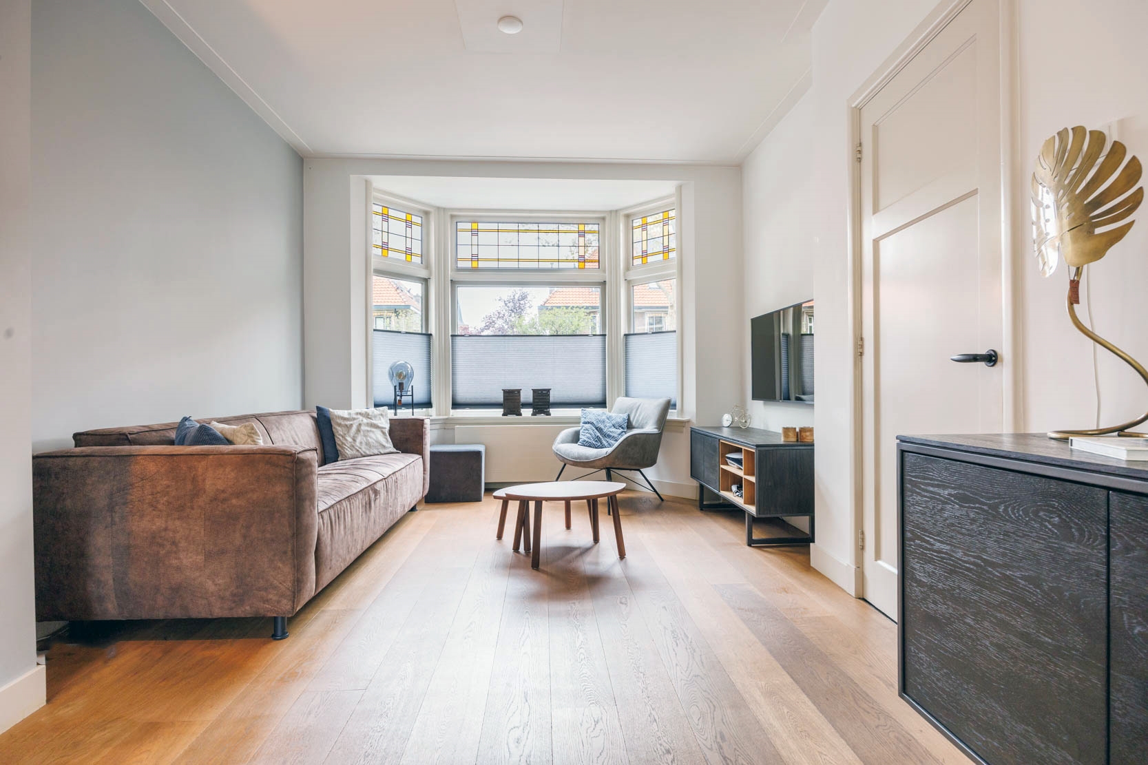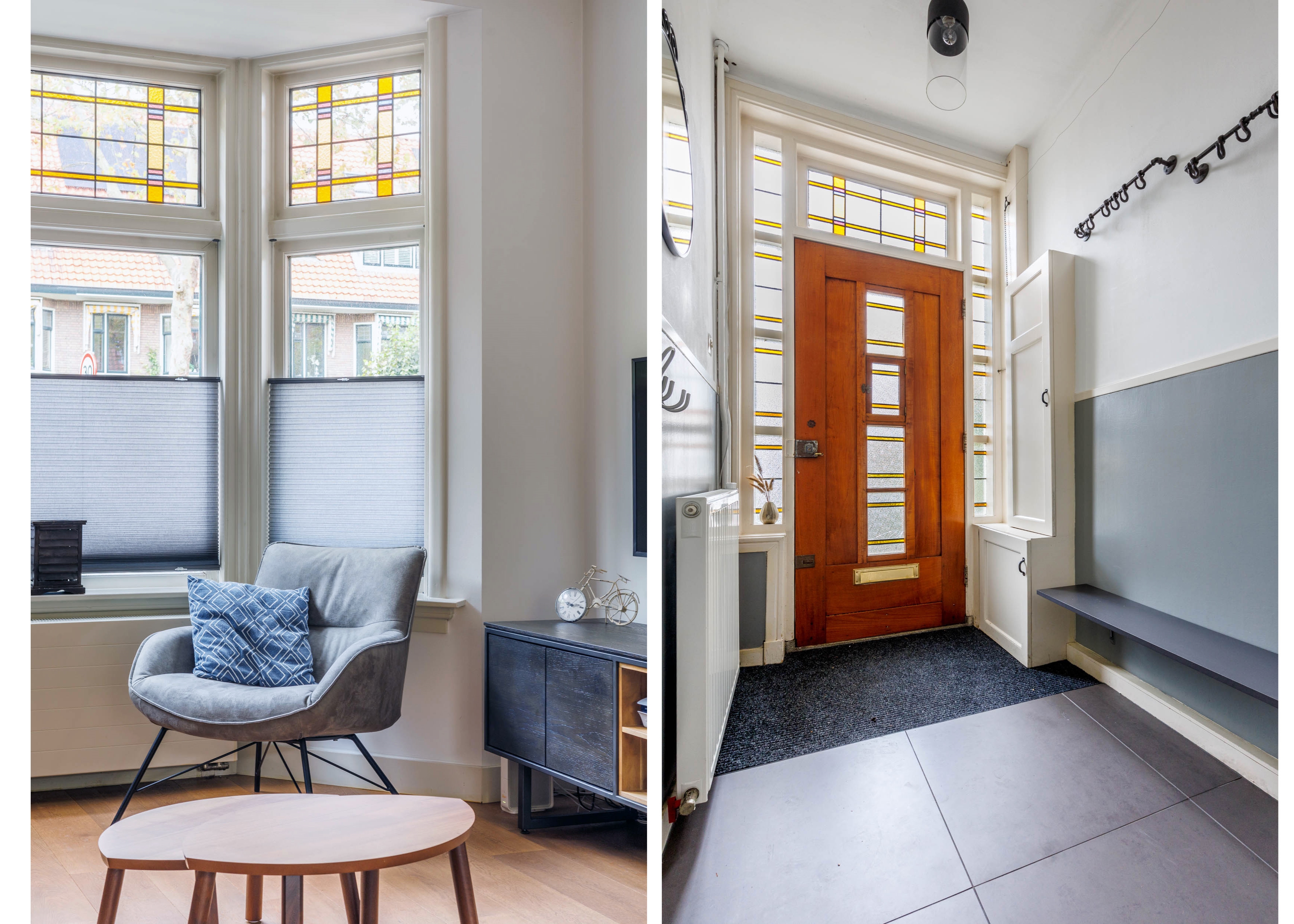 - Gehele woning voorzien van dubbelglas (het glas-in-lood grotendeels dubbelglas)