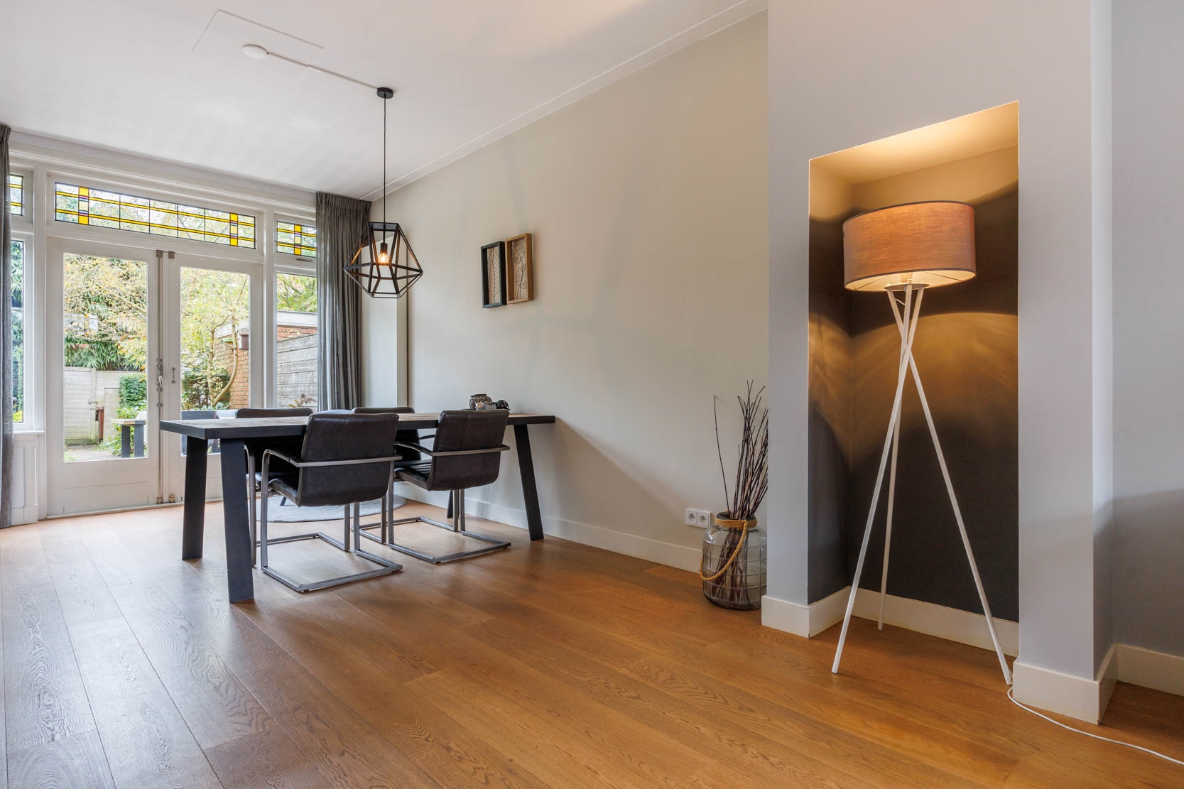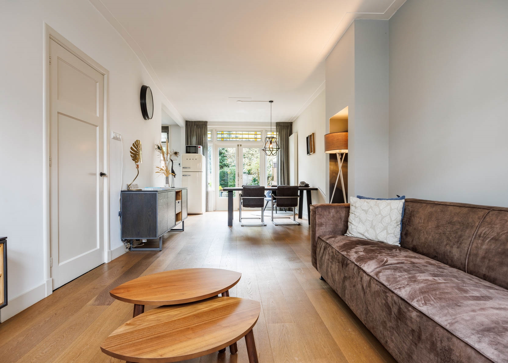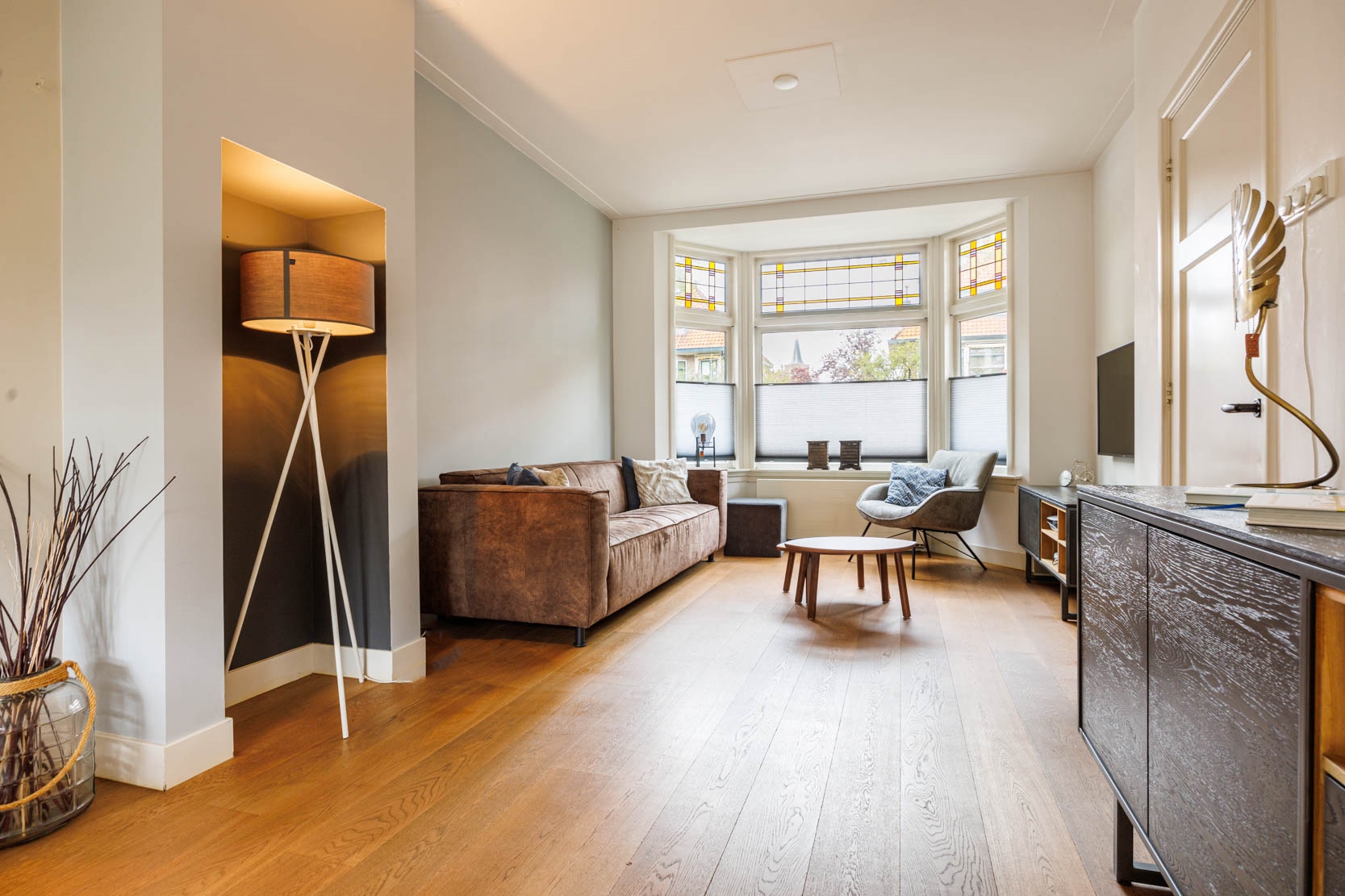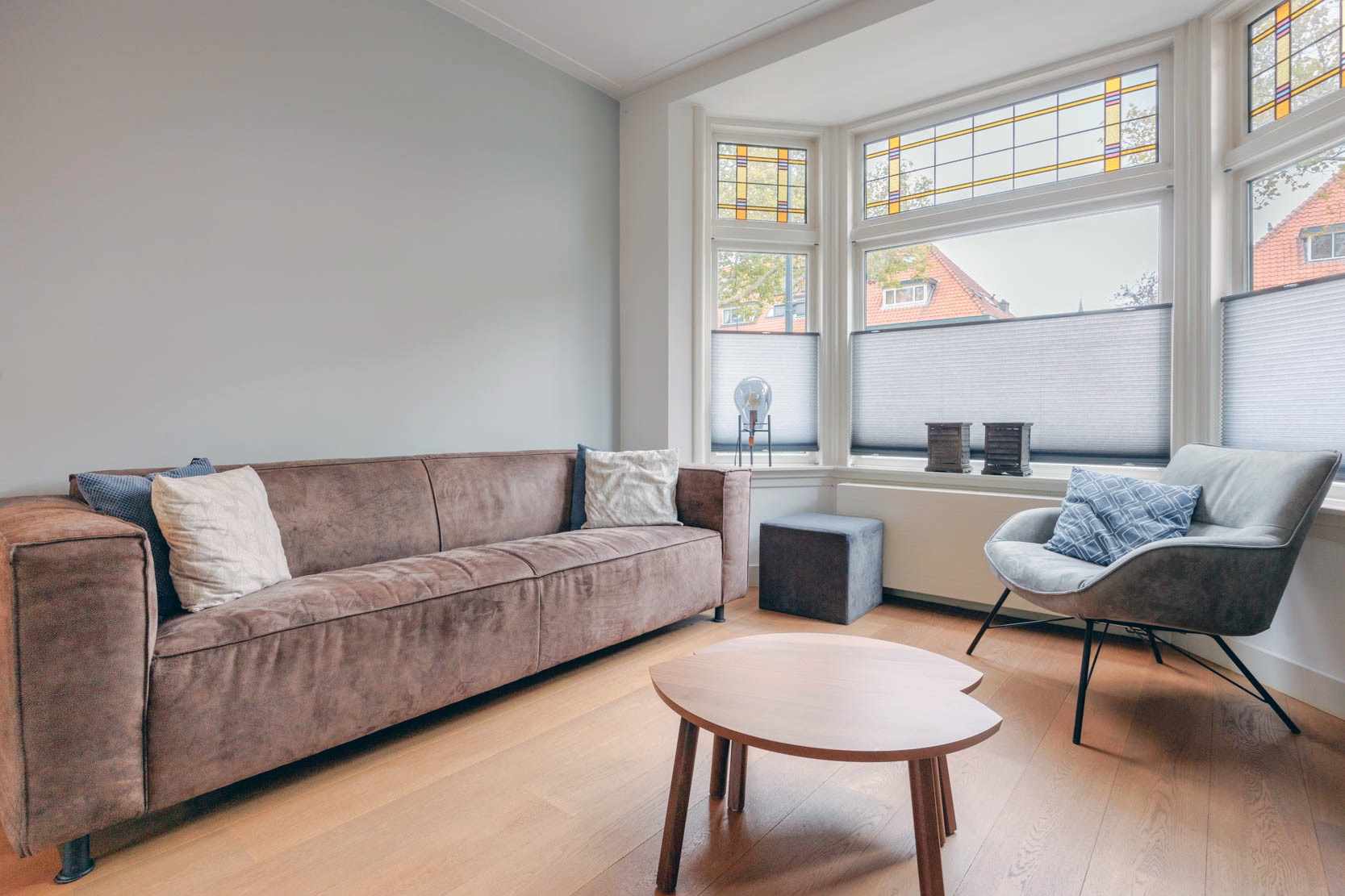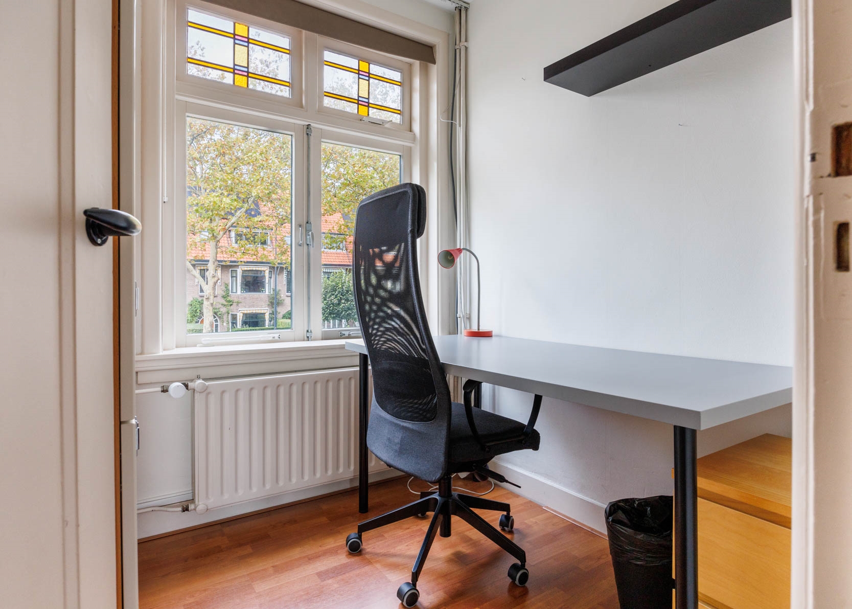 Very attractive and spacious 1930s family home in the Professorenwijk, featuring many authentic details such as a bay window, vestibule, stained-glass windows, and panel doors. The house offers 4 bedrooms, a bathroom, a modern kitchen, and a spacious living room with French doors opening onto a beautifully landscaped, deep south-facing garden with a shed and rear access. A dormer window at the front creates an extra spacious attic room.