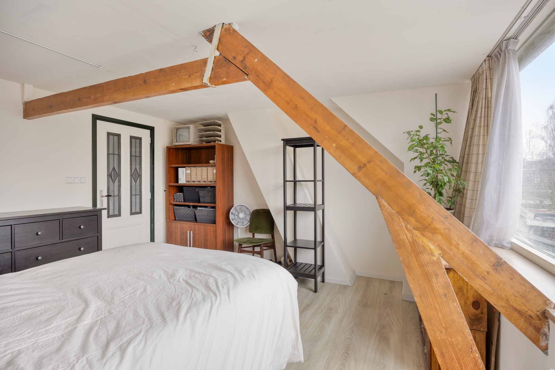 De woning telt twee volwaardige slaapkamers, die flexibel in te richten zijn als kinderkamer, werkruimte of hobbykamer. De eerste verdieping is in 2020 grondig aangepakt: volledig gestript en opnieuw opgebouwd, inclusief vernieuwde elektrische installatie. De badkamer, eveneens in 2020 vernieuwd, ligt op de begane grond achter de keuken en is praktisch ingedeeld met een inloopdouche, toilet en aansluiting voor de wasmachine. Tot slot beschikt de woning over een royale vliering met volop bergruimte en de technische voorzieningen, waaronder de cv-ketel. Deze verdieping biedt bovendien potentie voor het creëren van een extra (slaap)kamer.