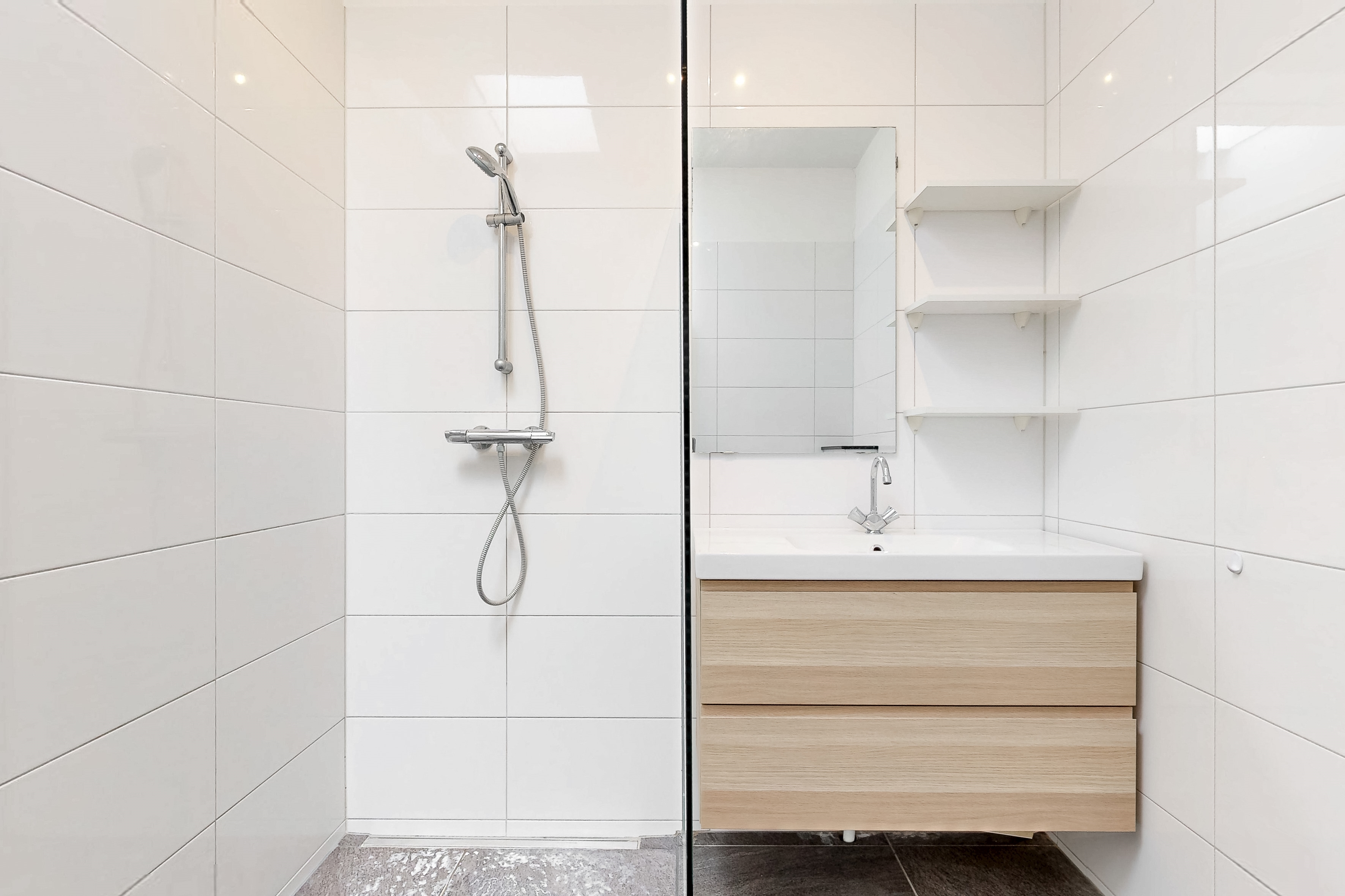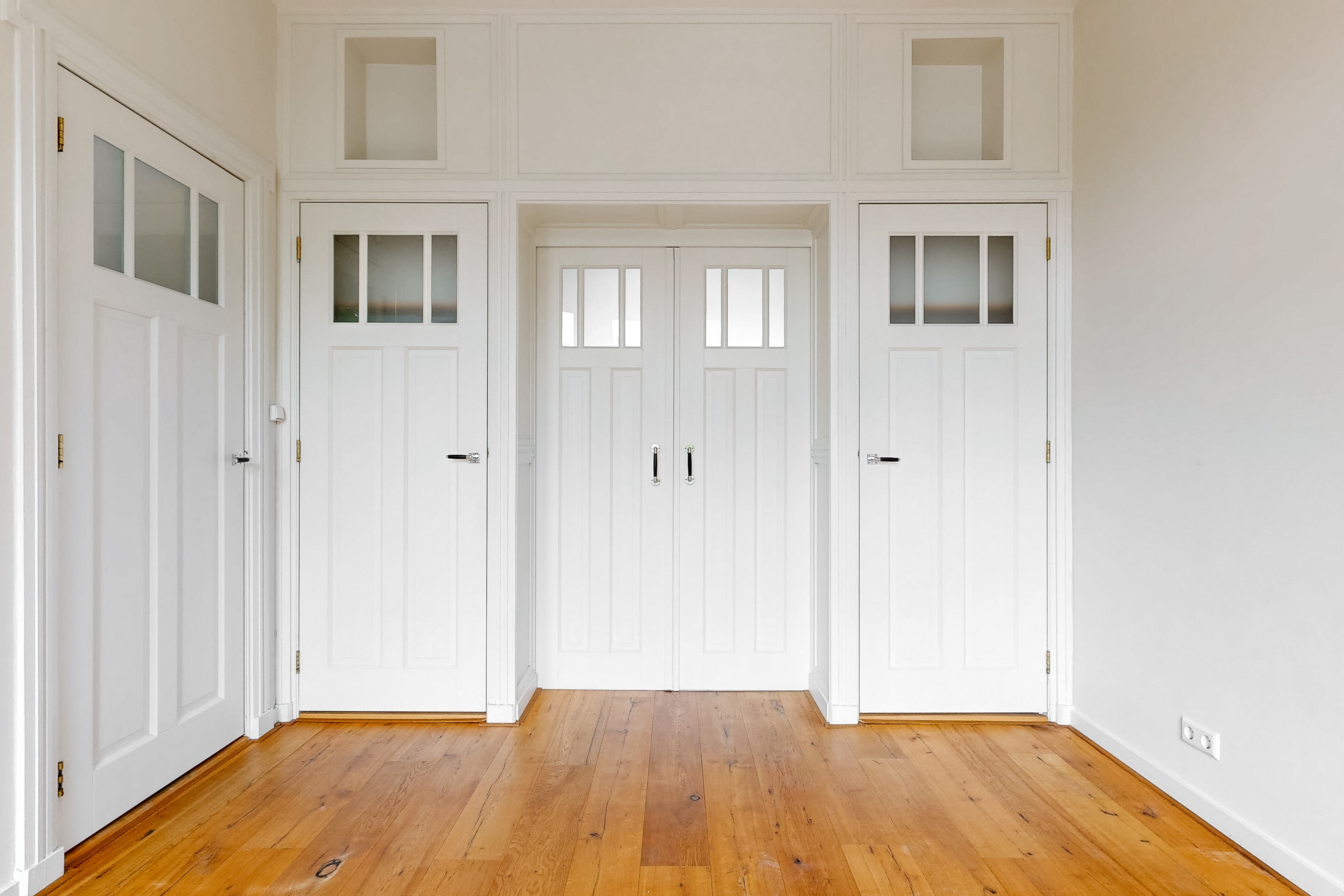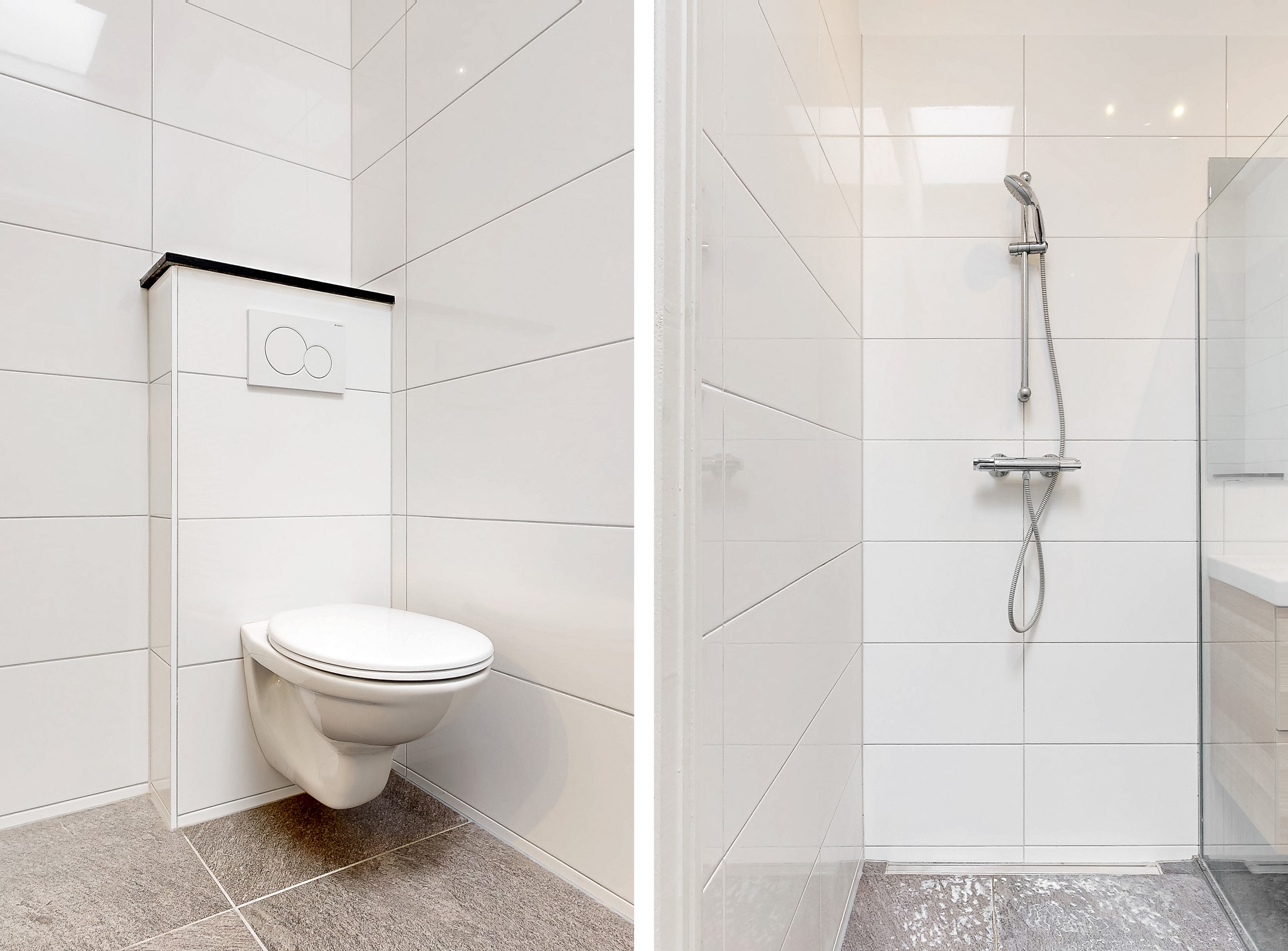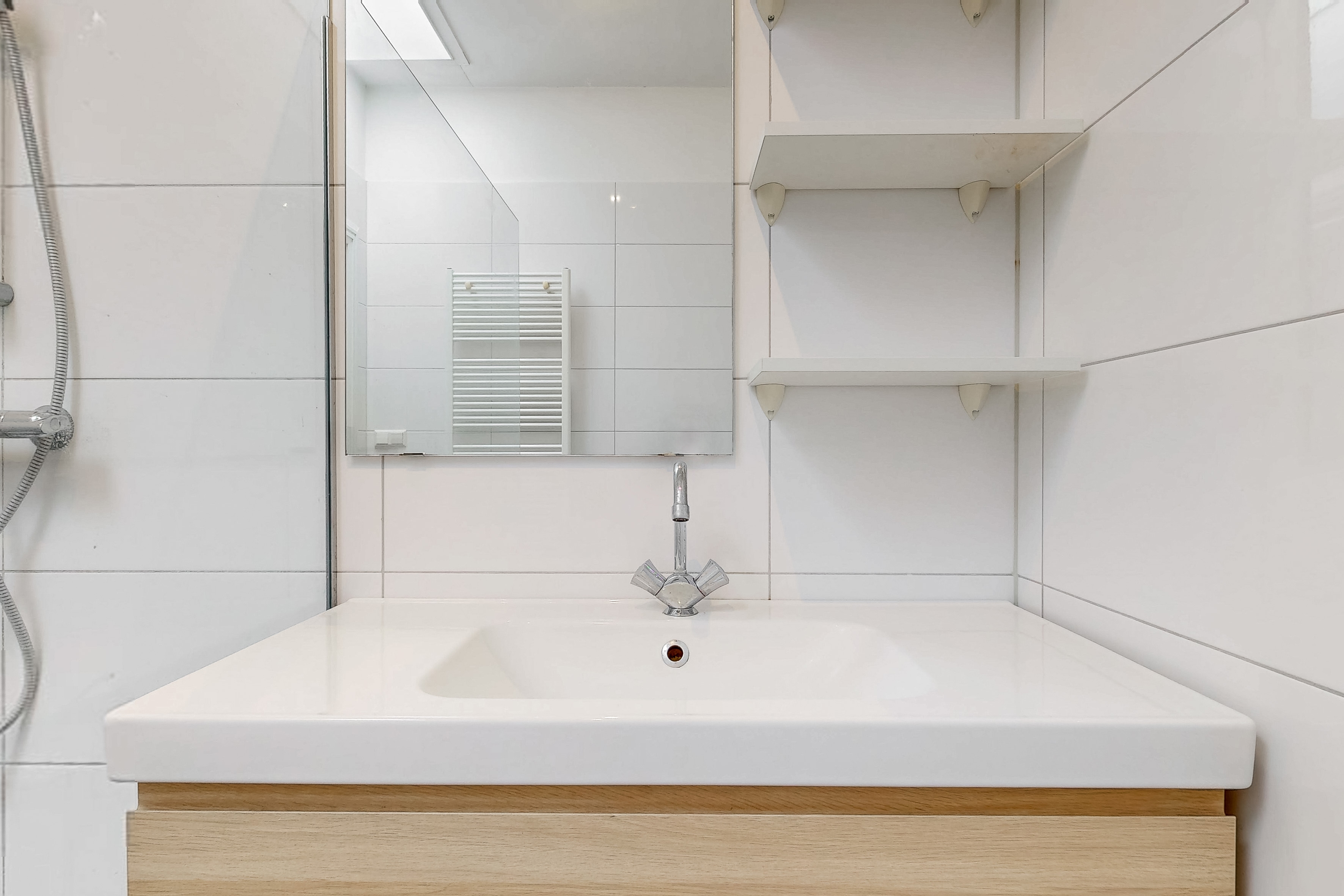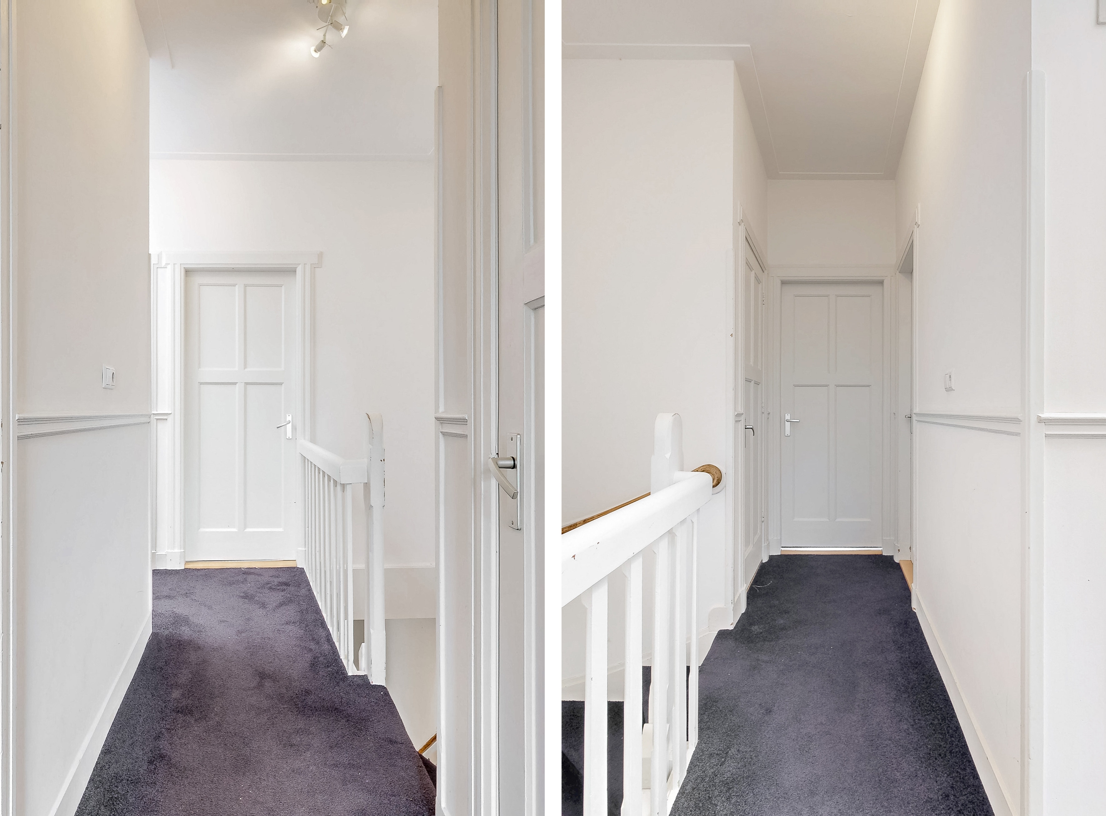 You reach the landing via a fixed staircase. Here is a hall cupboard with the washing machine and central heating boiler, access to the bright bathroom and 3 bedrooms (previously 4). Thanks to the skylight, the bathroom always has plenty of natural daylight and is equipped with a spacious walk-in shower, a sink with furniture and a toilet. The bedroom at the front has a small balcony and the spacious bedroom (formerly 2) at the rear has doors to a large balcony spanning the entire width of the house. The current owner has created a wide opening between 2 rooms, which currently creates a walk-in closet or separate work space. This can easily be reduced to 2 bedrooms.