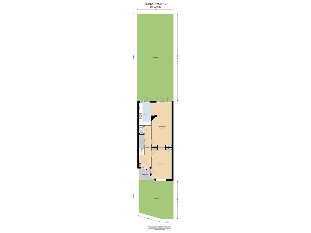 Via de keuken en vanuit de achterkamer via openslaande tuindeuren kunt u naar de zonnige achtertuin. De achtertuin mag een opknapbeurt hebben . De royale achtertuin meet maar liefst ca 60 m², ligt heerlijk beschut en is op het zuiden gericht.