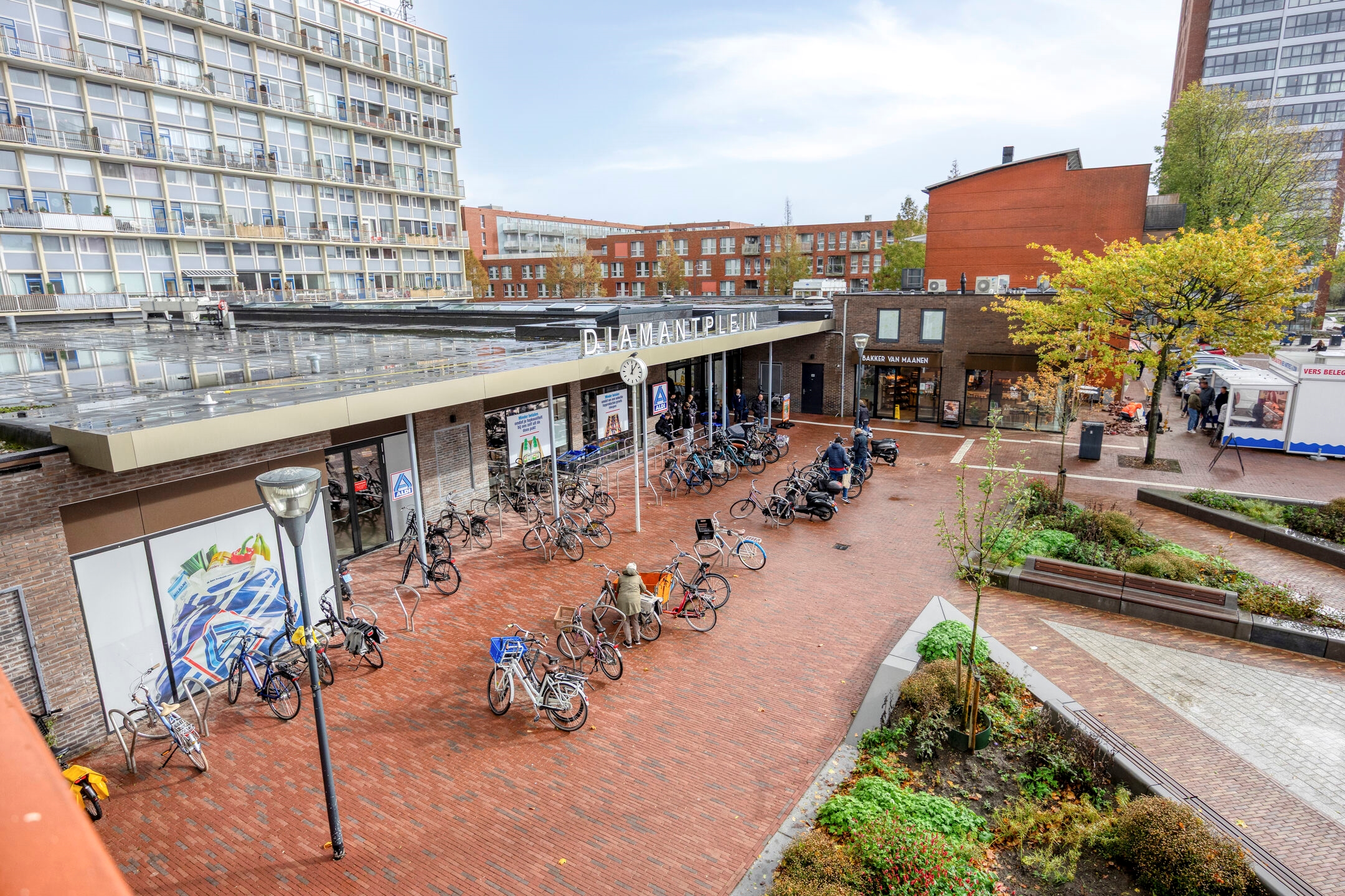 • Winkelcentrum en supermarkten onder het gebouw