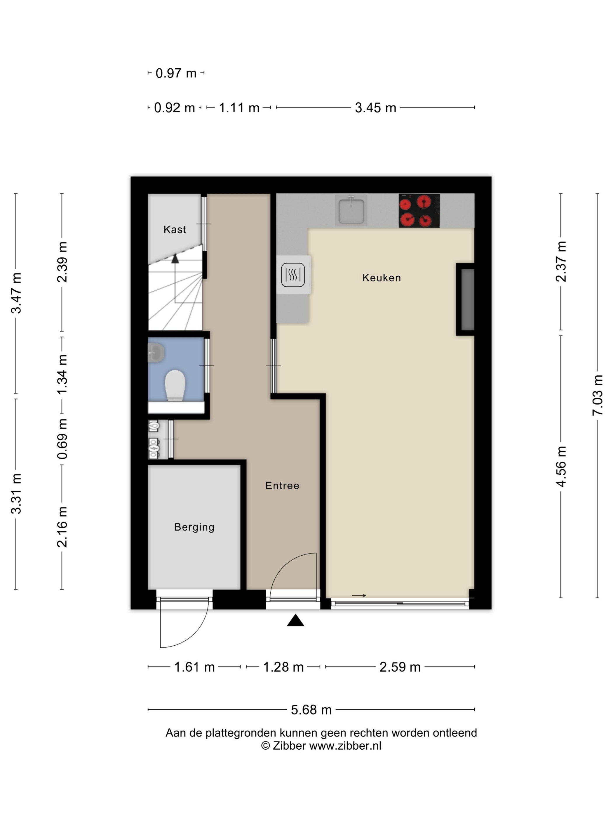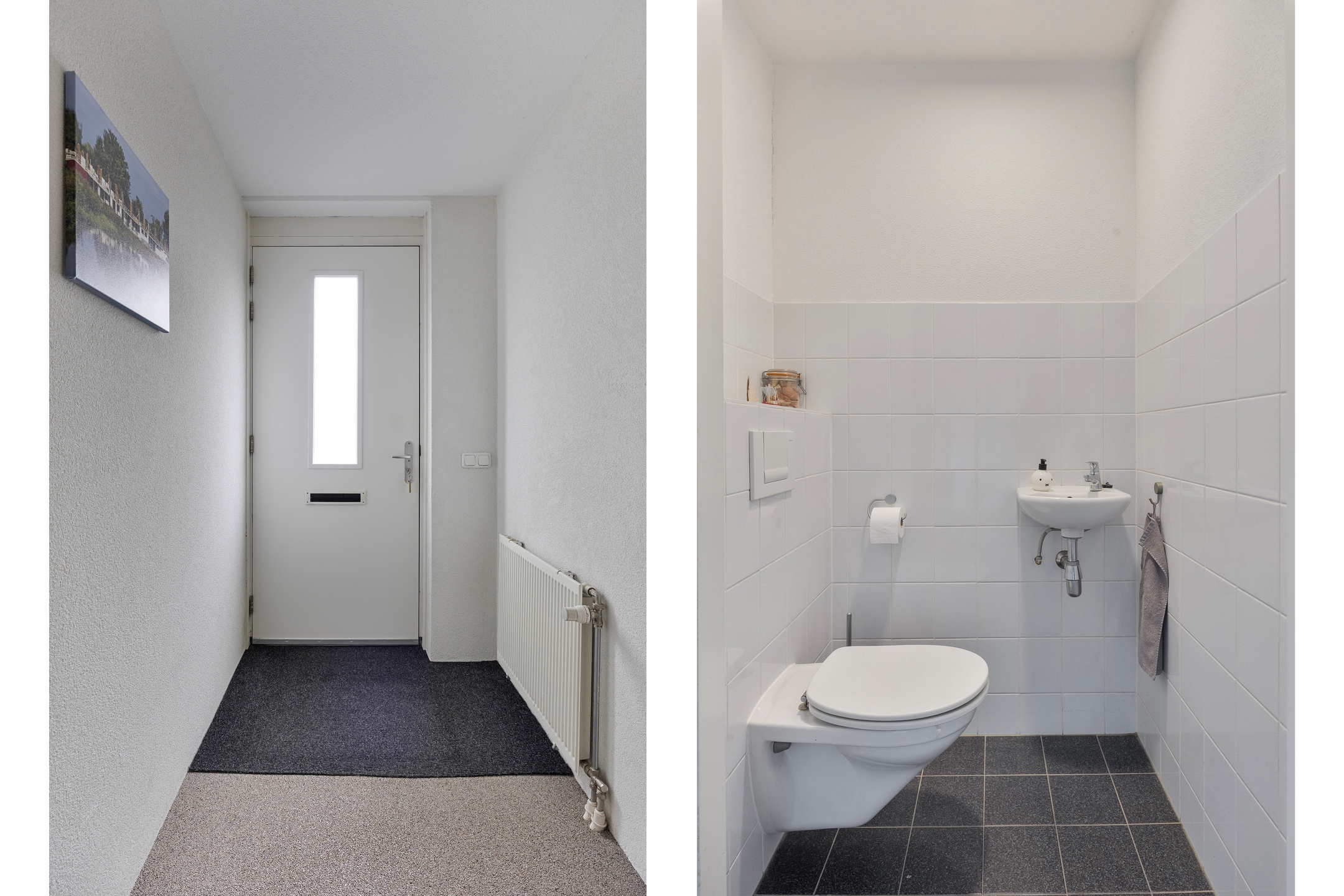 Via de voortuin en eigen parkeerplaats bereik je de entree van de woning. In de hal bevinden zich de meterkast en een toiletruimte. Vanuit hier heb je toegang tot een praktische inpandige berging en de trapopgang naar de verdiepingen. Aan de achterzijde van de woning bevindt zich de ruime woonkeuken. Deze leefkeuken vormt het hart van het huis en biedt volop ruimte voor een grote eettafel, waardoor het een heerlijke plek is om te koken, eten en samen te zijn.