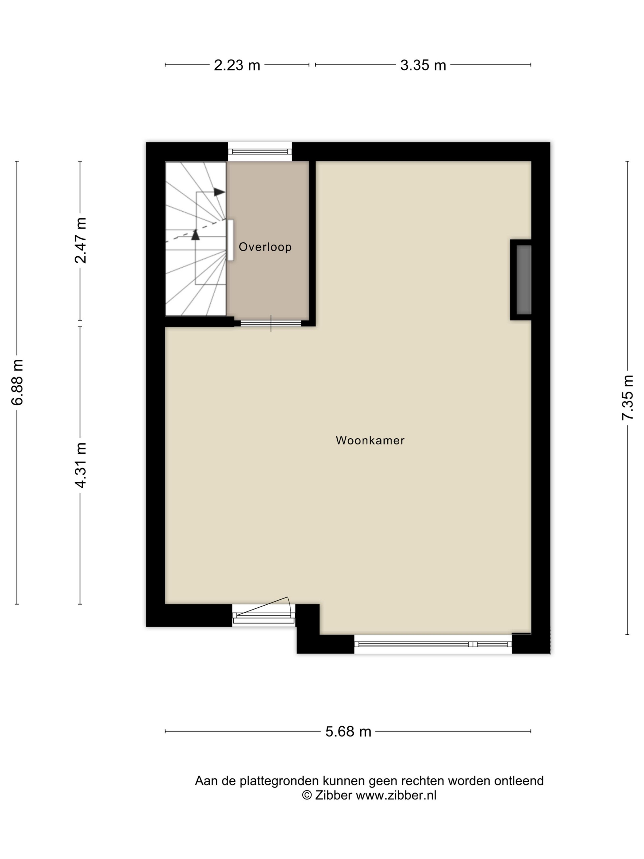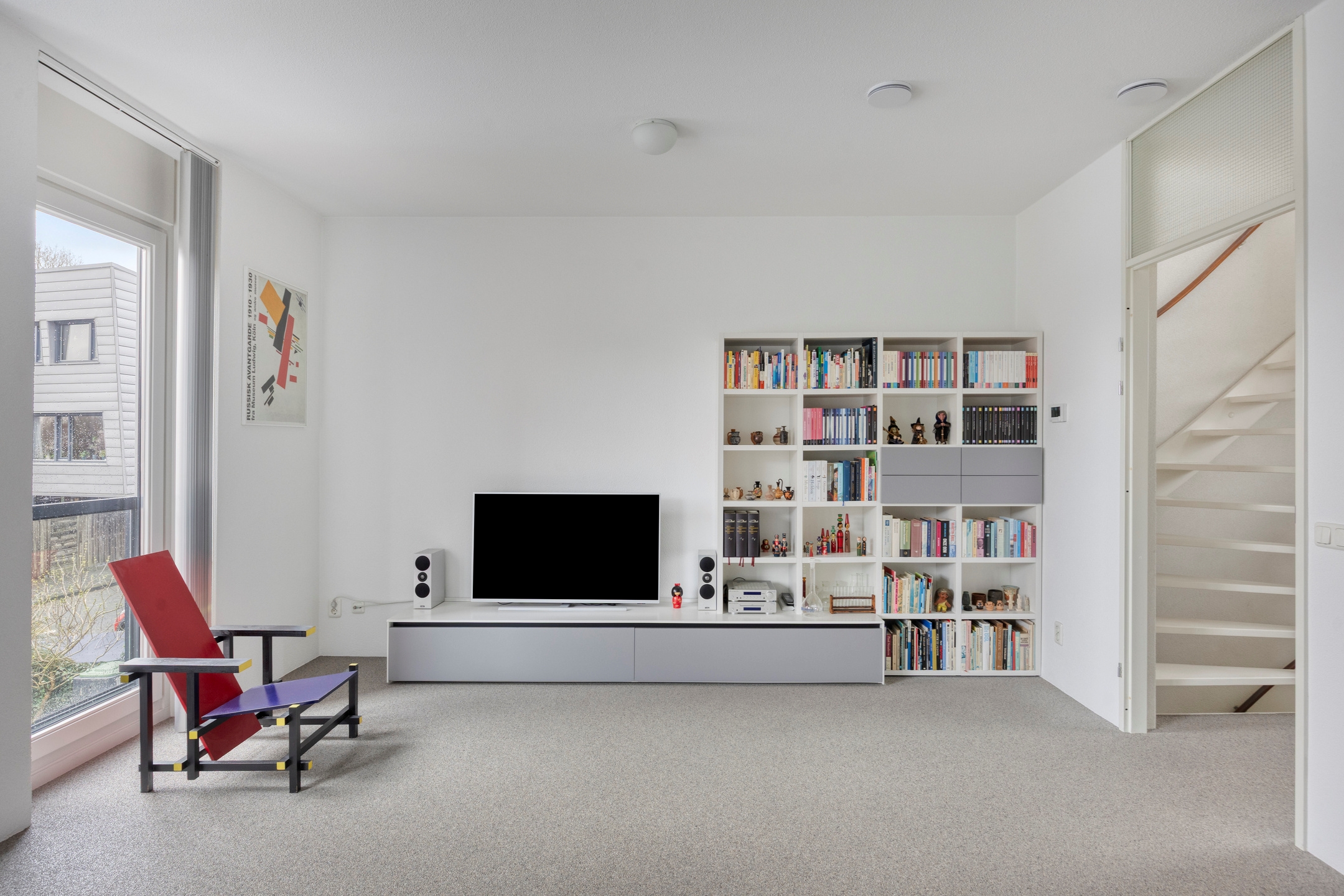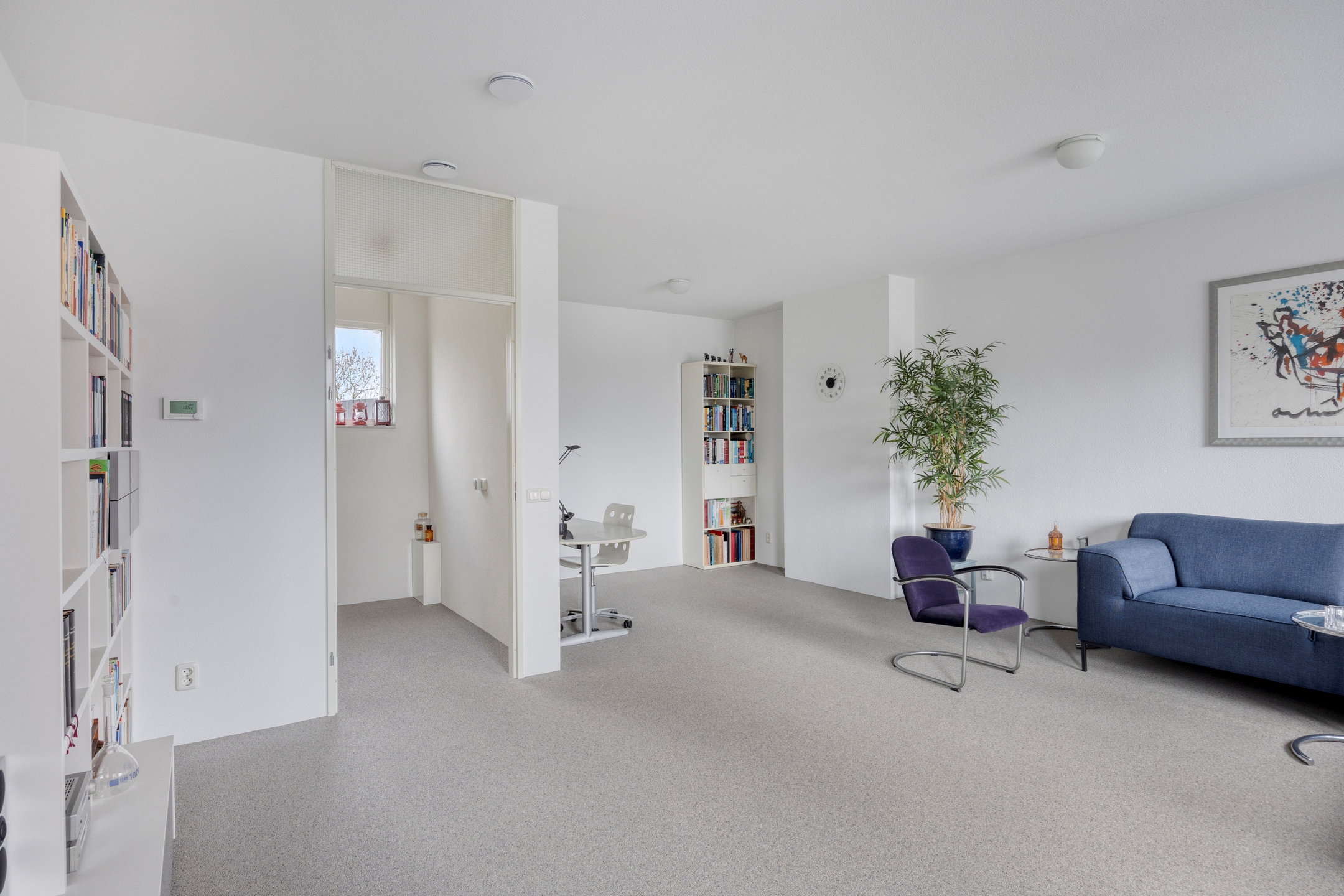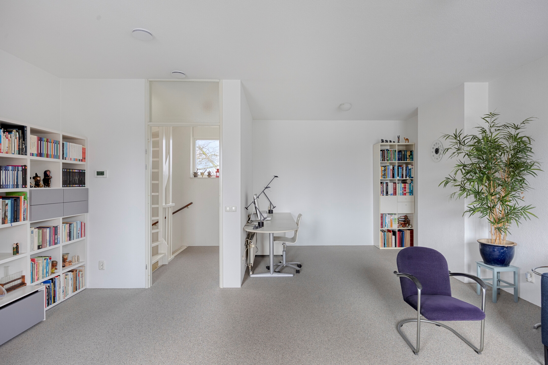 De eerste verdieping is ingericht als royale woonkamer. Dankzij de brede opzet en de grote raampartijen geniet je hier van een prettige lichtinval. De ruimte biedt volop mogelijkheden voor verschillende indelingen, zoals een comfortabele zithoek of een werkplek.