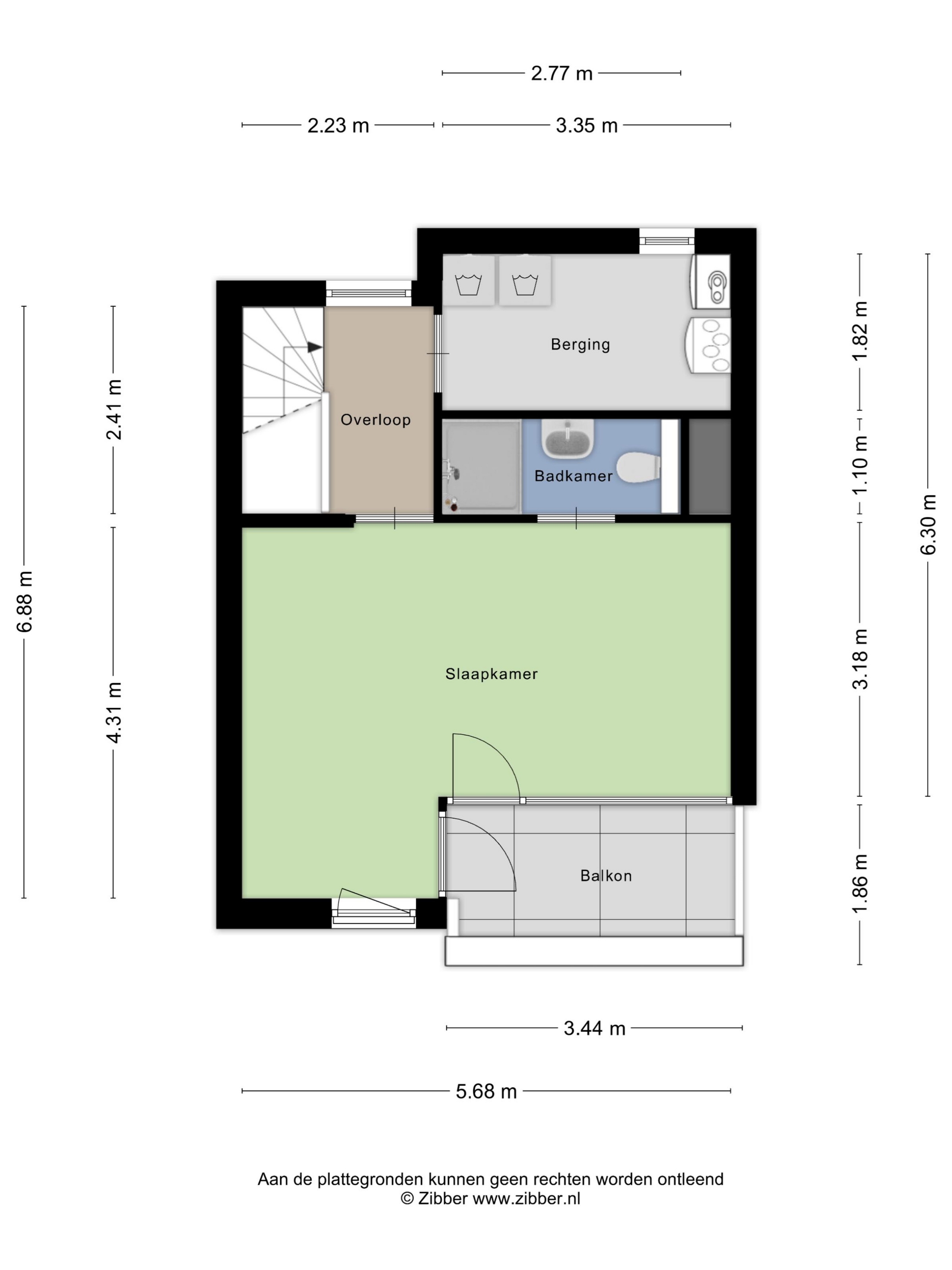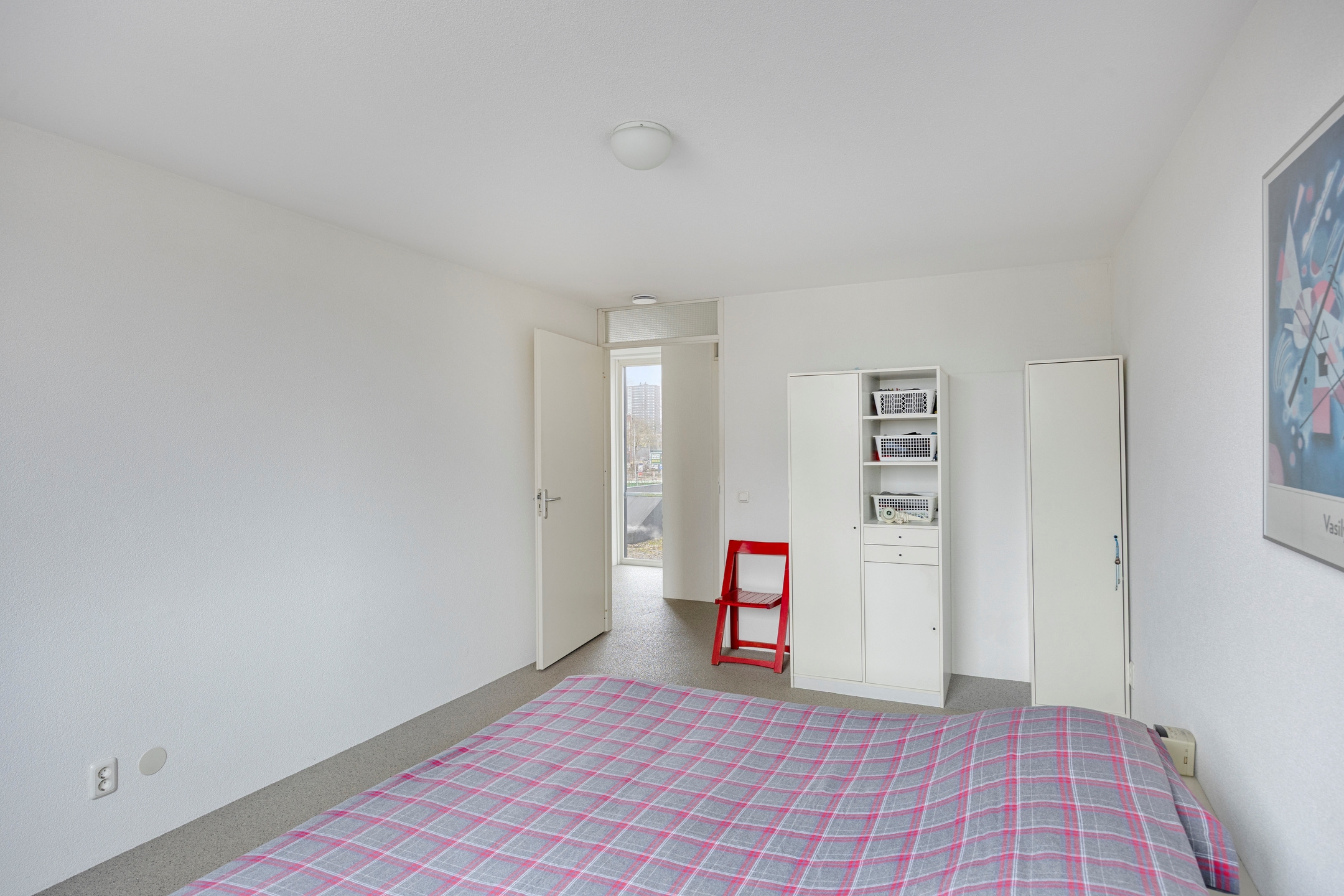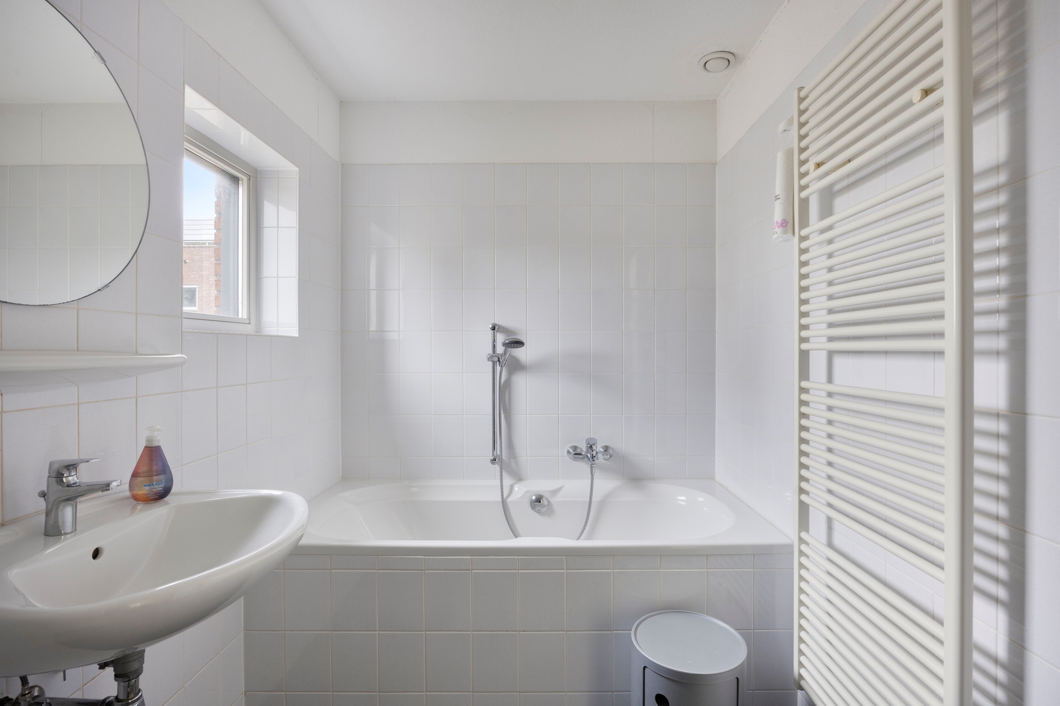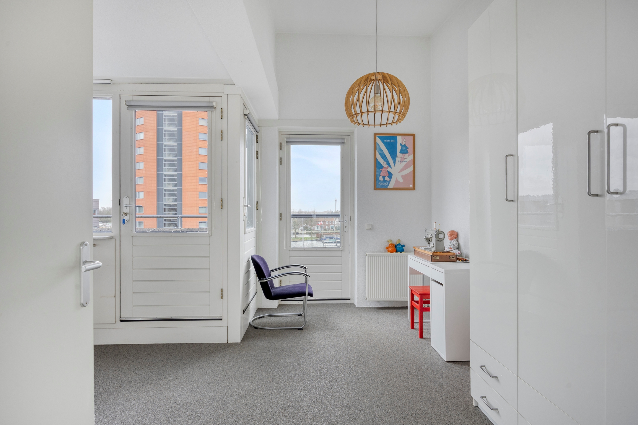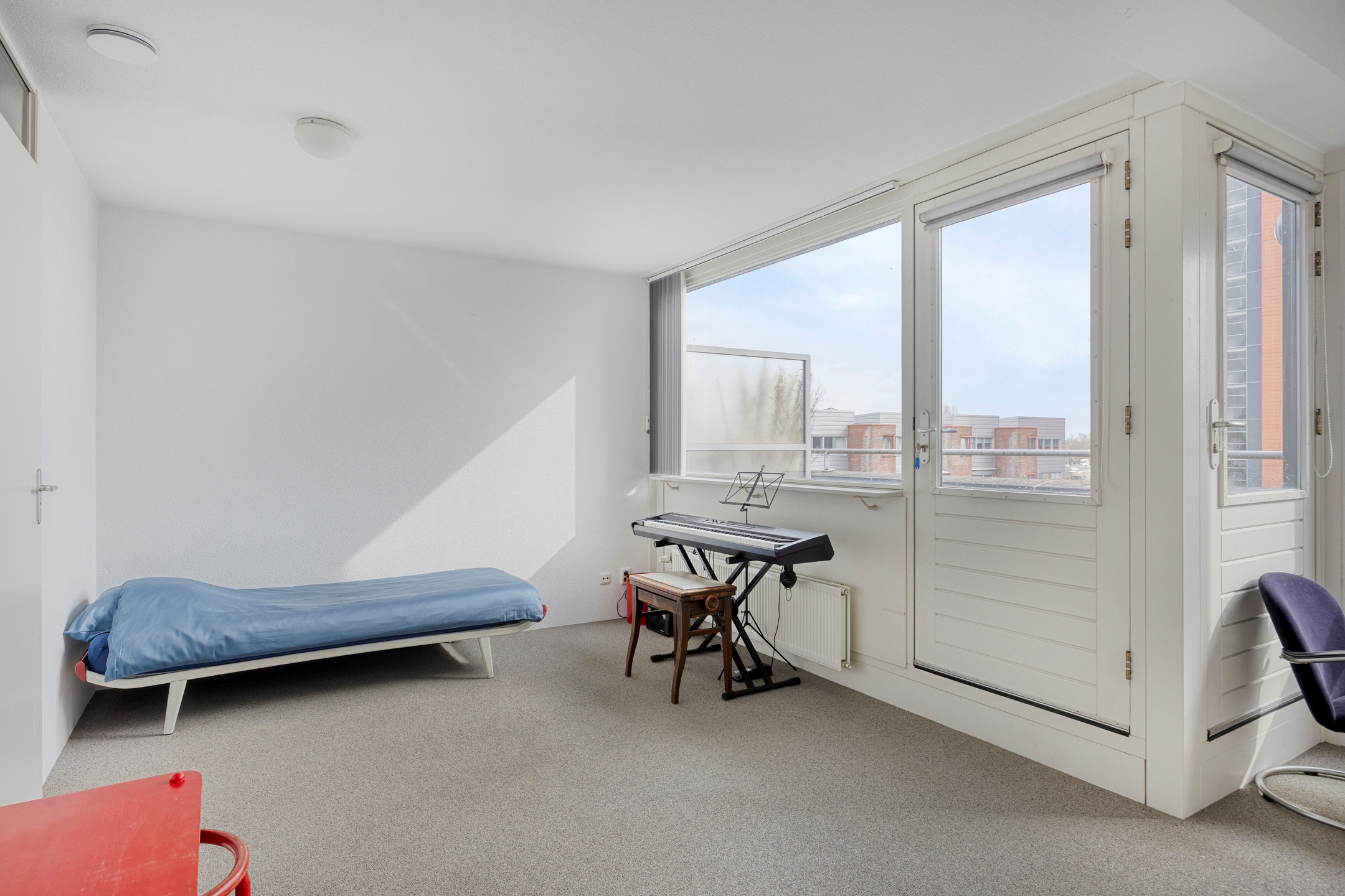 De bovenste verdieping biedt een ruime en flexibele indeling. Hier bevindt zich een royale kamer met veel lichtinval en directe toegang tot het balkon. Deze ruimte is op verschillende manieren te gebruiken, afhankelijk van jouw woonwensen. Daarnaast is er een tweede badkamer met douche, wastafel en toilet, evenals een aparte berging/wasruimte.