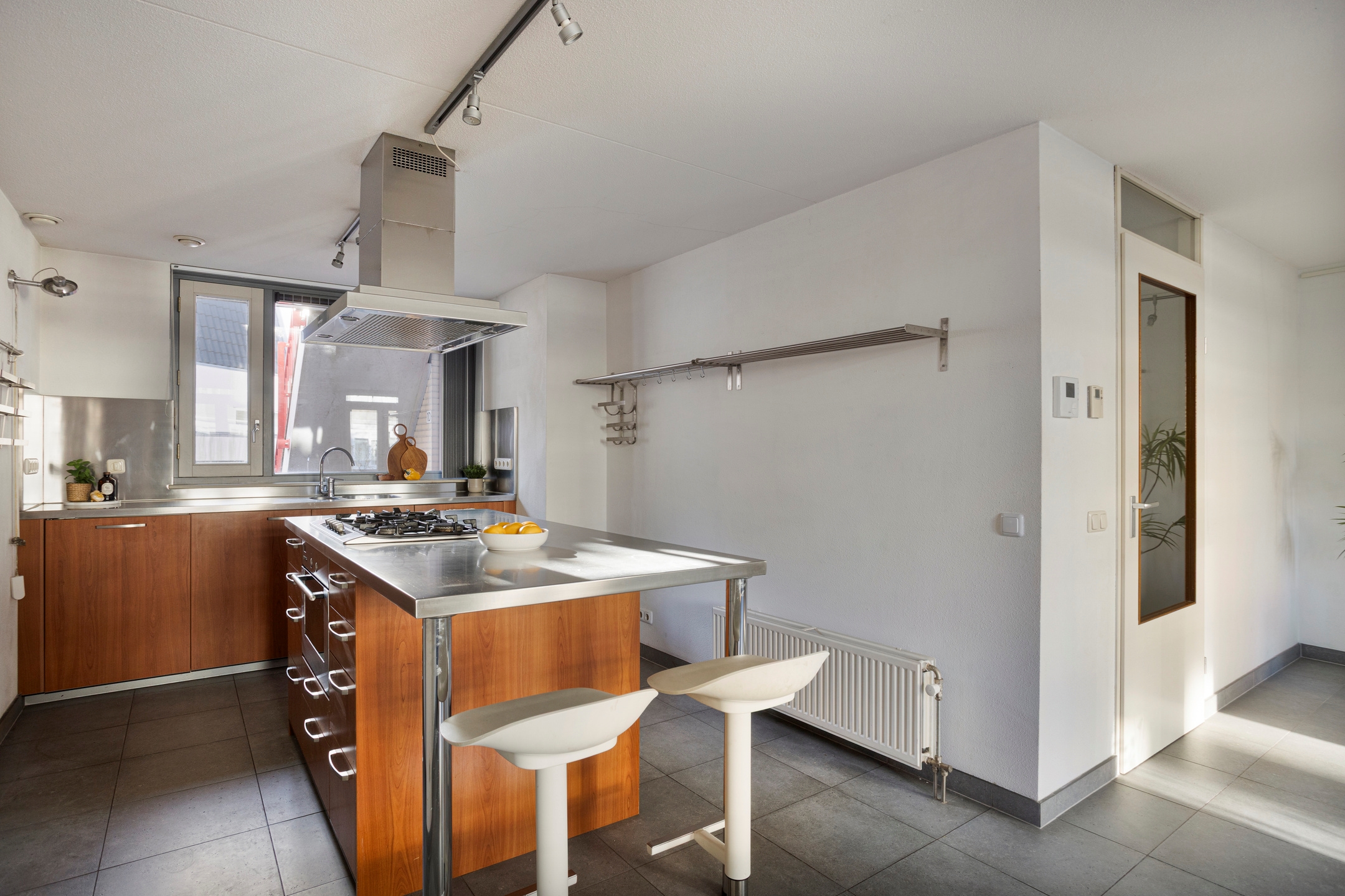 De woonkamer is licht en ruim opgezet en staat in open verbinding met de keuken. De open keuken vormt het centrale punt van de woning. Het royale kookeiland met RVS-werkblad geeft de ruimte een eigentijdse uitstraling en maakt dit appartement duidelijk onderscheidend binnen dit segment. De grote vloeroppervlakken en rustige afwerking zorgen voor een aangename leefruimte met veel flexibiliteit in inrichting.