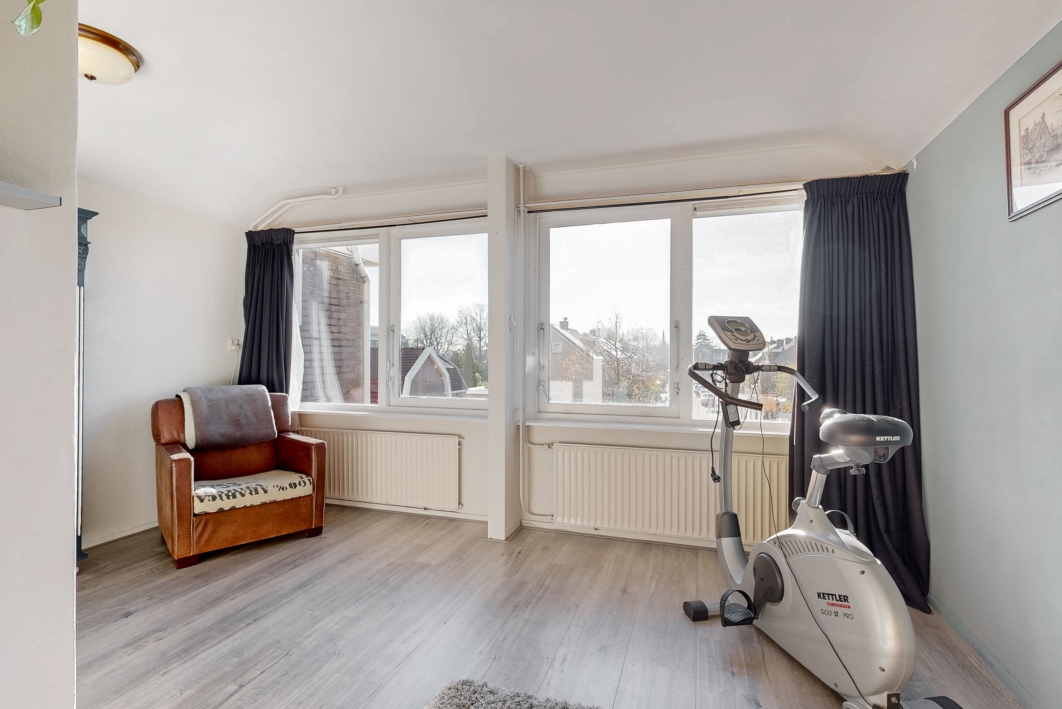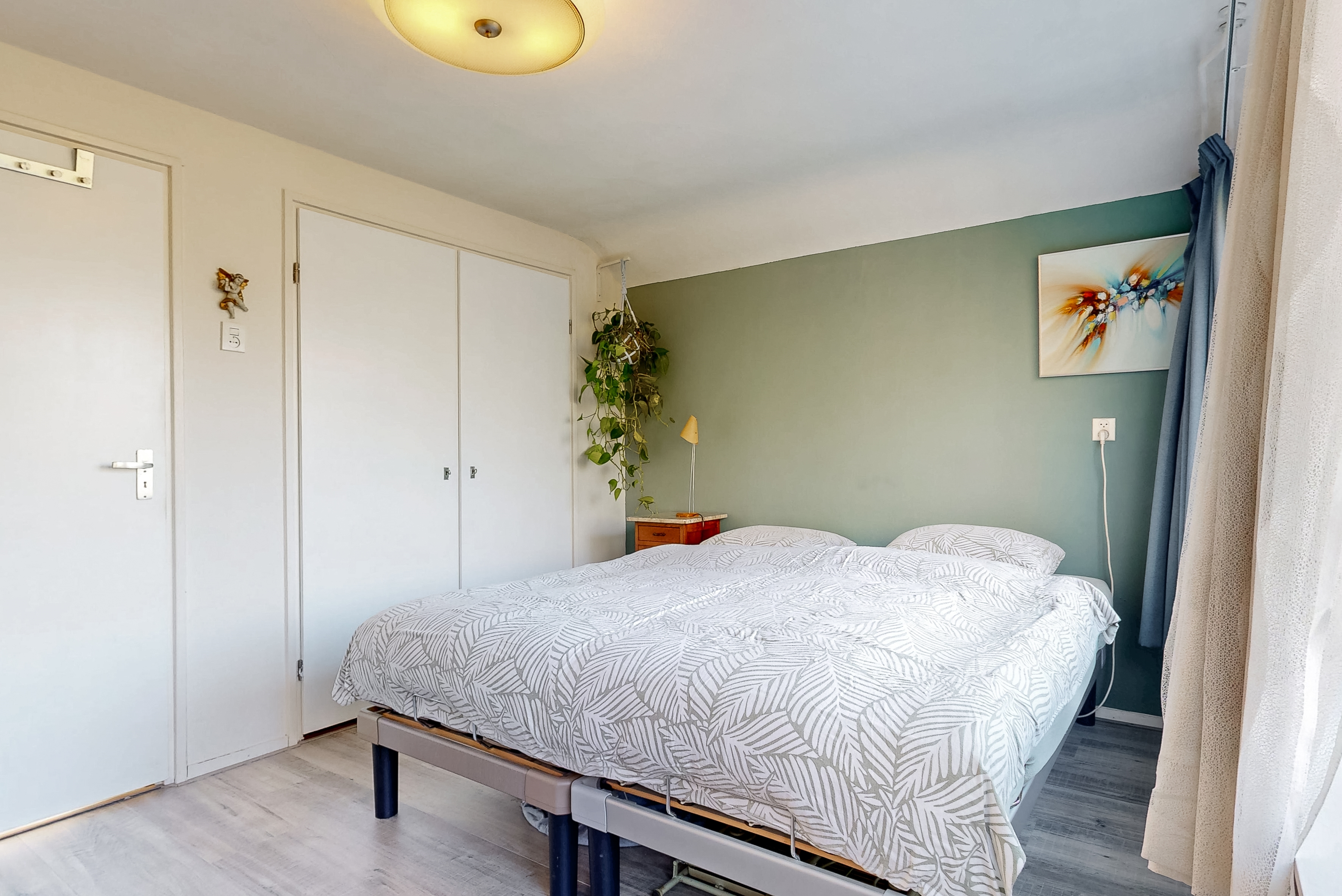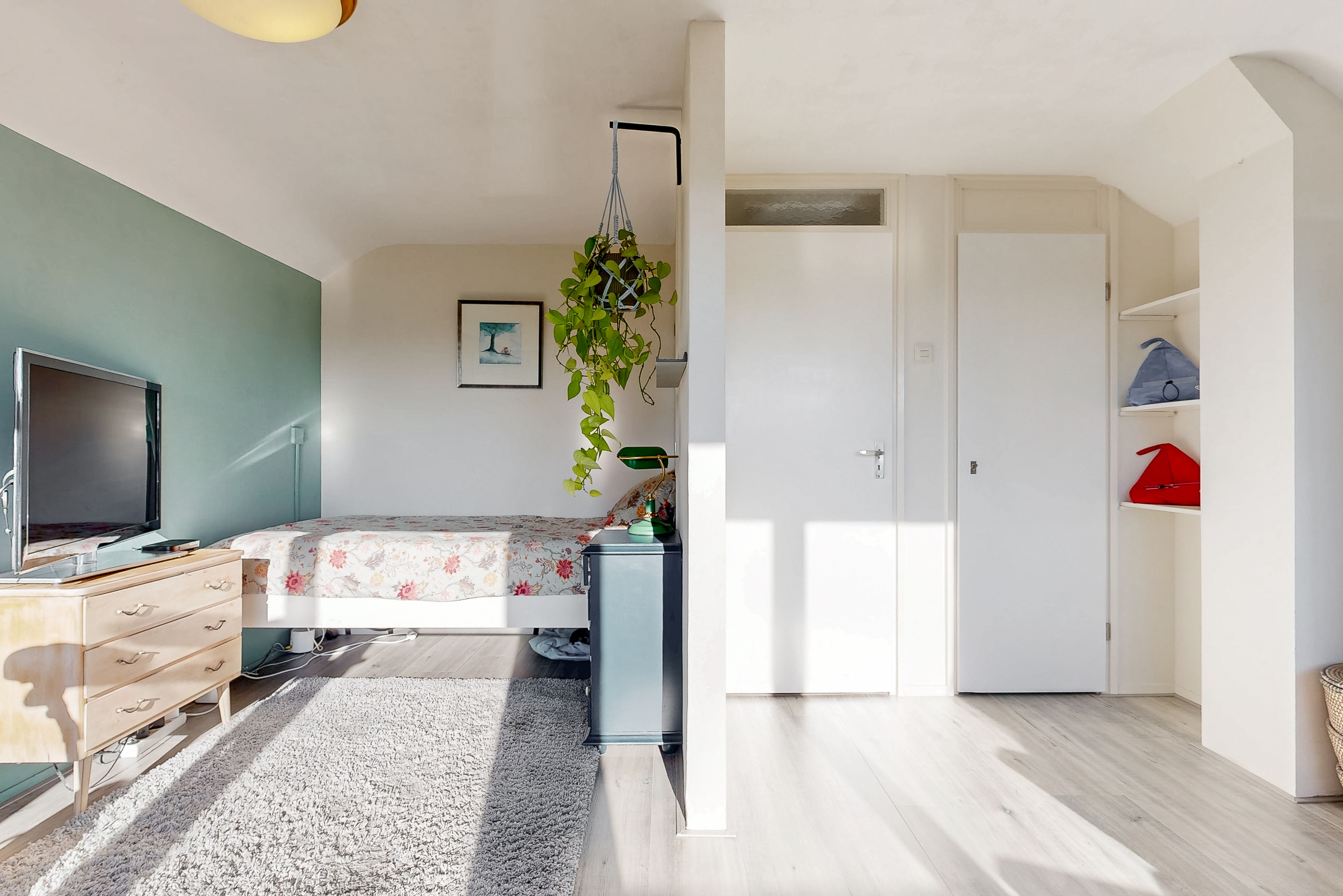 Overloop met toegang tot 2 heerlijk ruime slaapkamers en de badkamer. De nette badkamer is voorzien van een wastafel met meubel, een ligbad met douche en het tweede toilet. De grote slaapkamer aan de achterzijde geeft toegang tot het balkon. De huidige bewoners hebben van de 2 slaapkamers aan de voorzijde, één grote gemaakt. Dit is vrij eenvoudig weer in originele staat terug te brengen. Via een luik in het plafond kunt u naar de royale vliering (hele lengte woning) van maar liefst 36 m2 waar meer dan genoeg ruimte is voor uw koffers en de kerstspullen.