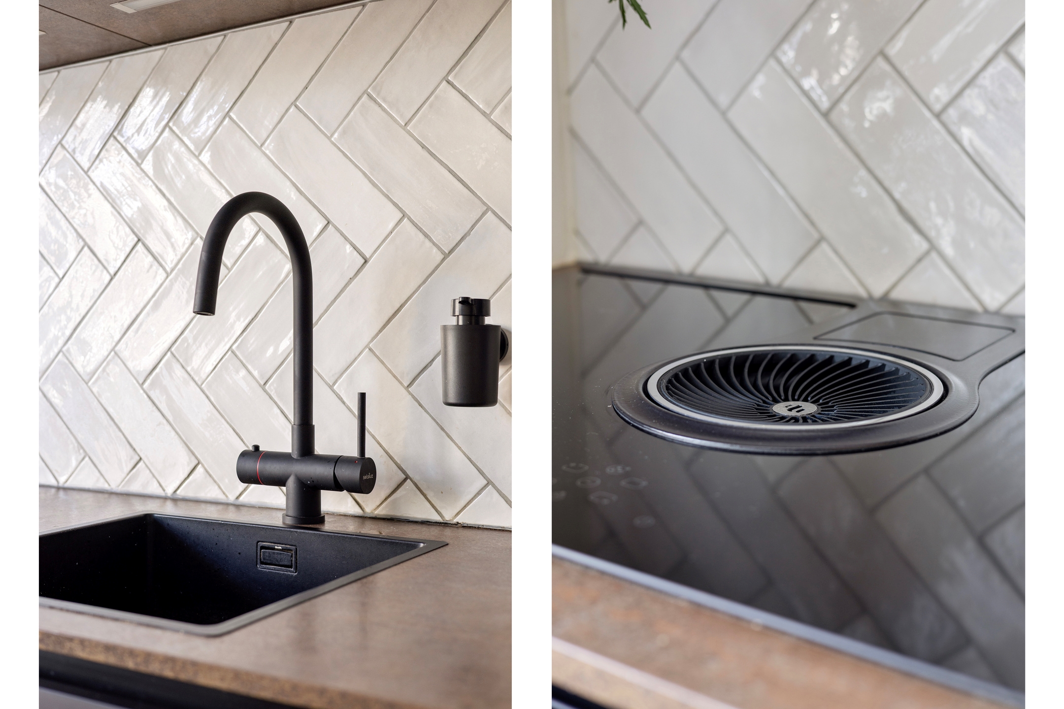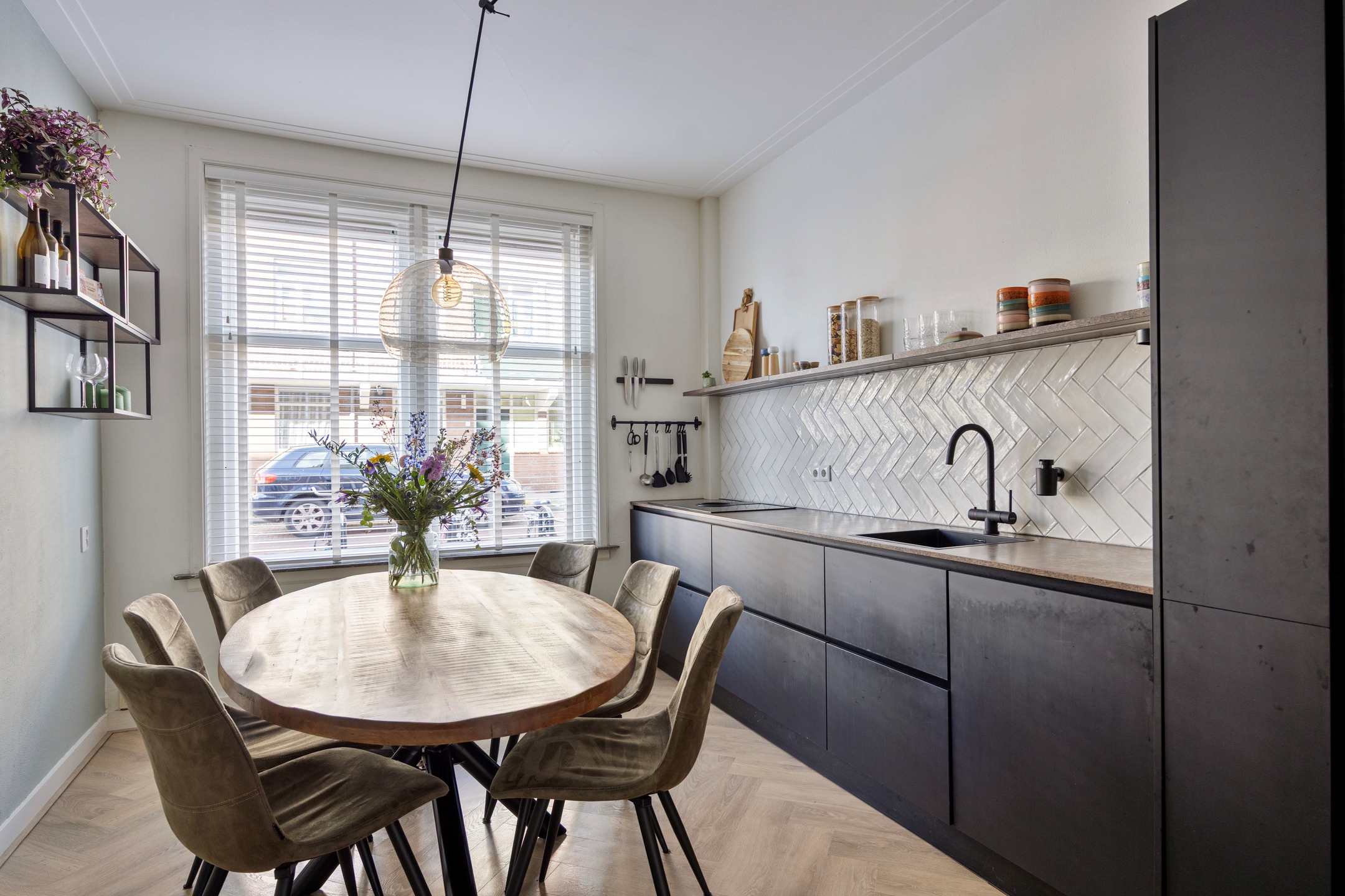 De moderne leef keuken vormt een prettig centraal punt in de woning. De keuken heeft een praktische indeling en is uitgerust met diverse inbouwapparatuur, waaronder een inductiekookplaat, oven, combimagnetron, vaatwasser, koel-vriescombinatie en een kokend waterkraan.