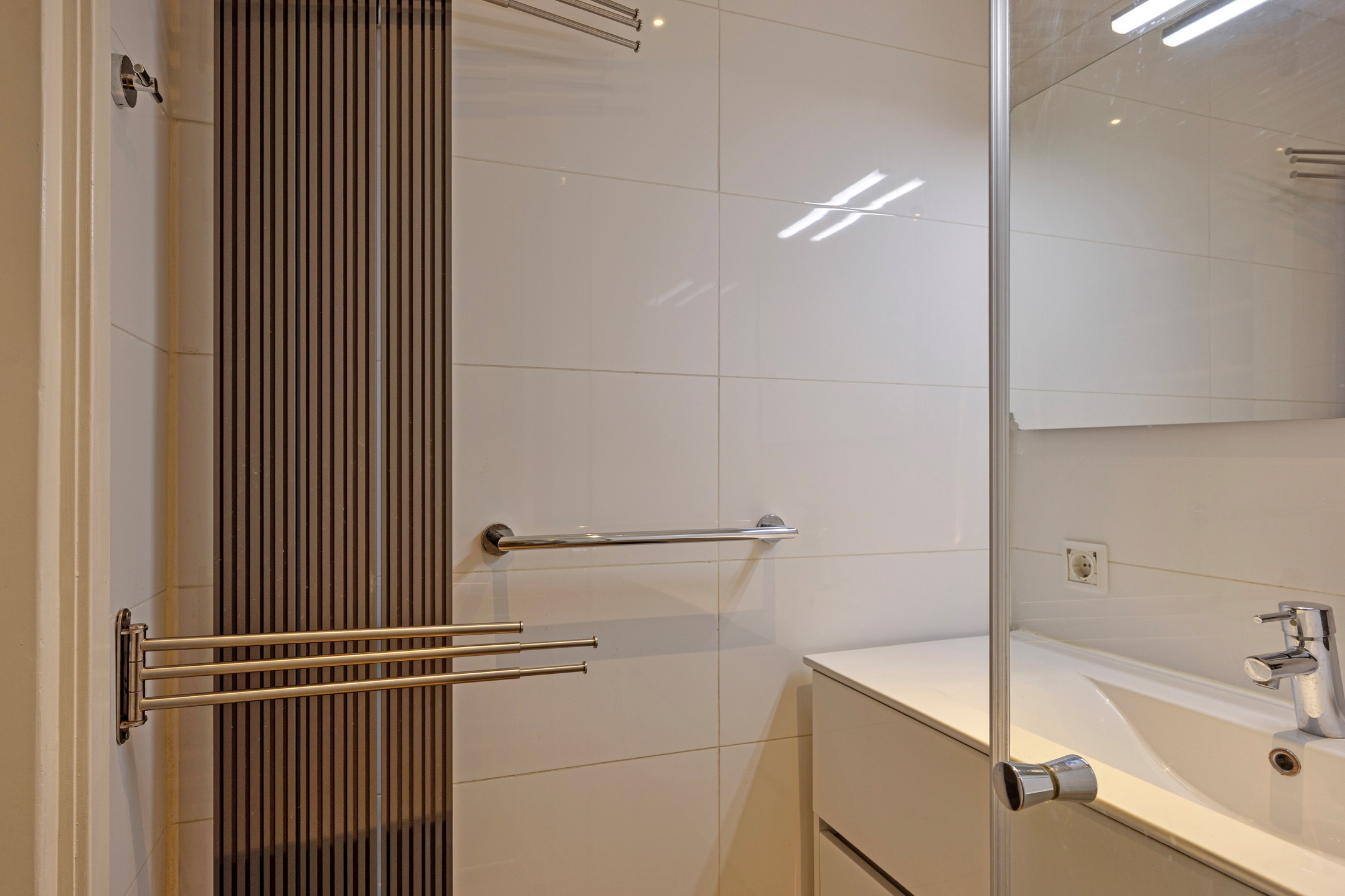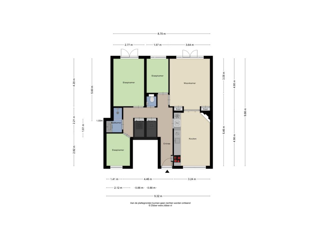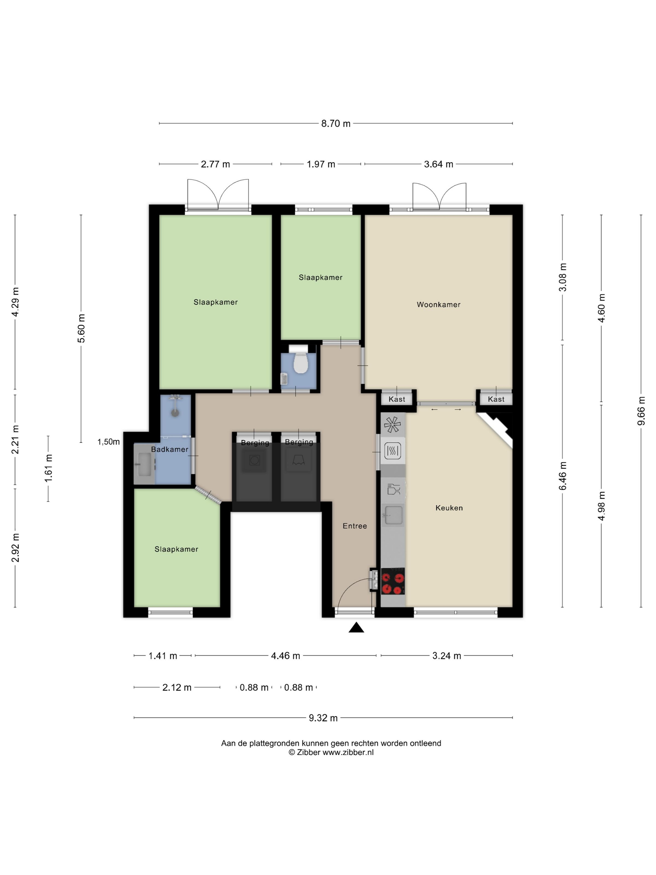 Via de hal zijn de overige vertrekken bereikbaar. Aan de achterzijde ligt de grootste slaapkamer met uitzicht op de tuin, terwijl een tweede slaapkamer zich aan de voorzijde bevindt. Daarnaast is er een derde slaapkamer, ontstaan door het verplaatsen van de keuken. Boven de voorste slaapkamer en de badkamer bevindt zich een praktische vliering voor extra bergruimte. De badkamer is in 2020 vernieuwd en heeft een frisse uitstraling met een inloopdouche en een brede wastafel met meubel.