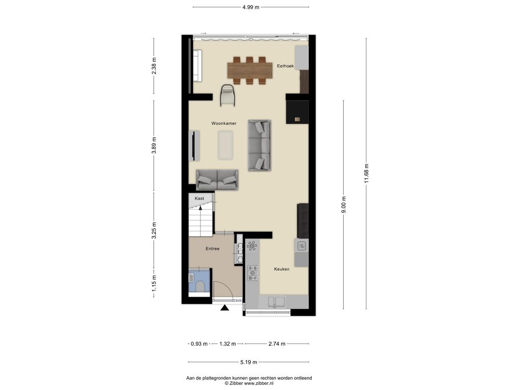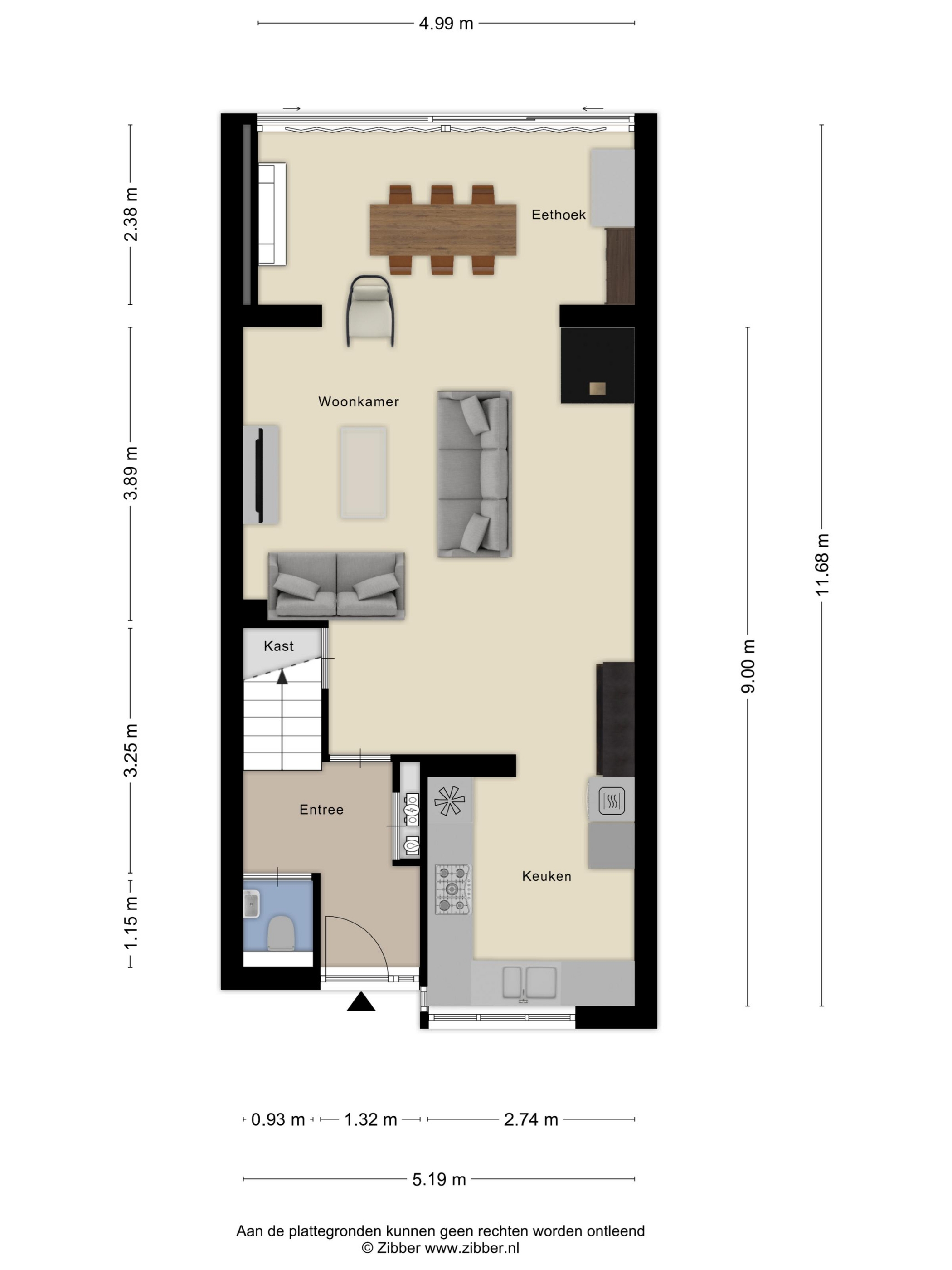 Via de entree kom je binnen in de hal met garderoberuimte, meterkast en modern toilet. Vanuit hier stap je de woonkamer in.