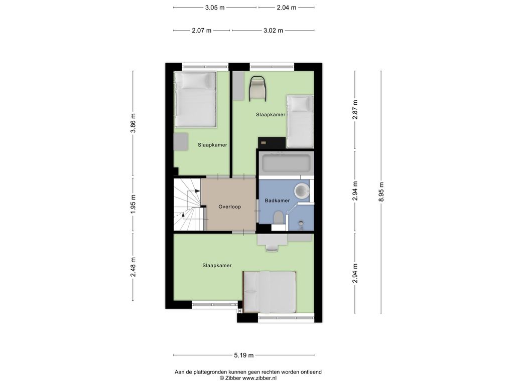 Via de trap kom je uit op de eerste verdieping. De overloop is licht en geeft toegang tot drie volwaardige slaapkamers en een badkamer.
