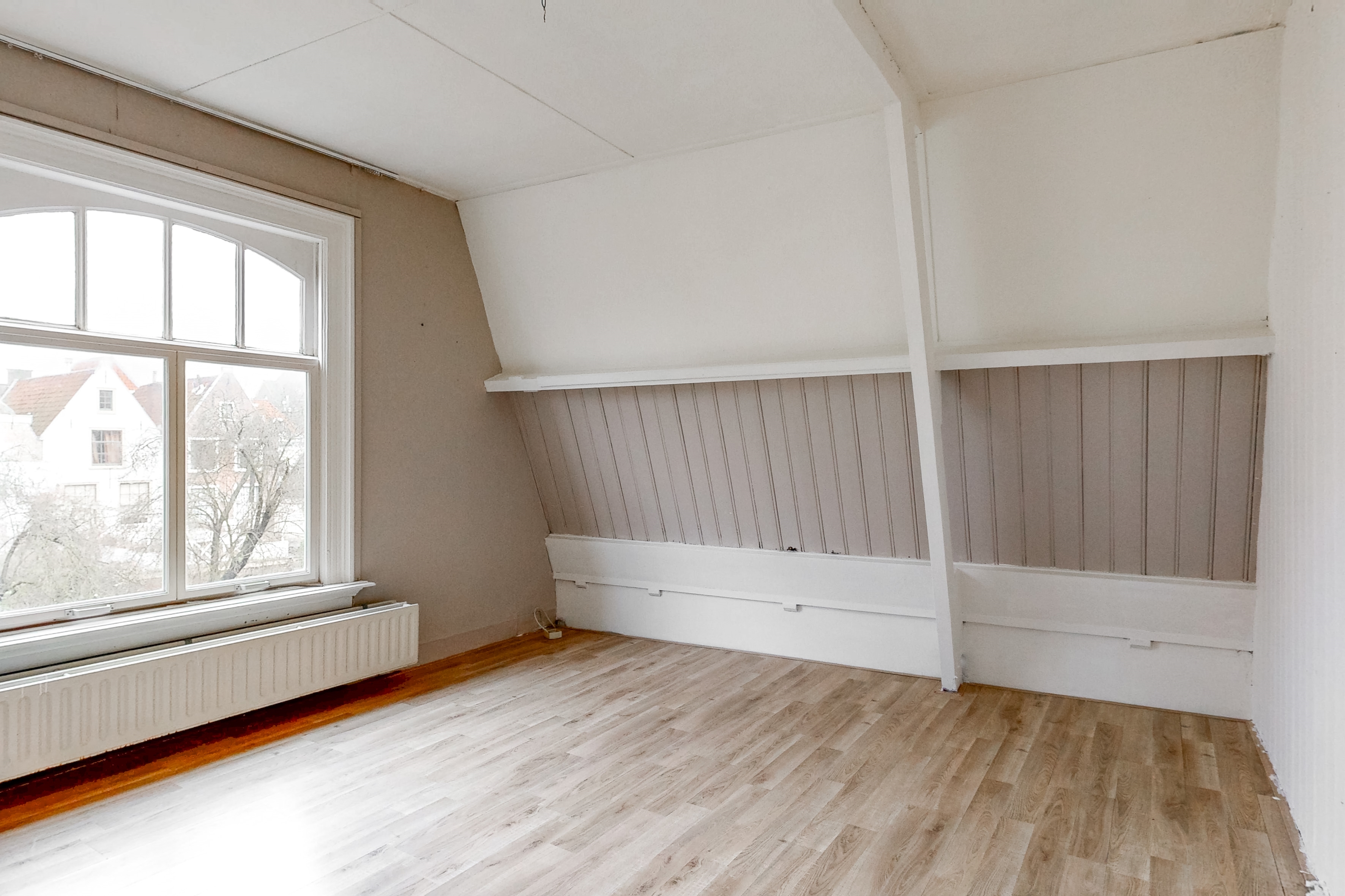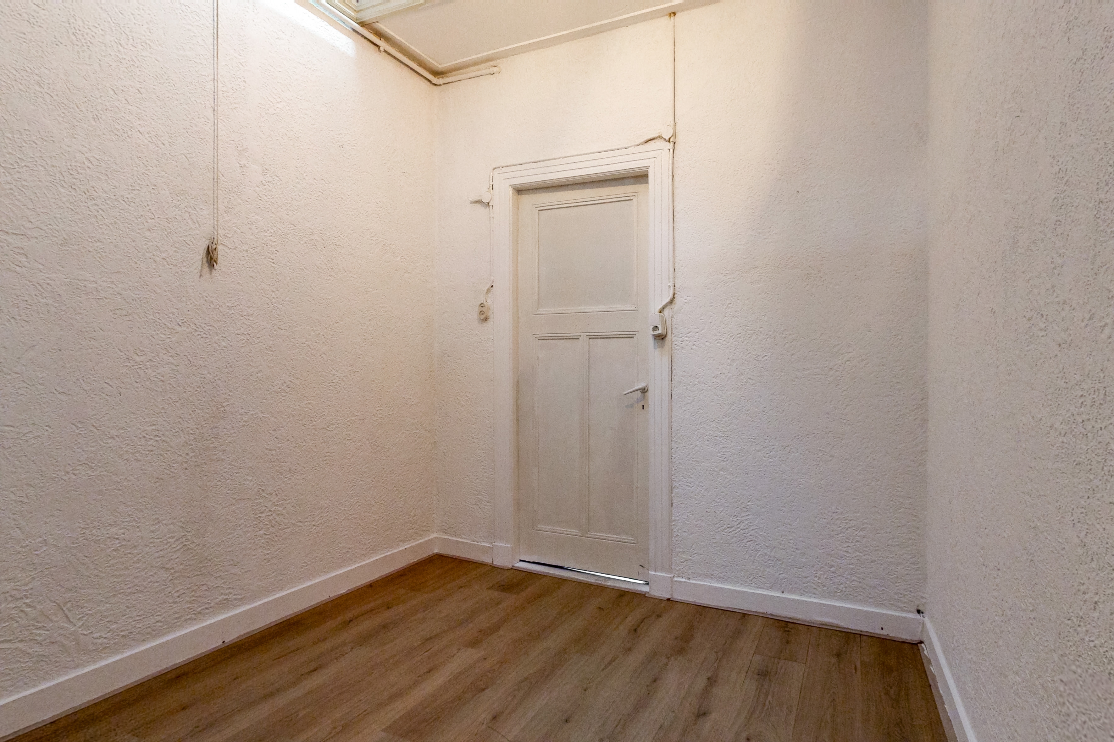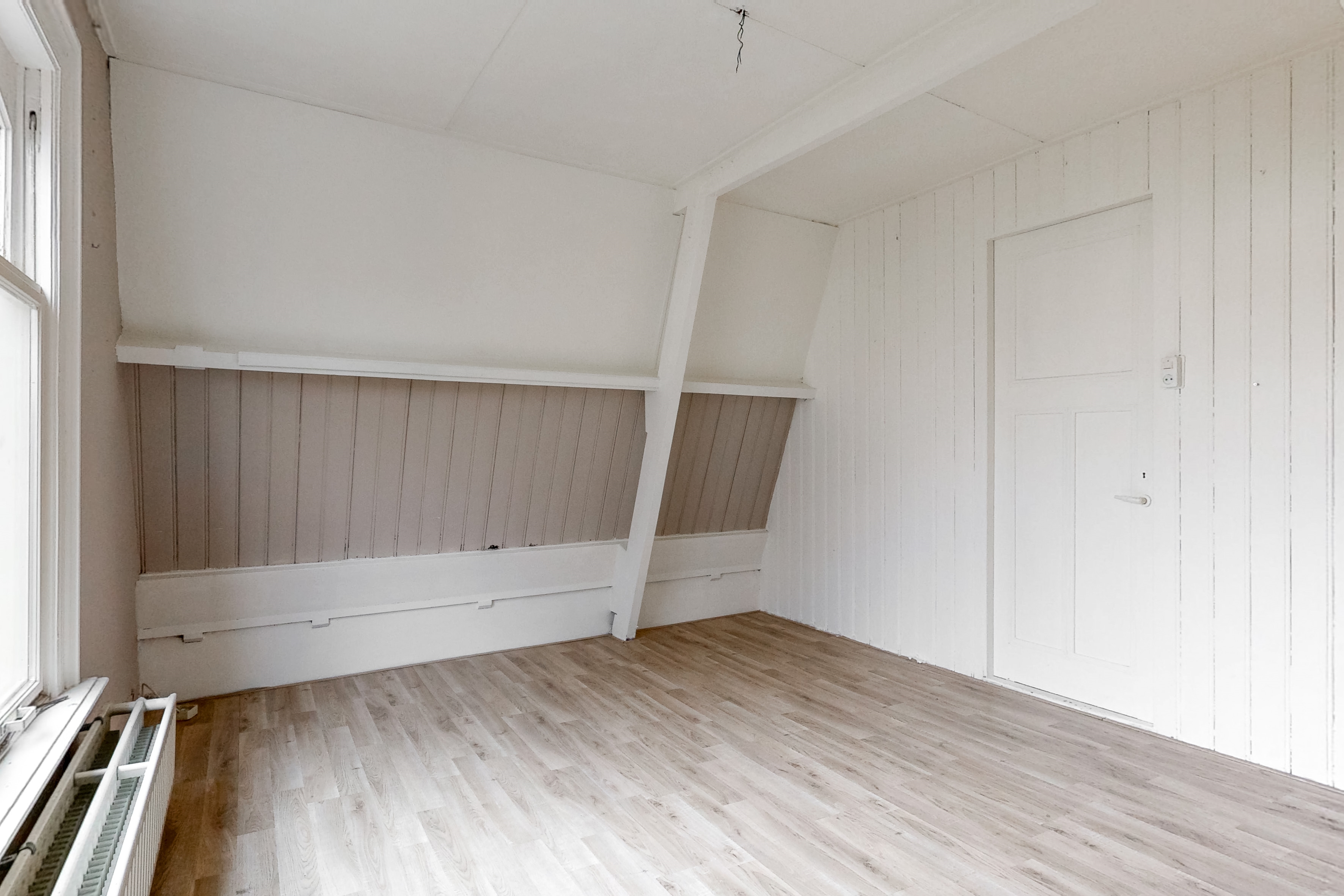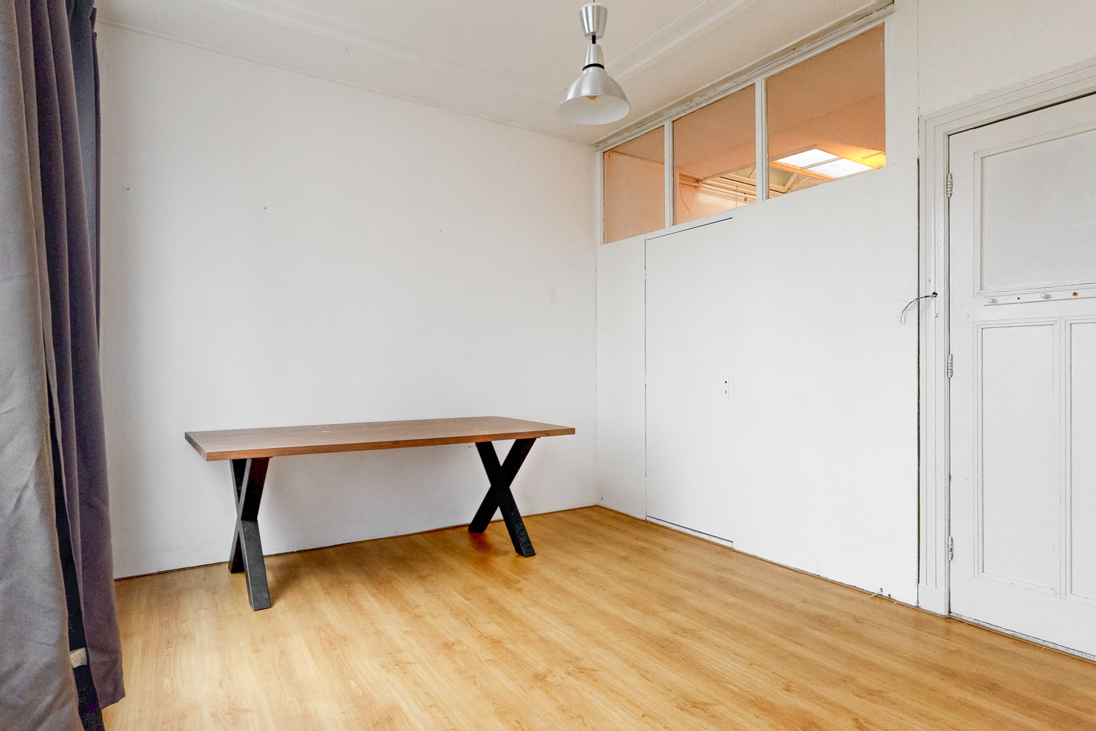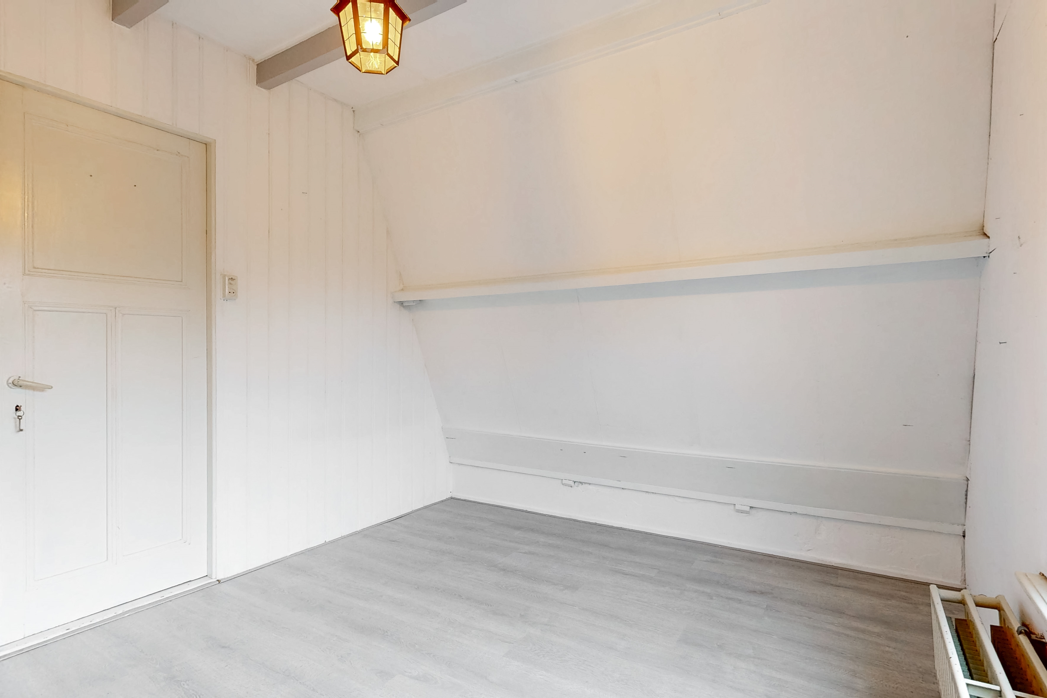 Het beschikt momenteel over een gezamenlijke opgang, een woonkamer, ruime gesloten keuken en 3 slaapkamers, maar heeft bijvoorbeeld nog geen toilet en badkamer. De woning behoeft de nodige aandacht, maar kan om die reden dus volledig naar eigen smaak (her)ingericht worden.