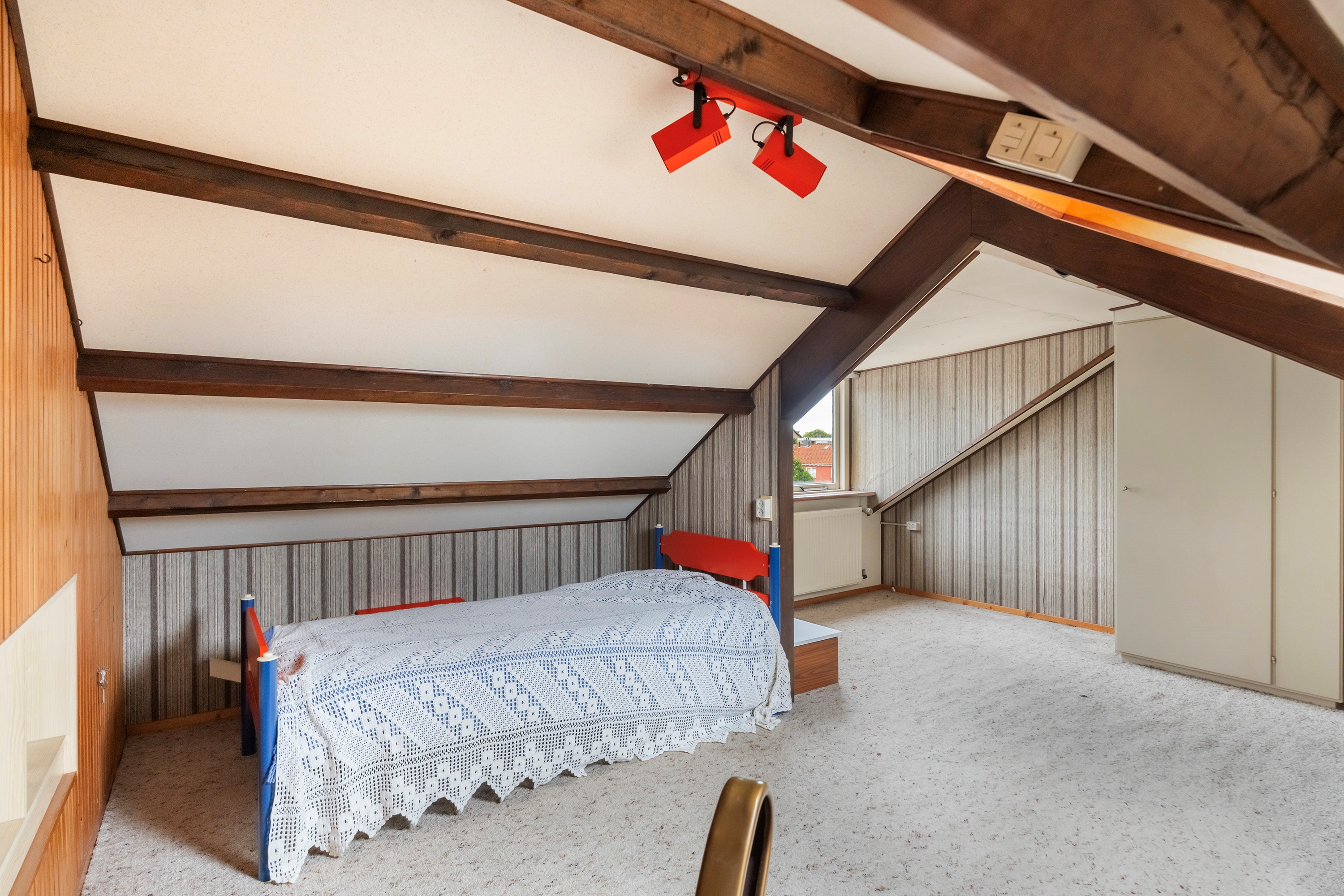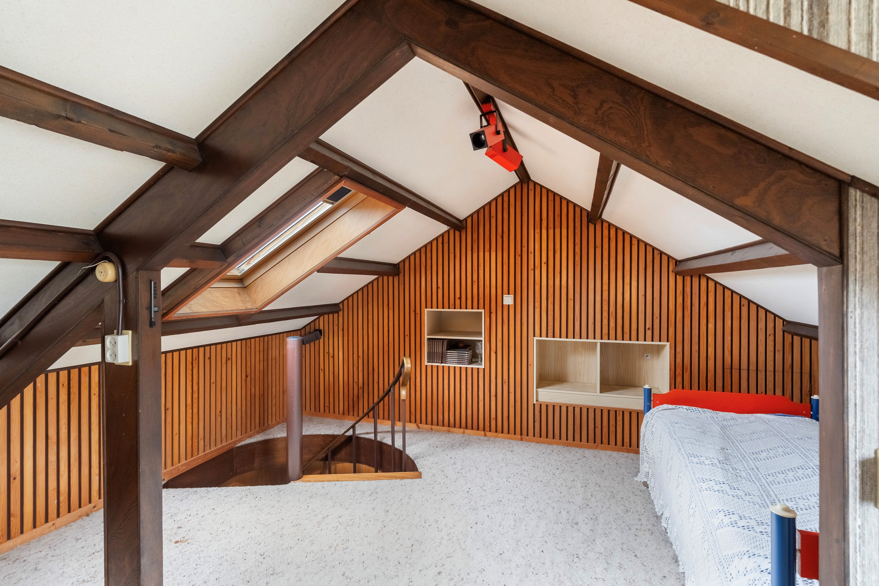 Zolder met dakkapel en dakraam – in gebruik als vijfde slaapkamer.