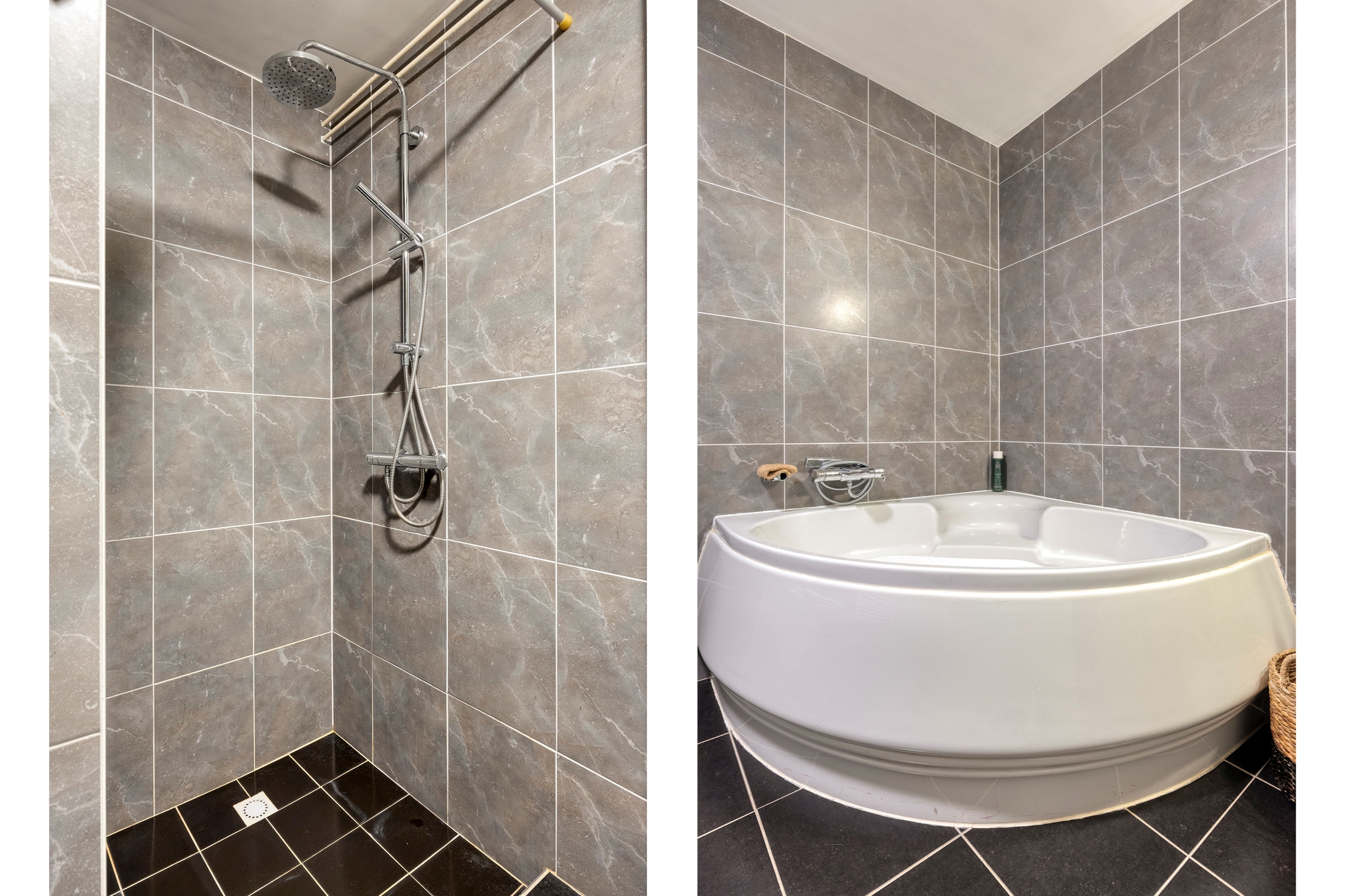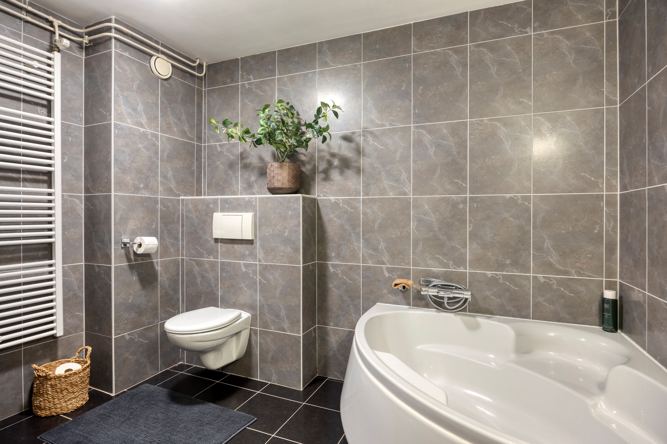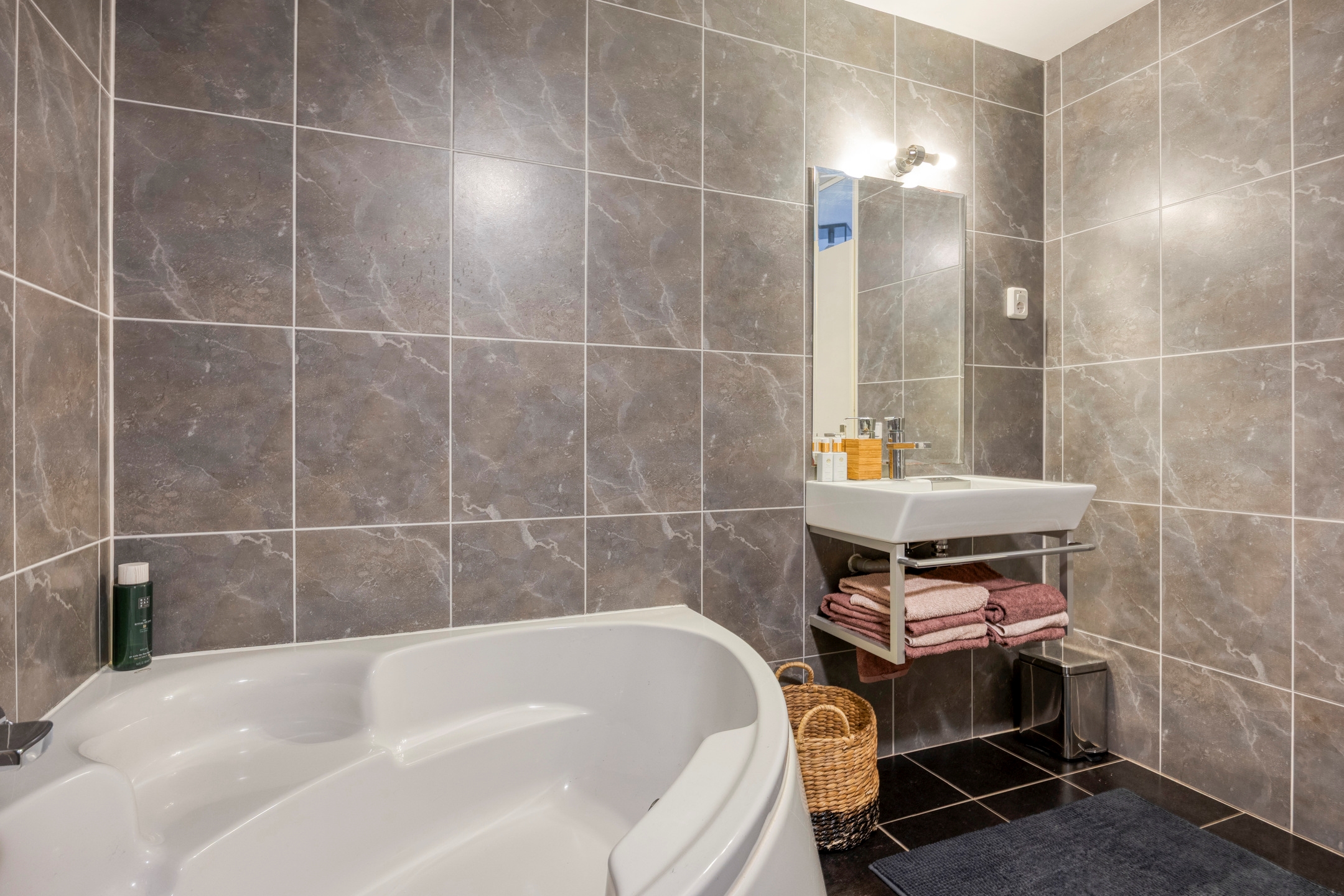 - Badkamer met ligbad en inloopdouche