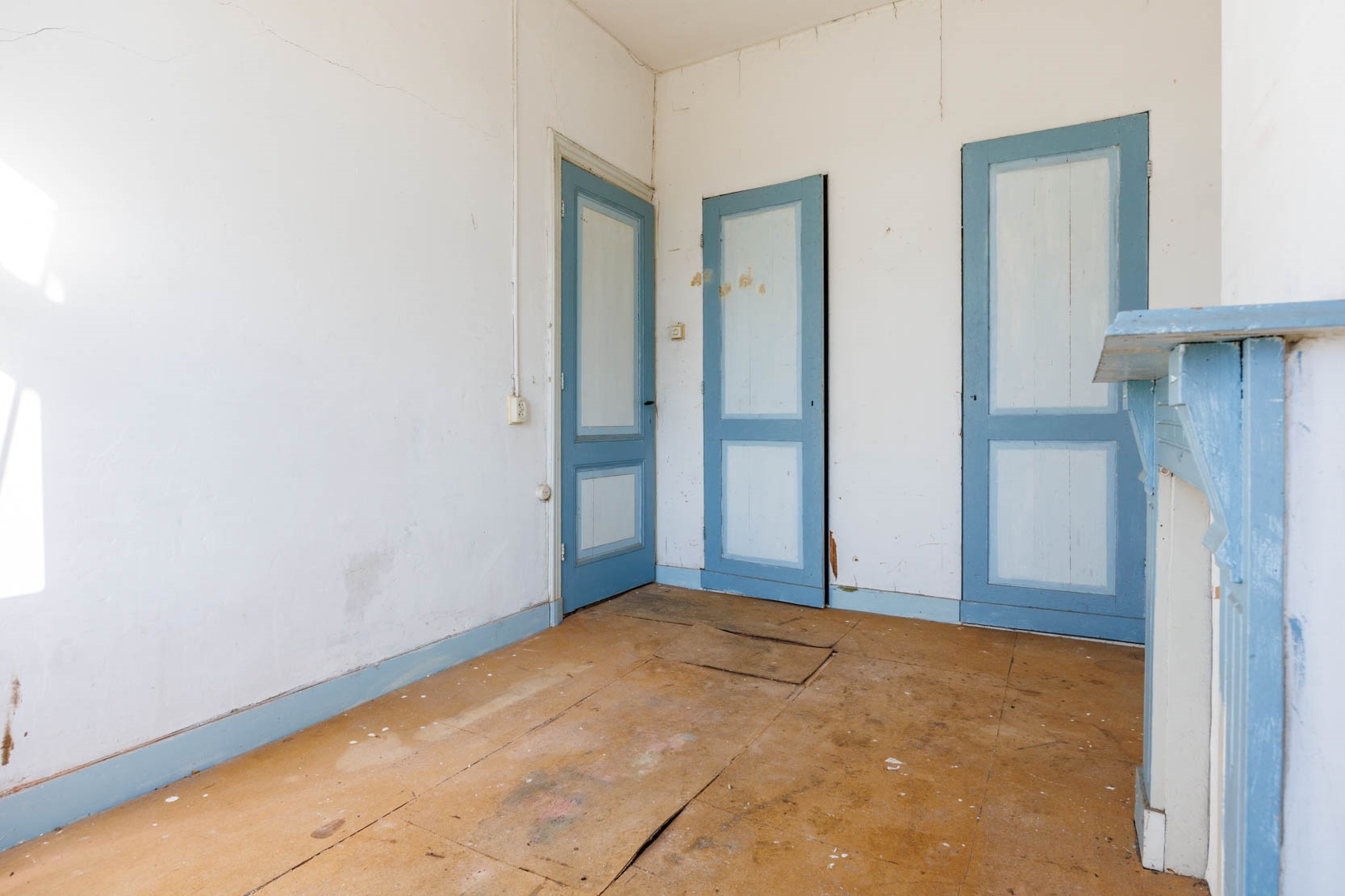 At the rear, there is another (bed)room with an original fireplace mantel. French doors provide access to the generous balcony/roof terrace, where you can enjoy the afternoon and evening sun and the attractive views.