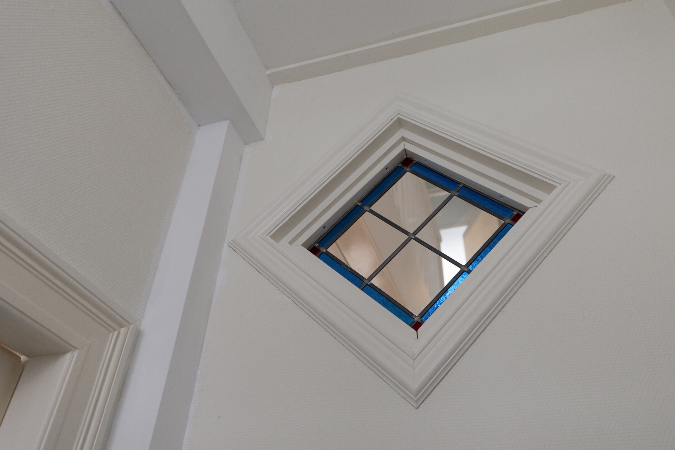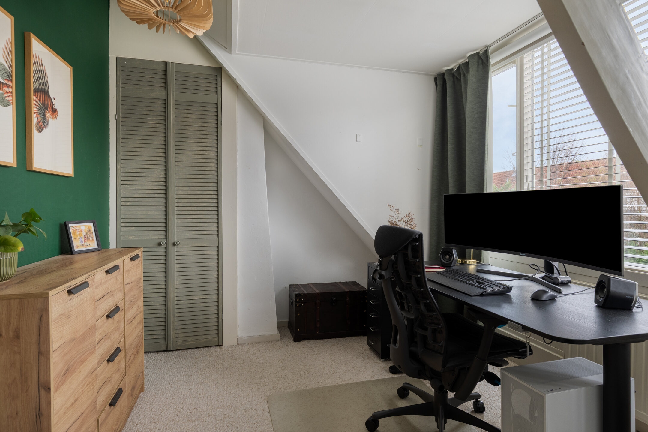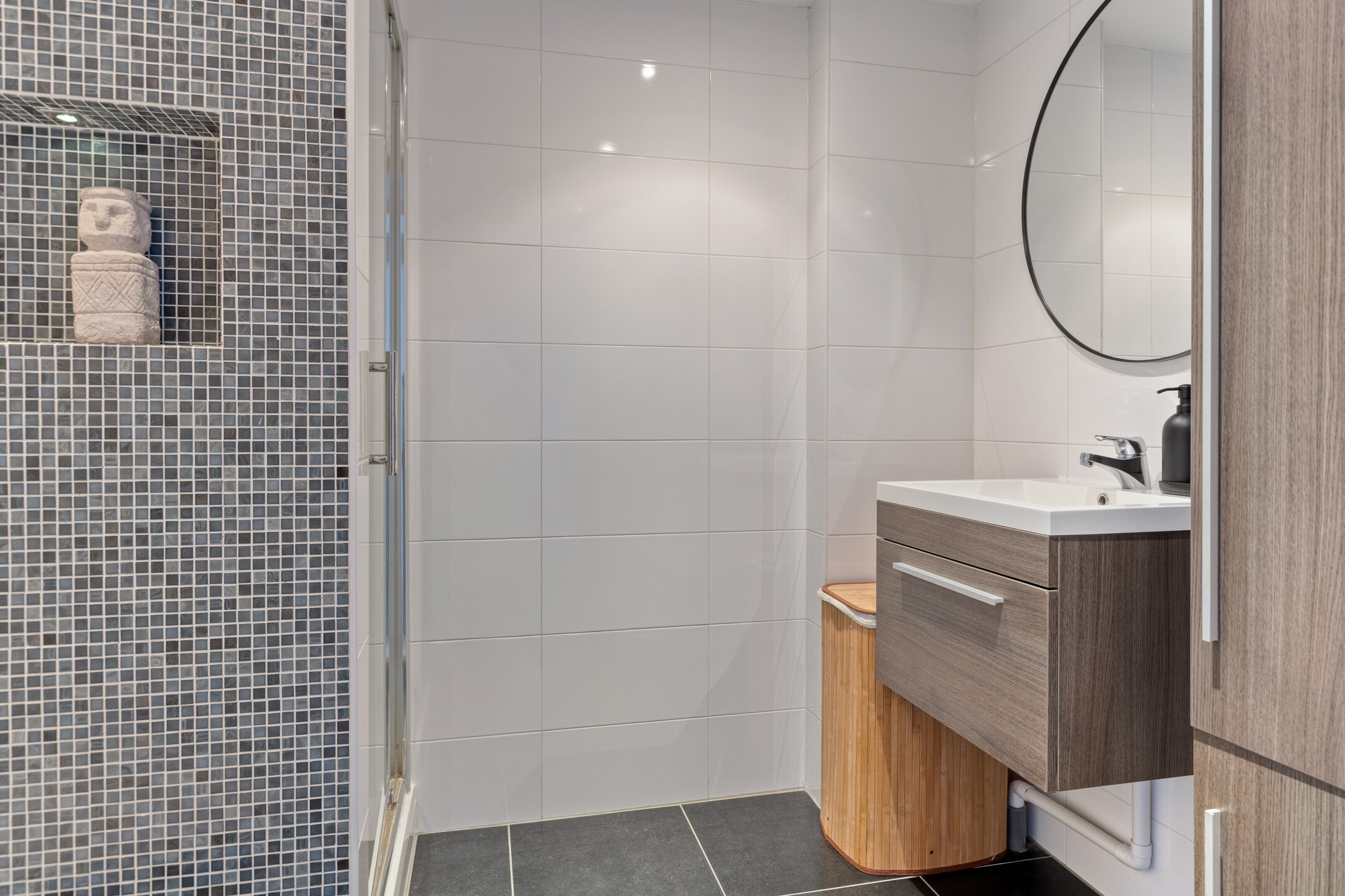 Aan de achterzijde bevindt zich de tweede slaapkamer, eveneens voorzien van een dakkapel. Deze is in 2024 opnieuw geschilderd en daarbij is ook de boeiboord aan de achterzijde vervangen. Tussen beide slaapkamers ligt de moderne badkamer, uitgerust met een douche, toilet en wastafel. Vanaf de overloop is via een vlizotrap de praktische bergzolder bereikbaar.