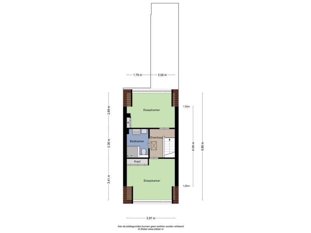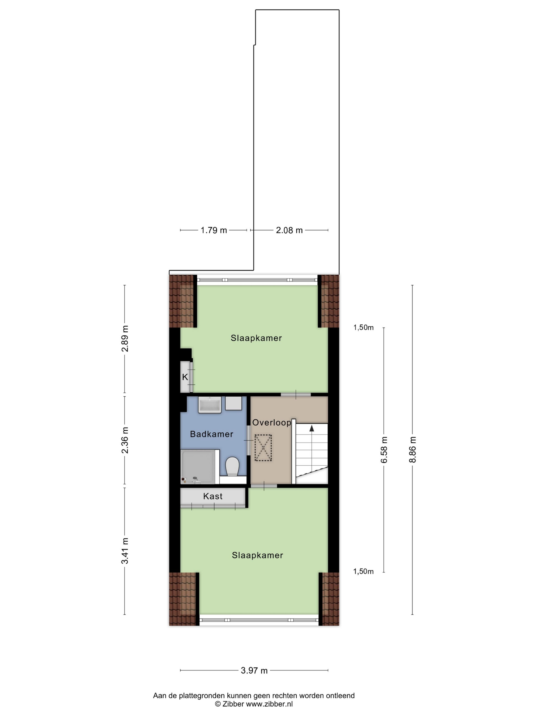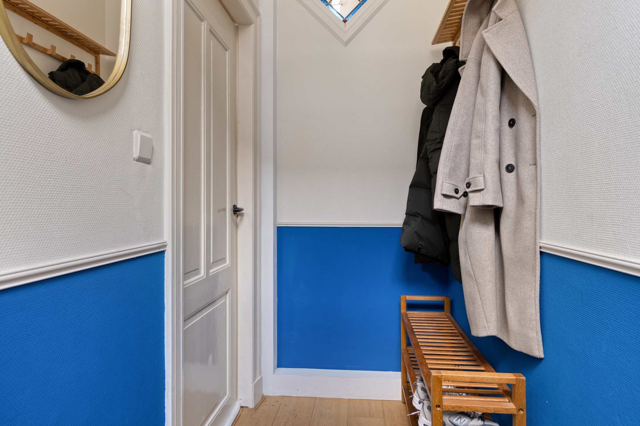 Aan de achterzijde bevindt zich de tweede slaapkamer, eveneens voorzien van een dakkapel. Deze is in 2024 opnieuw geschilderd en daarbij is ook de boeiboord aan de achterzijde vervangen. Tussen beide slaapkamers ligt de moderne badkamer, uitgerust met een douche, toilet en wastafel. Vanaf de overloop is via een vlizotrap de praktische bergzolder bereikbaar.