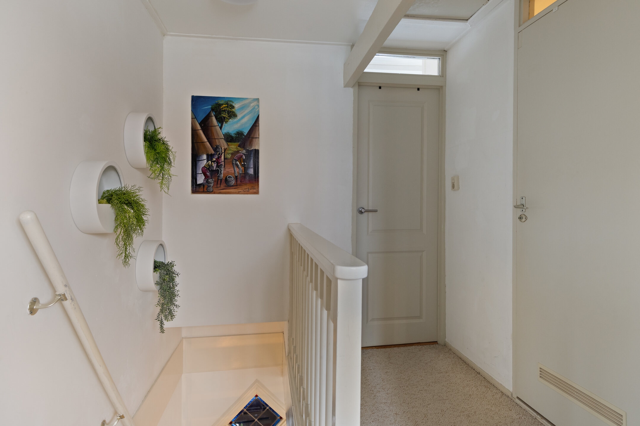 De overloop geeft toegang tot alle vertrekken. Aan de voorzijde ligt een ruime slaapkamer met een volledig vernieuwde dakkapel uit 2021. In datzelfde jaar zijn ook de dakpannen vervangen en is het volledige dak voorzien van Dewin-renovatieplaten, inclusief vernieuwde loodstroken en het loodwerk rondom de schoorsteen, wat bijdraagt aan comfort en duurzaamheid.