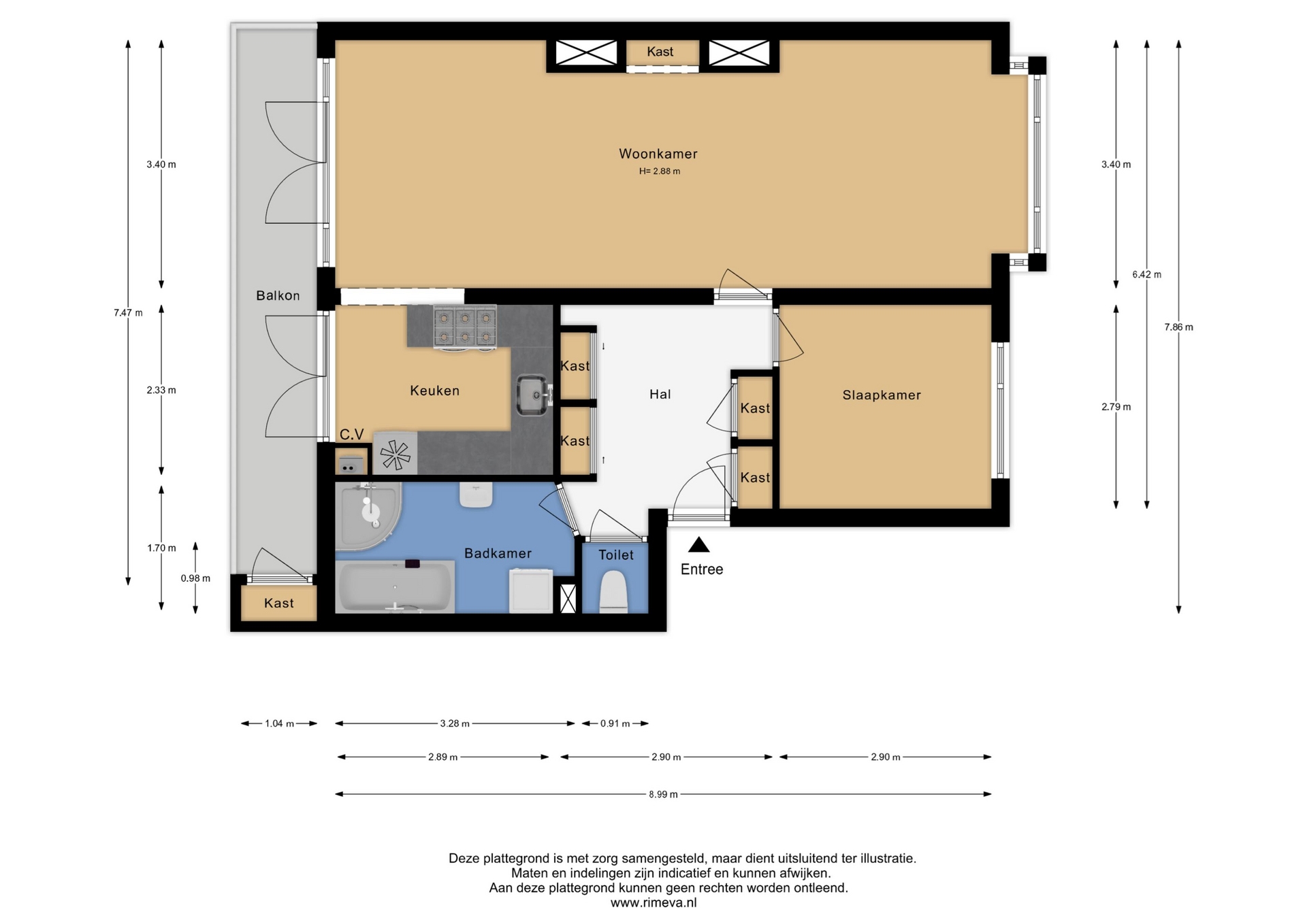 - Overige inpandige ruimte 1m2 (kast balkon)