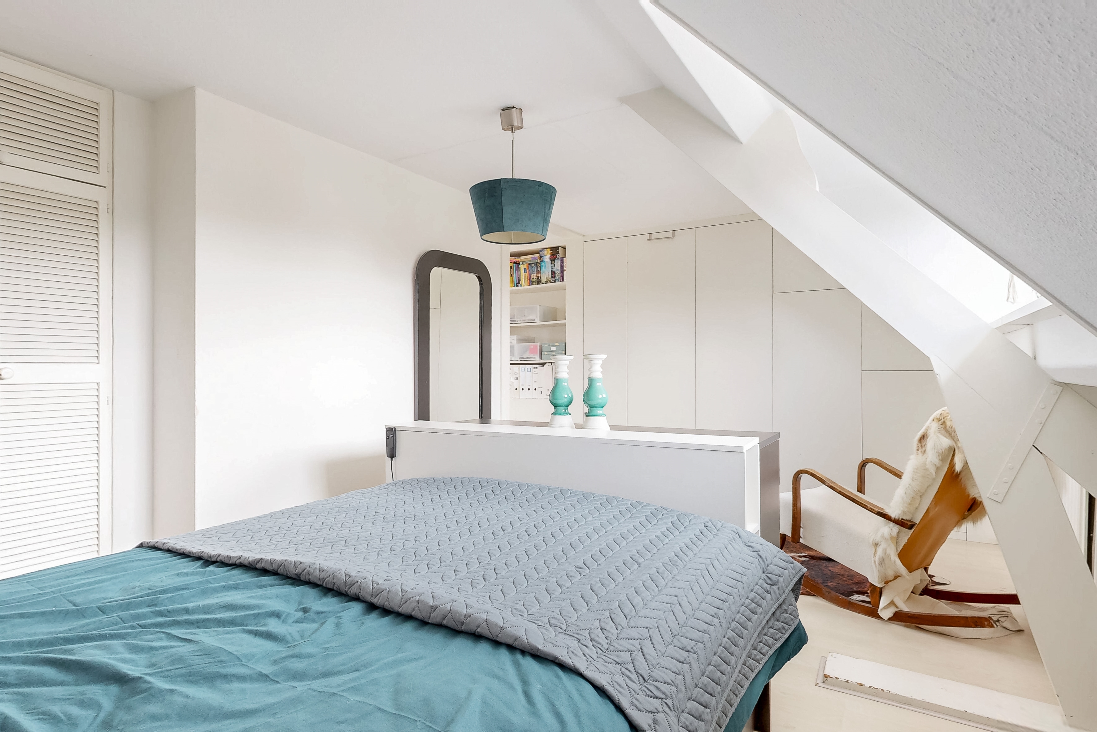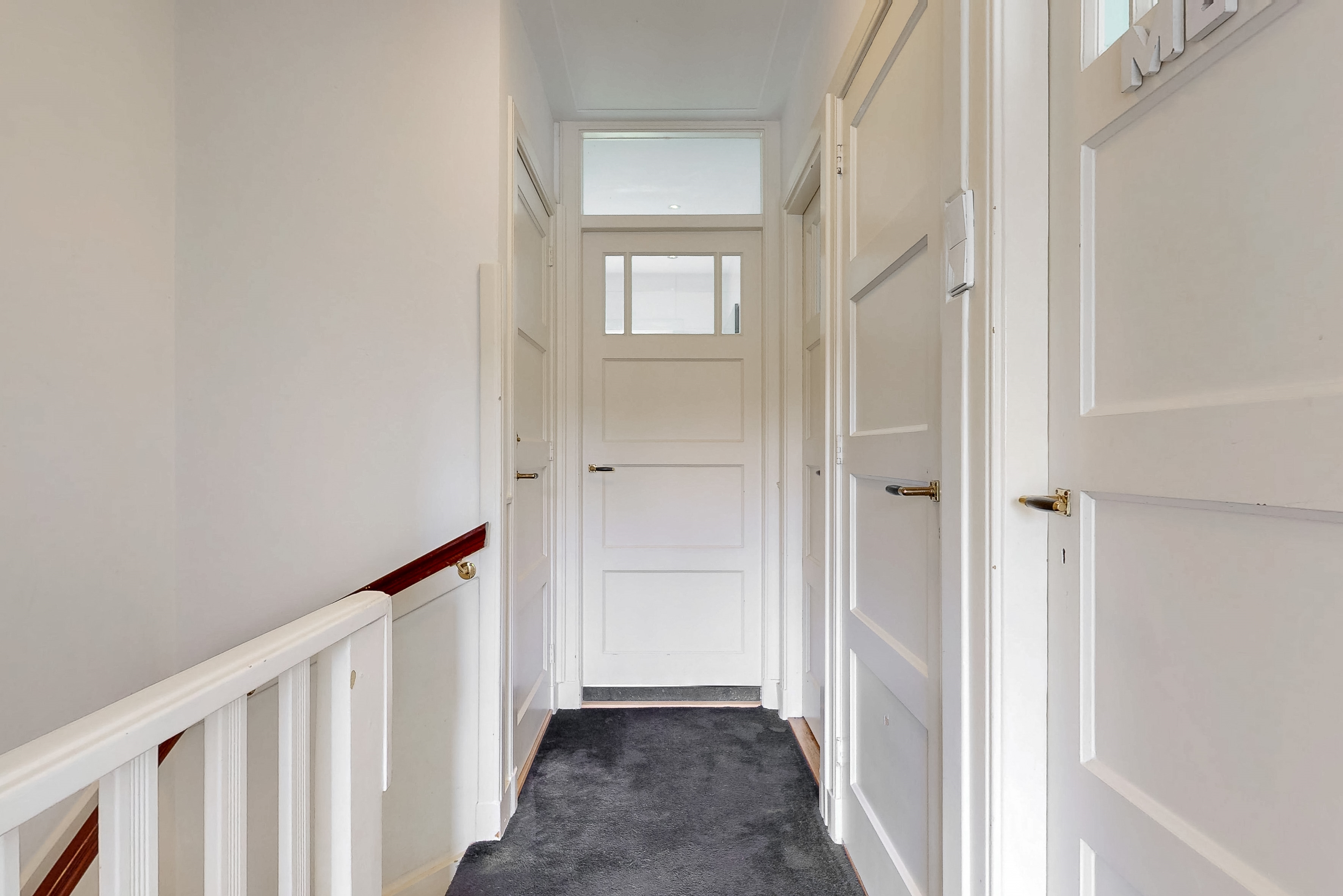 On the first floor there are two spacious bedrooms, a third (sleeping/working) room and the first bathroom. The bedroom at the rear has a closet and patio doors to a spacious balcony with a view over the garden. The bedroom at the front has a charming bay window with a wide windowsill. The luxurious bathroom has daylight and has a spacious walk-in shower, washbasin with mirror, design radiator and built-in wardrobe. The second toilet is located separately on the landing.
