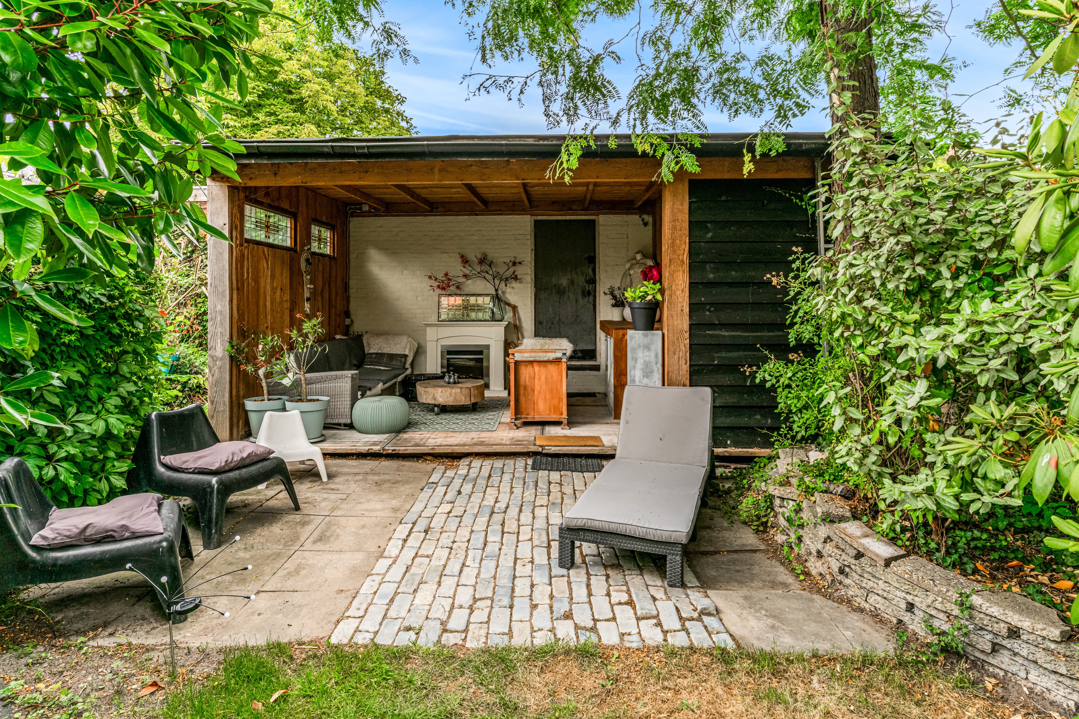 Diepe tuin met overkapping