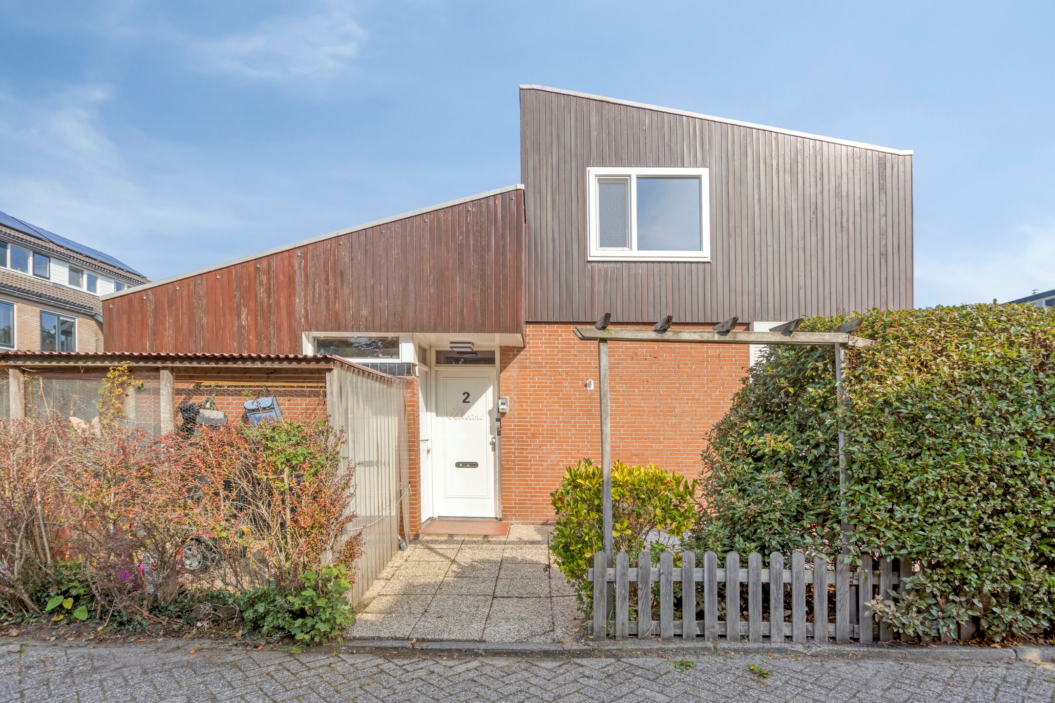 Surrounding the home is a beautifully landscaped garden that offers both sun and shade throughout the day. Whether you enjoy a morning coffee in the sunshine or dining in peace in the evening—everything is possible here. At the front, there’s a convenient covered area for bicycles, and at the back, a wooden shed provides ample storage space. There’s also an extra storage cupboard at the front of the house.
