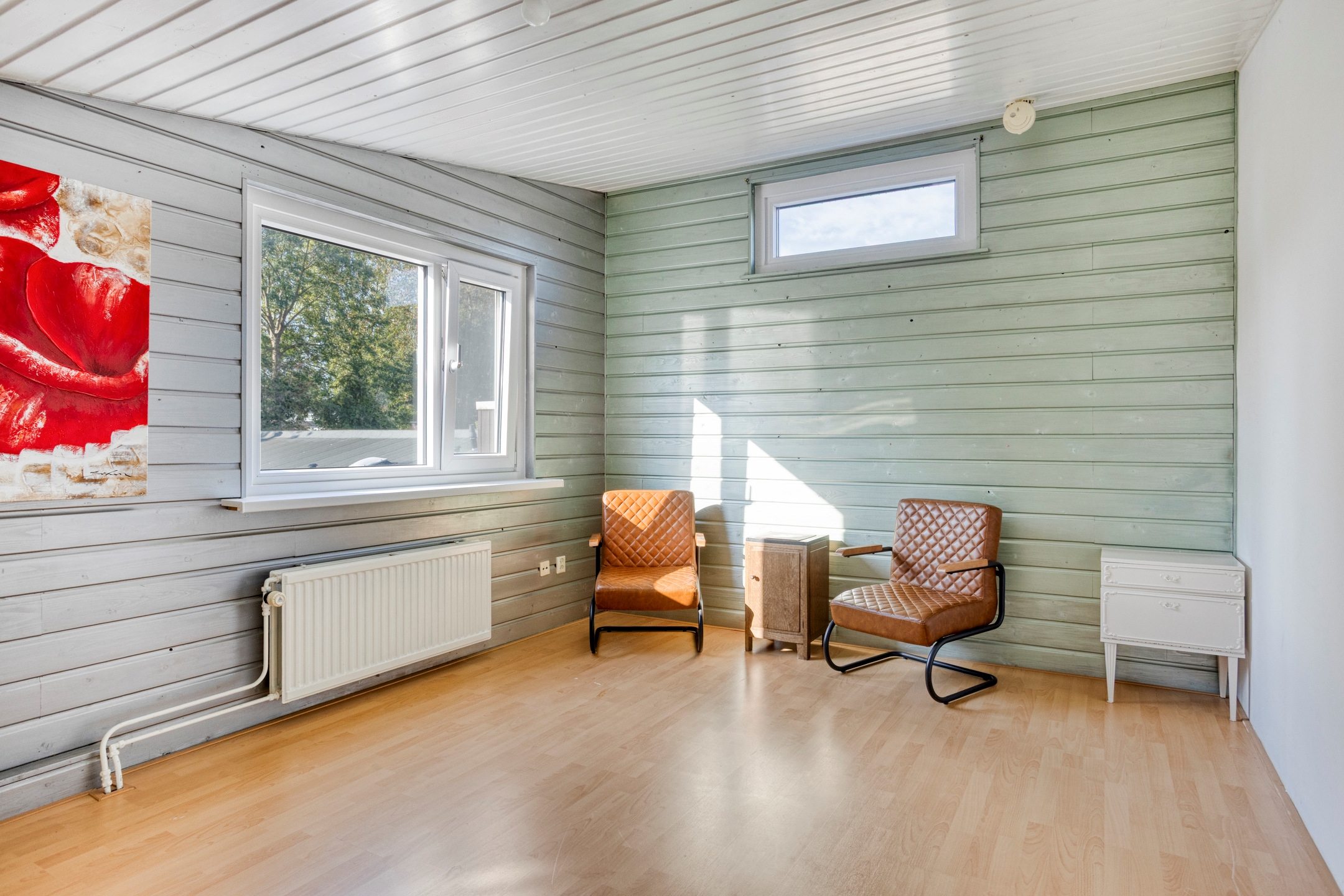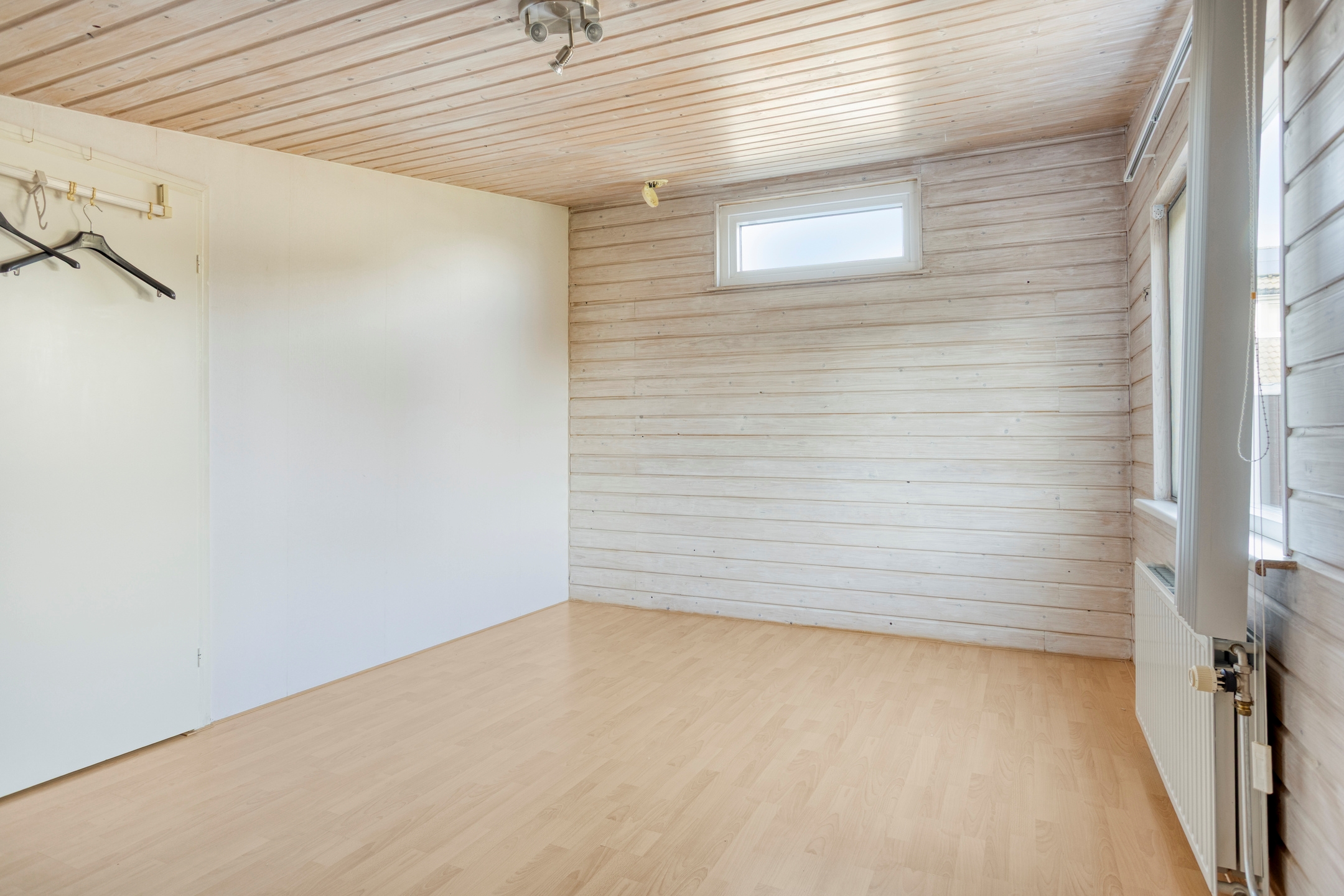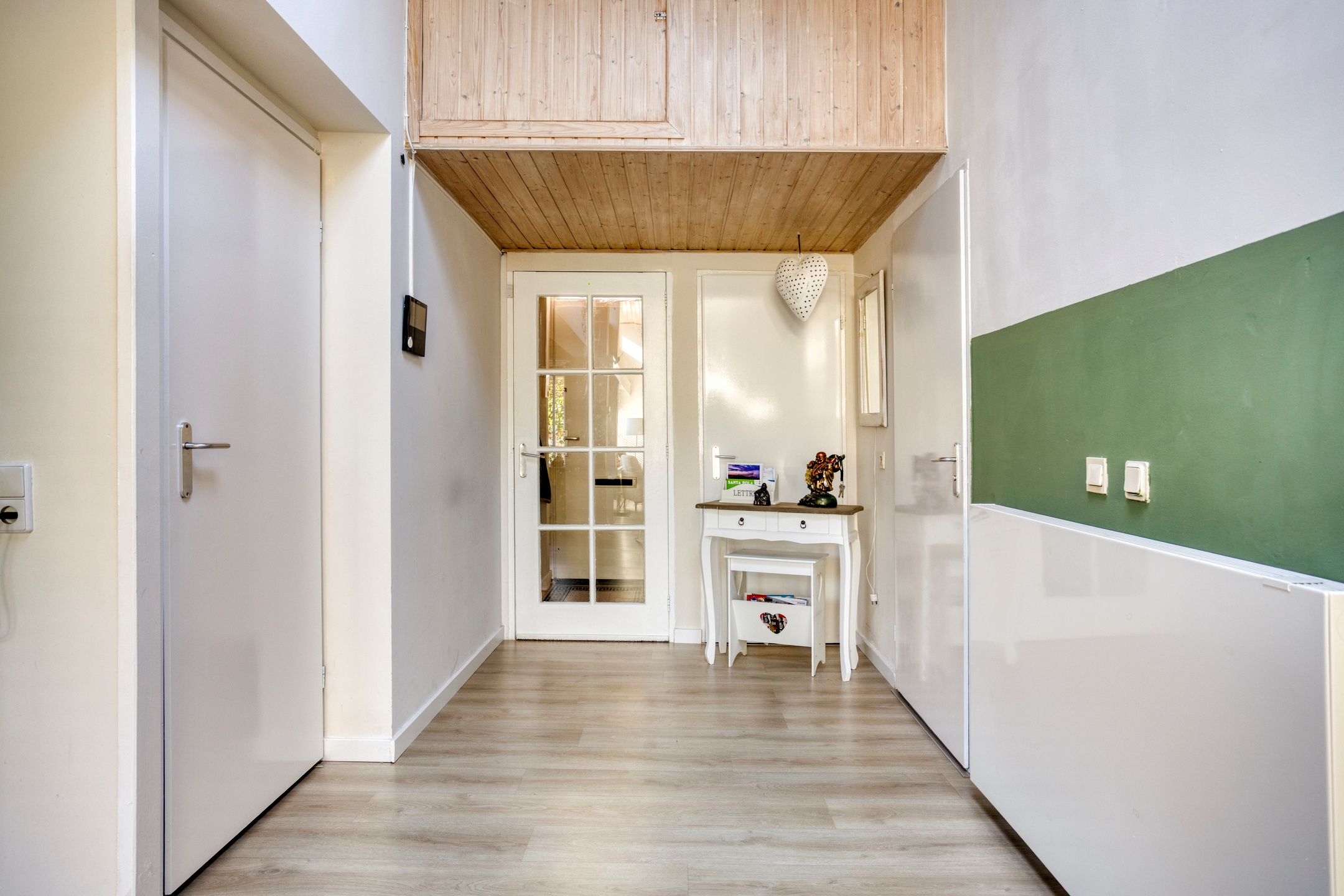 – Gestucte wanden en nette laminaatvloer