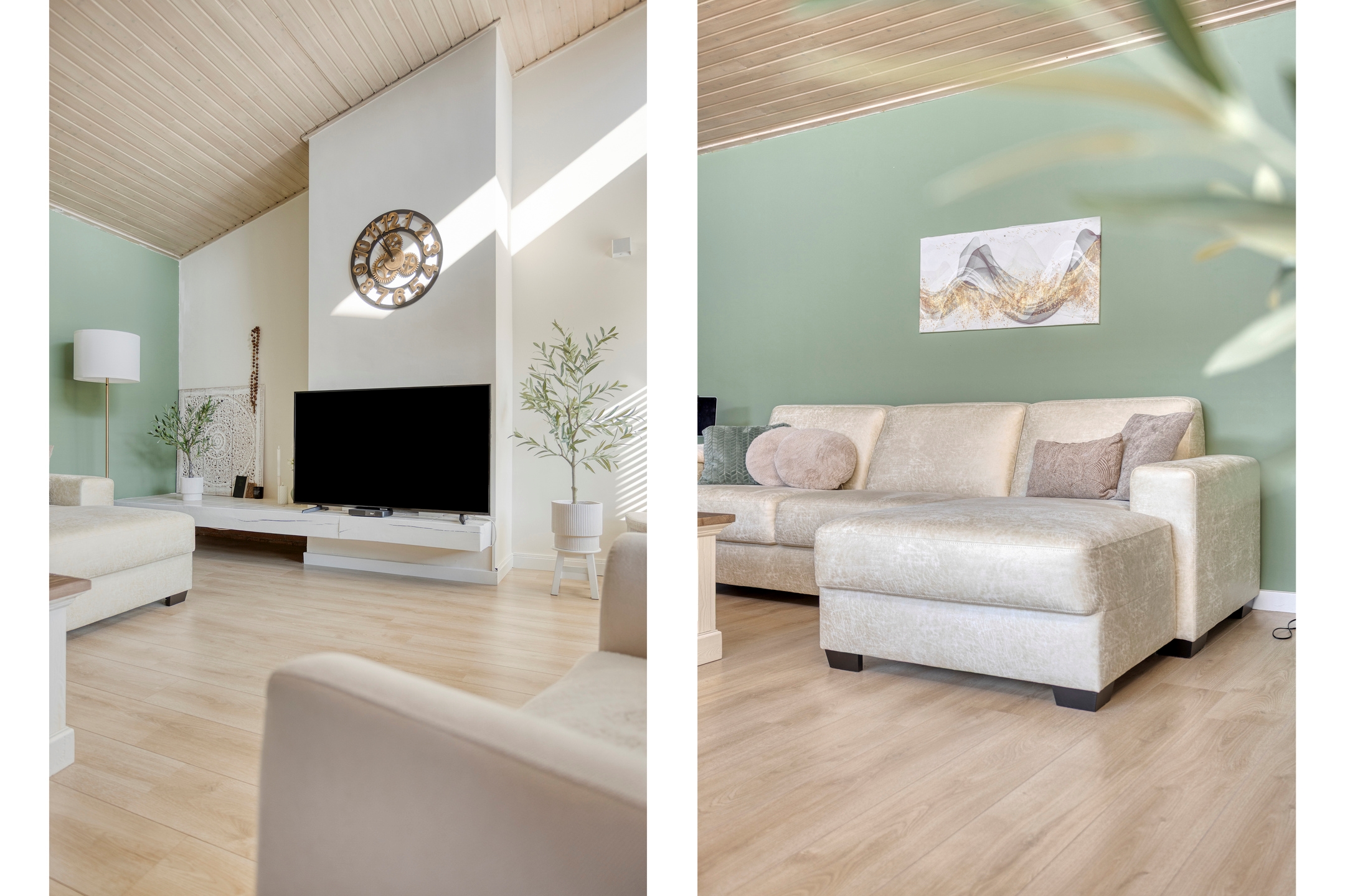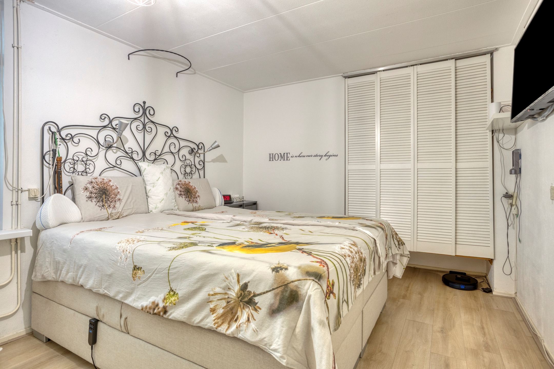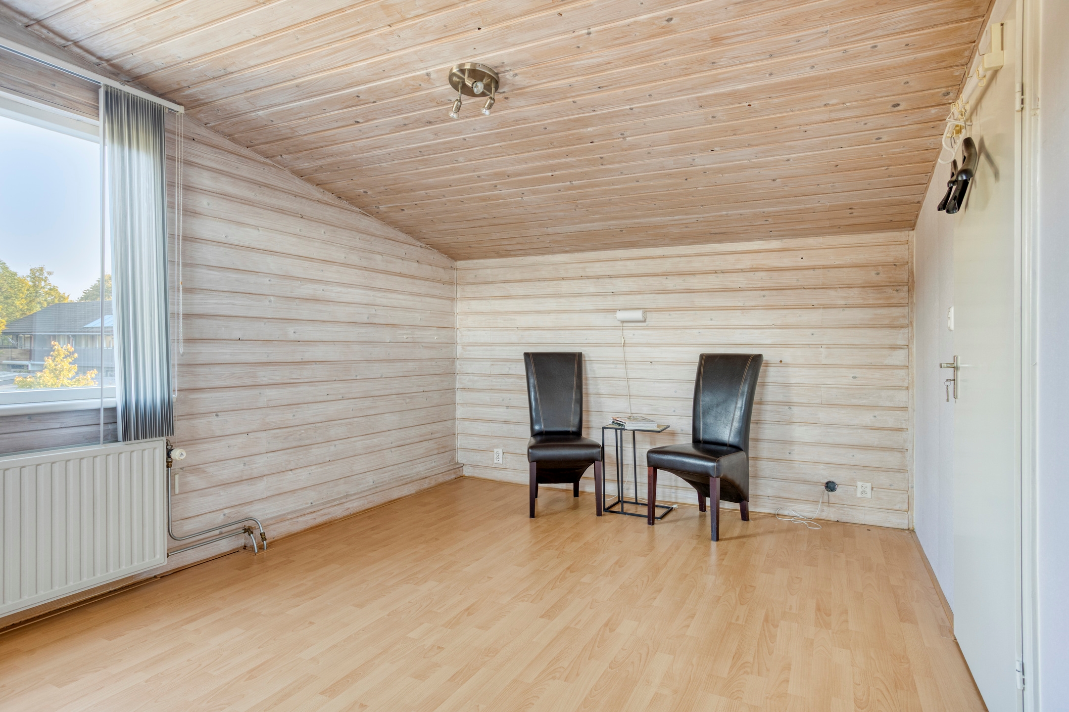 – Gestucte wanden en nette laminaatvloer