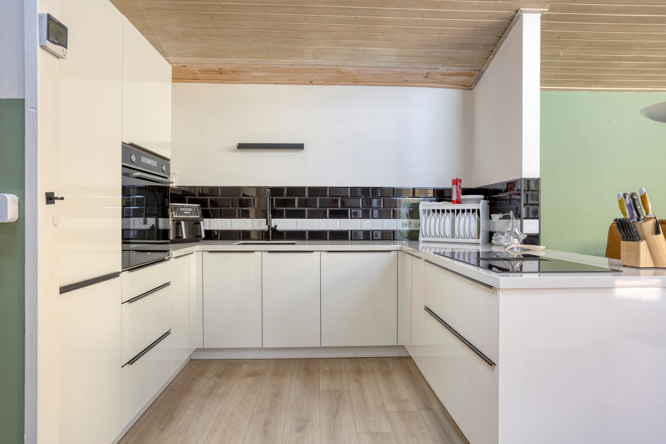 De strakke wanden (gestuct), moderne laminaatvloer en de neutrale kleuren zorgen voor een rustige, eigentijdse uitstraling. Dankzij de airconditioning is het in de zomer heerlijk koel en in de winter behaaglijk warm.