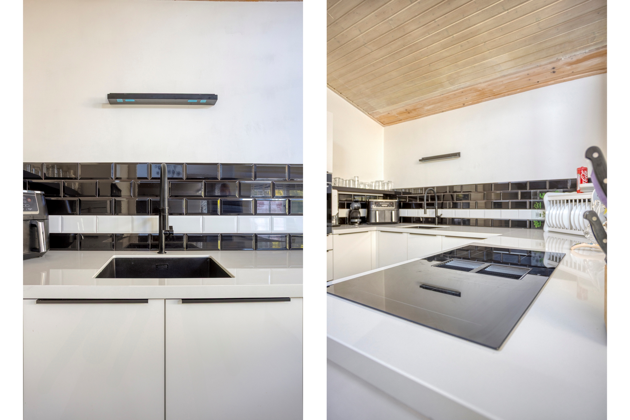 The modern kitchen is smartly designed, offering ample storage and workspace—ideal for cooking enthusiasts. You can prepare your meals here while enjoying the view of the garden.