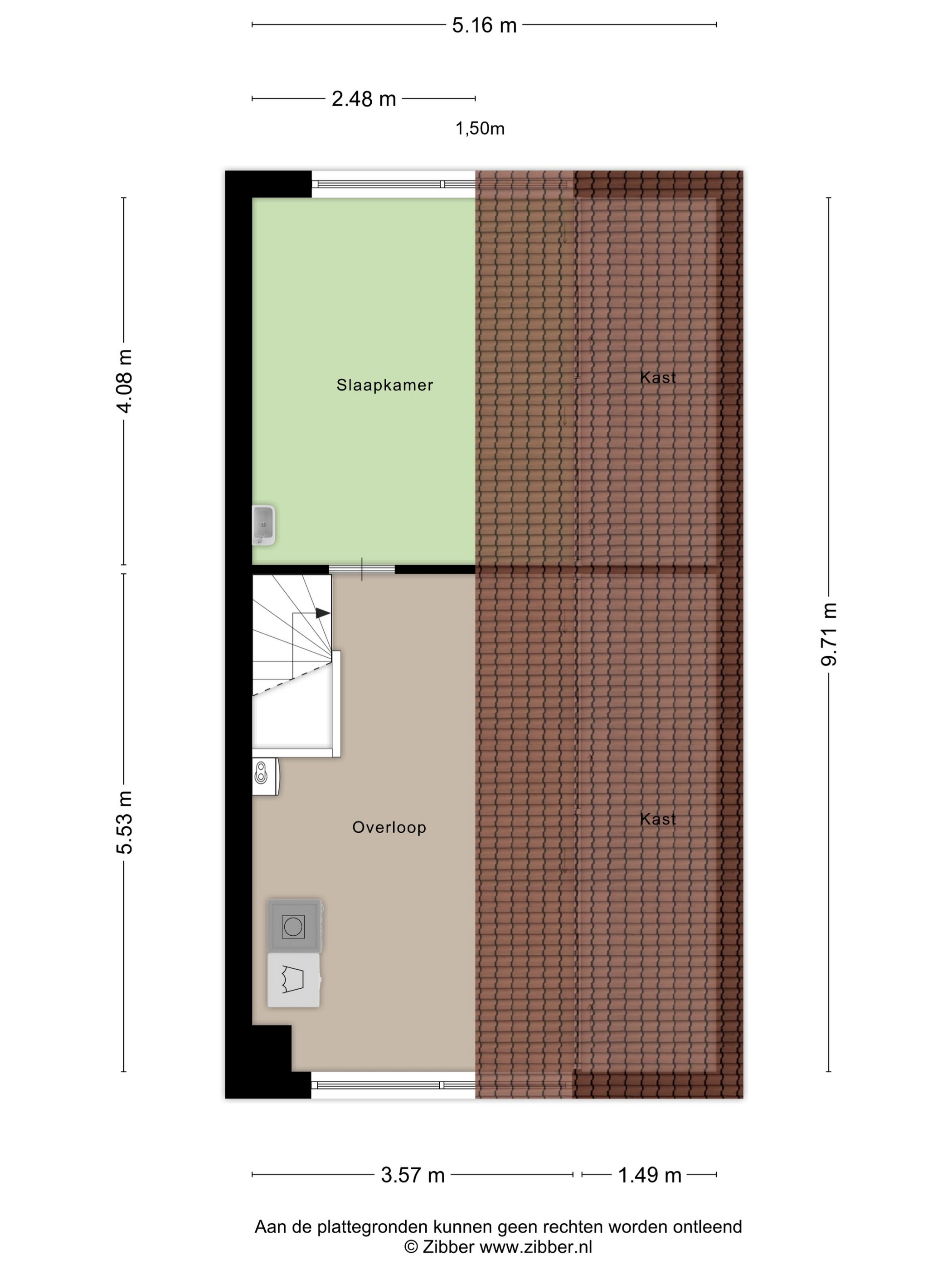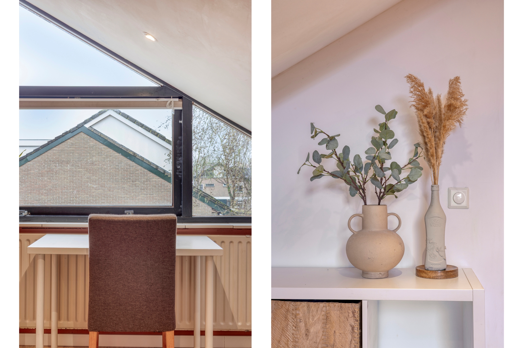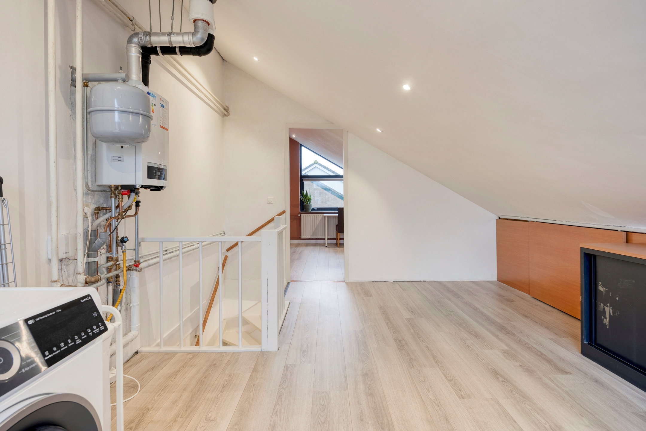 De tweede verdieping verrast met een ruime zolderkamer aan de achterzijde en een royale voorzolder, uitstekend geschikt als werk-, hobby- of slaapkamer. Hier bevinden zich tevens de opstelplaats voor de cv-installatie en de aansluitingen voor wasmachine en droger. Ook deze verdieping is keurig afgewerkt en zonder aanpassingen te gebruiken.