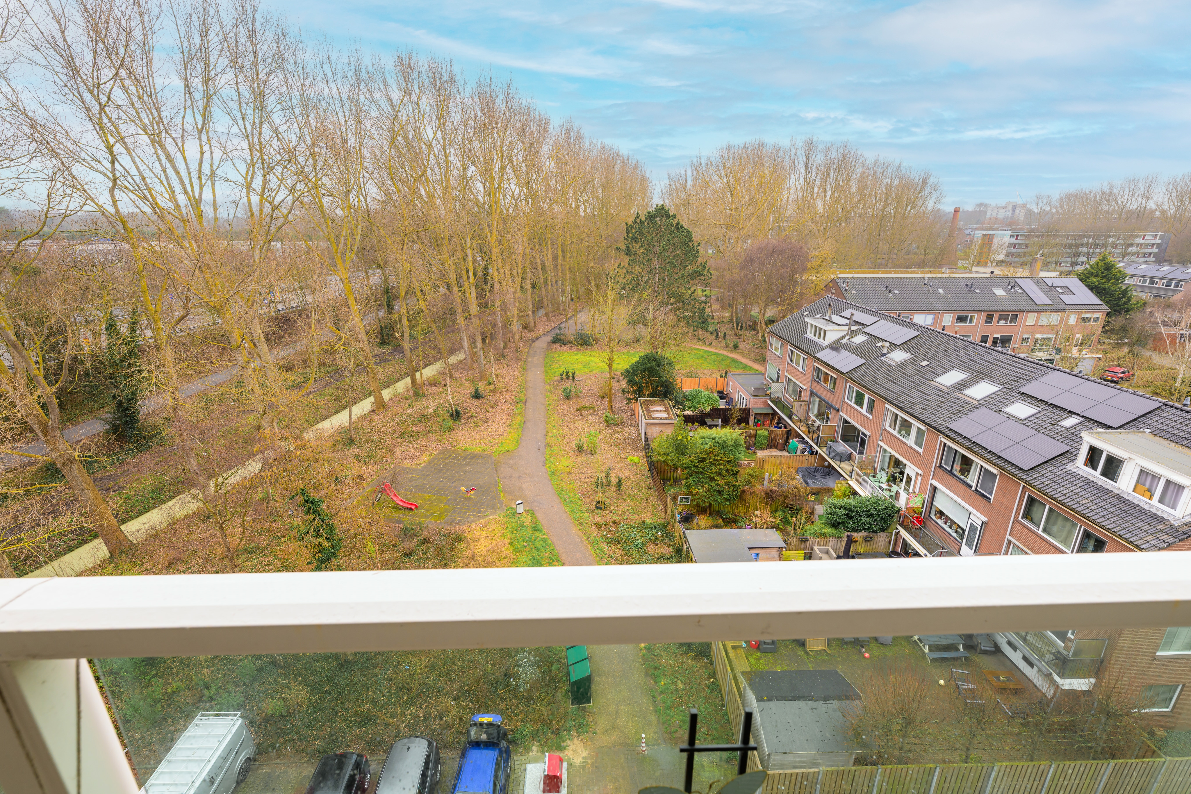 Het complex is gebouwd in 1973 en beschikt over een afgesloten entree met intercom, liftinstallatie en een eigen berging op de begane grond. Dankzij de ligging op de zesde verdieping ervaart u hier rust, privacy en een vrij uitzicht.