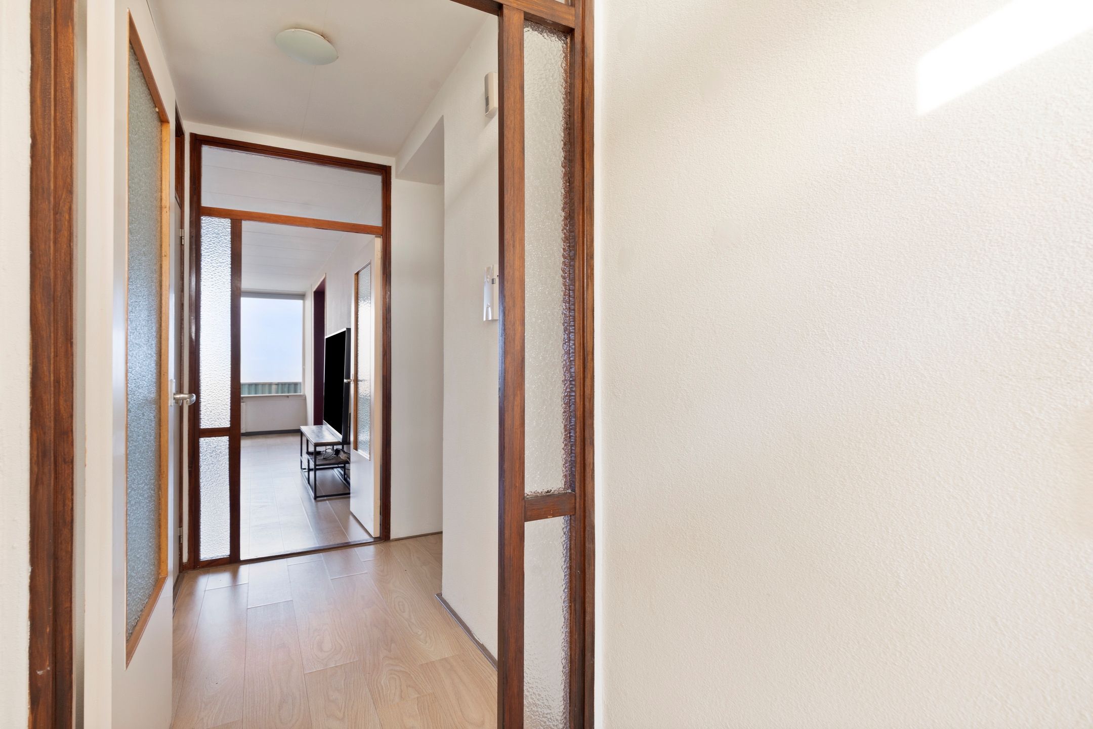 Bij binnenkomst betreedt u de hal die toegang biedt tot alle vertrekken van de woning.
