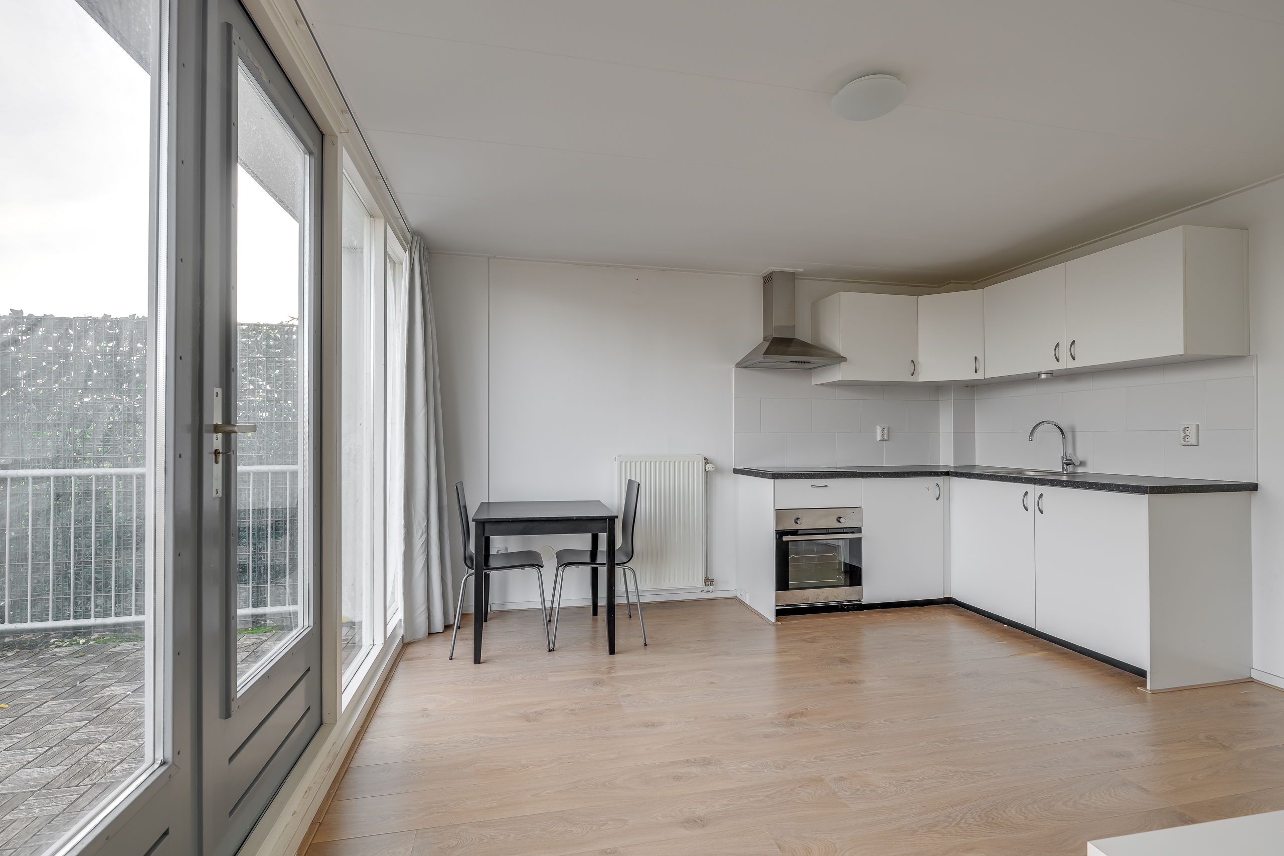 • De open ruimte biedt genoeg plek voor een zithoek en eettafel.