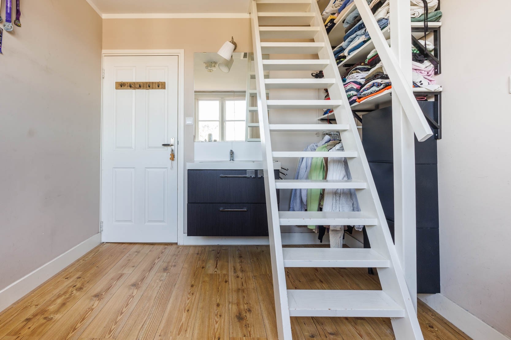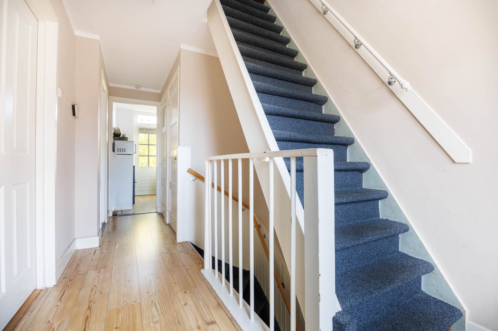 Hal (eigen opgang) met meterkast trapopgang naar de eerste verdieping.