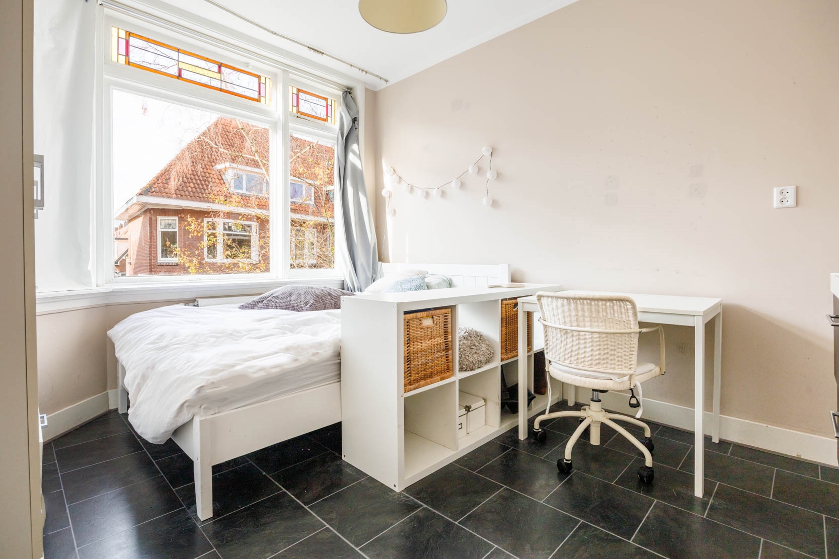 Atmospheric and surprisingly spacious 1930s upper-floor apartment in the Professorenwijk, featuring four bedrooms, a balcony, a storage room on the ground floor, and beautiful stained-glass windows. The property has dormer windows at both the front and rear, creating plenty of extra space. A charming, characteristic home in a lovely neighbourhood!