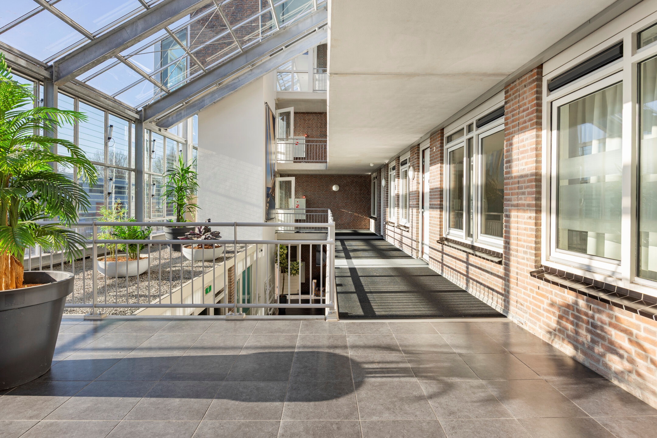 Begane grond: Gezamenlijke entree met bellentableau, brievenbussen, zitplaatsen en lift.