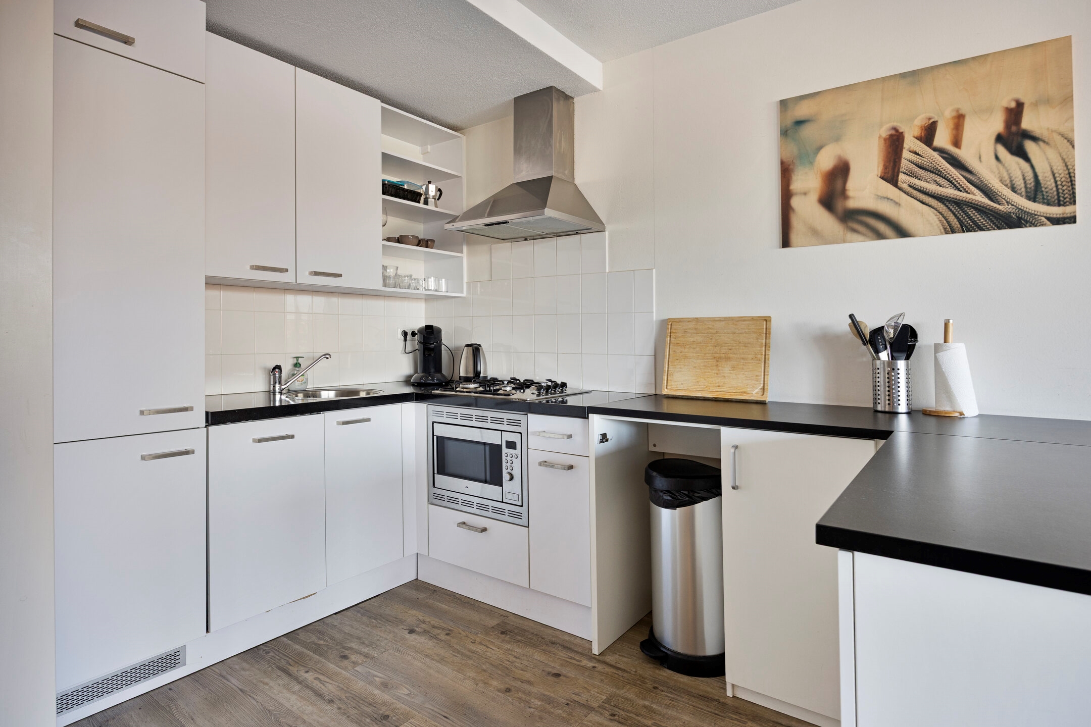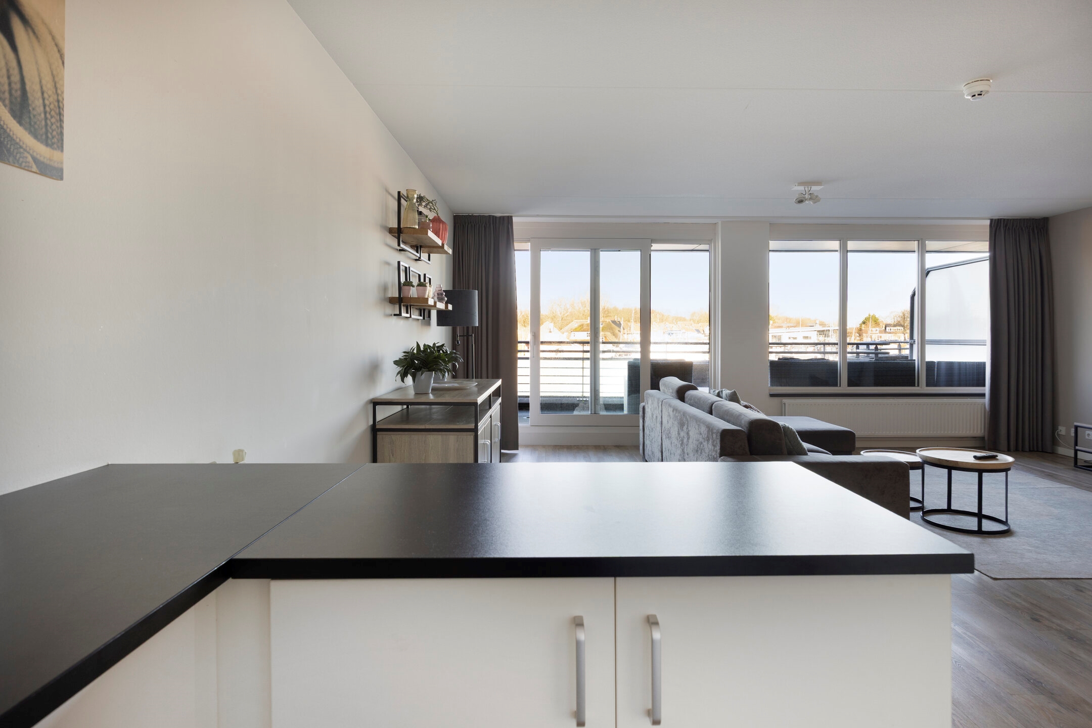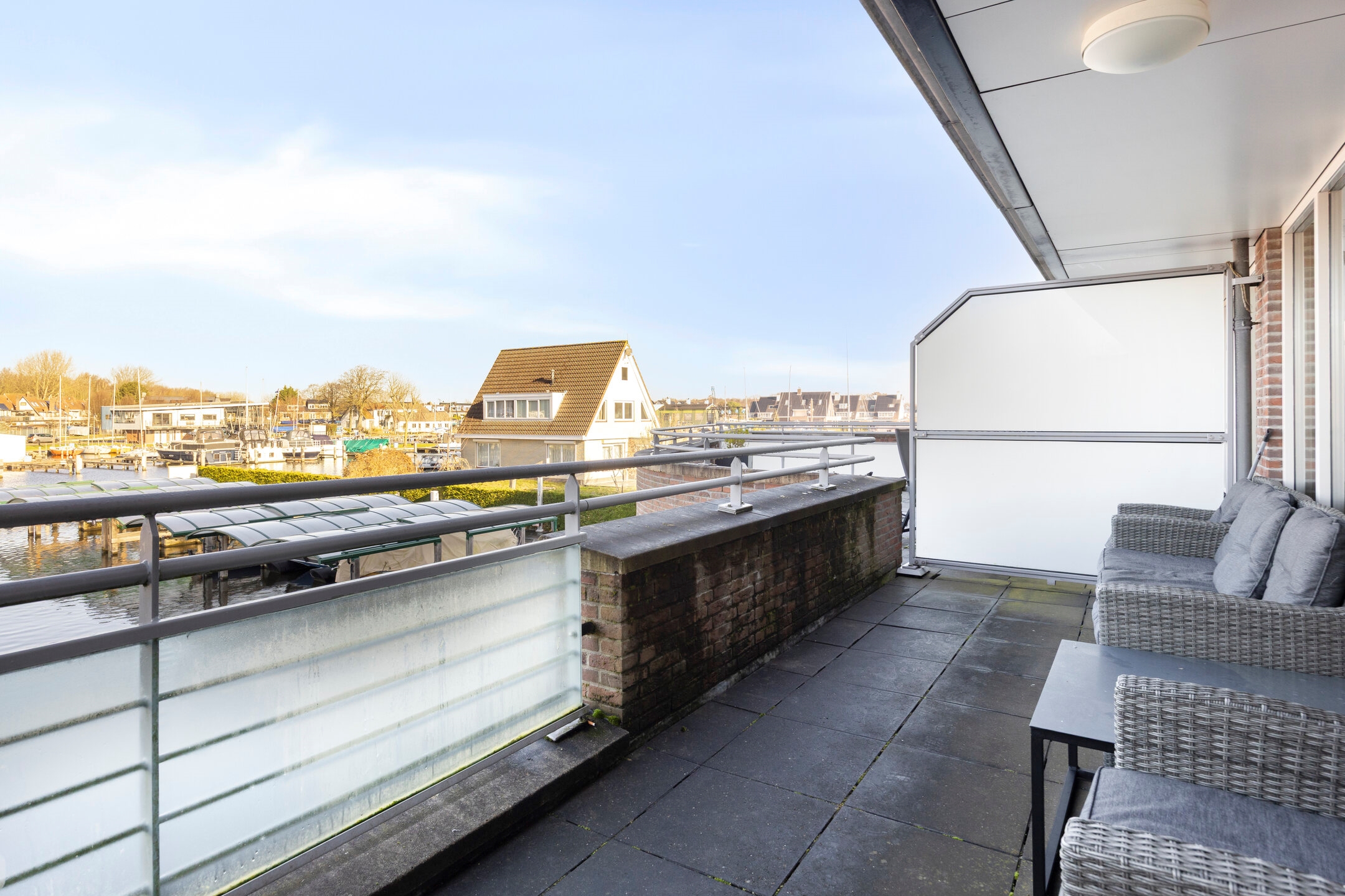 Het 3-kamer appartement verkeert in uitstekende staat en is stijlvol en compleet ingericht. Het beschikt over een zeer ruime woonkamer met open keuken, een moderne badkamer, een slaapkamer, een separaat toilet en een praktische berging/wasruimte. Via de schuifdeuren bereikt u het dakterras, vanwaar u een prachtig uitzicht heeft op de jachthaven.