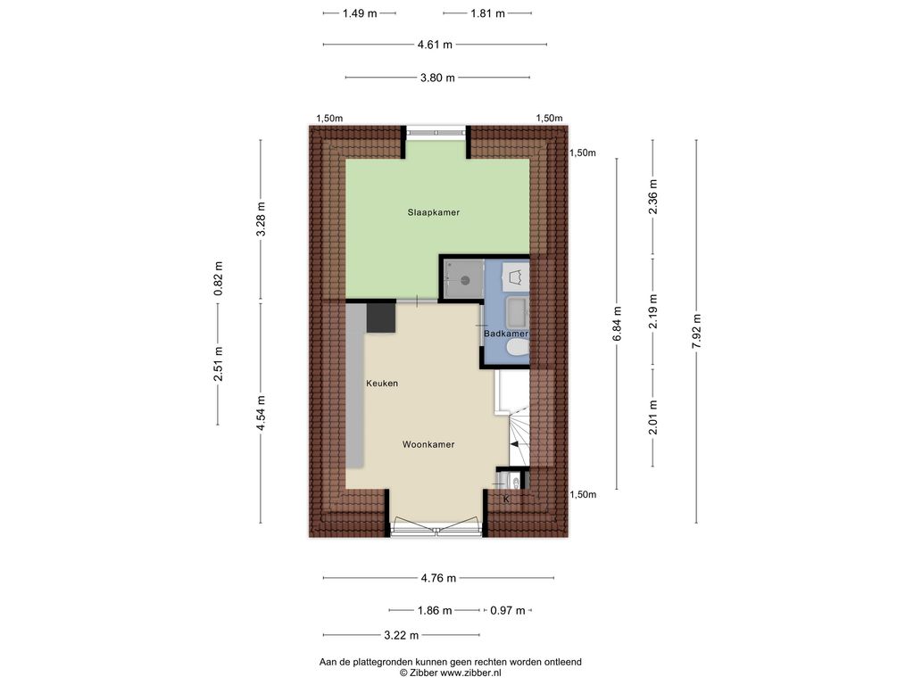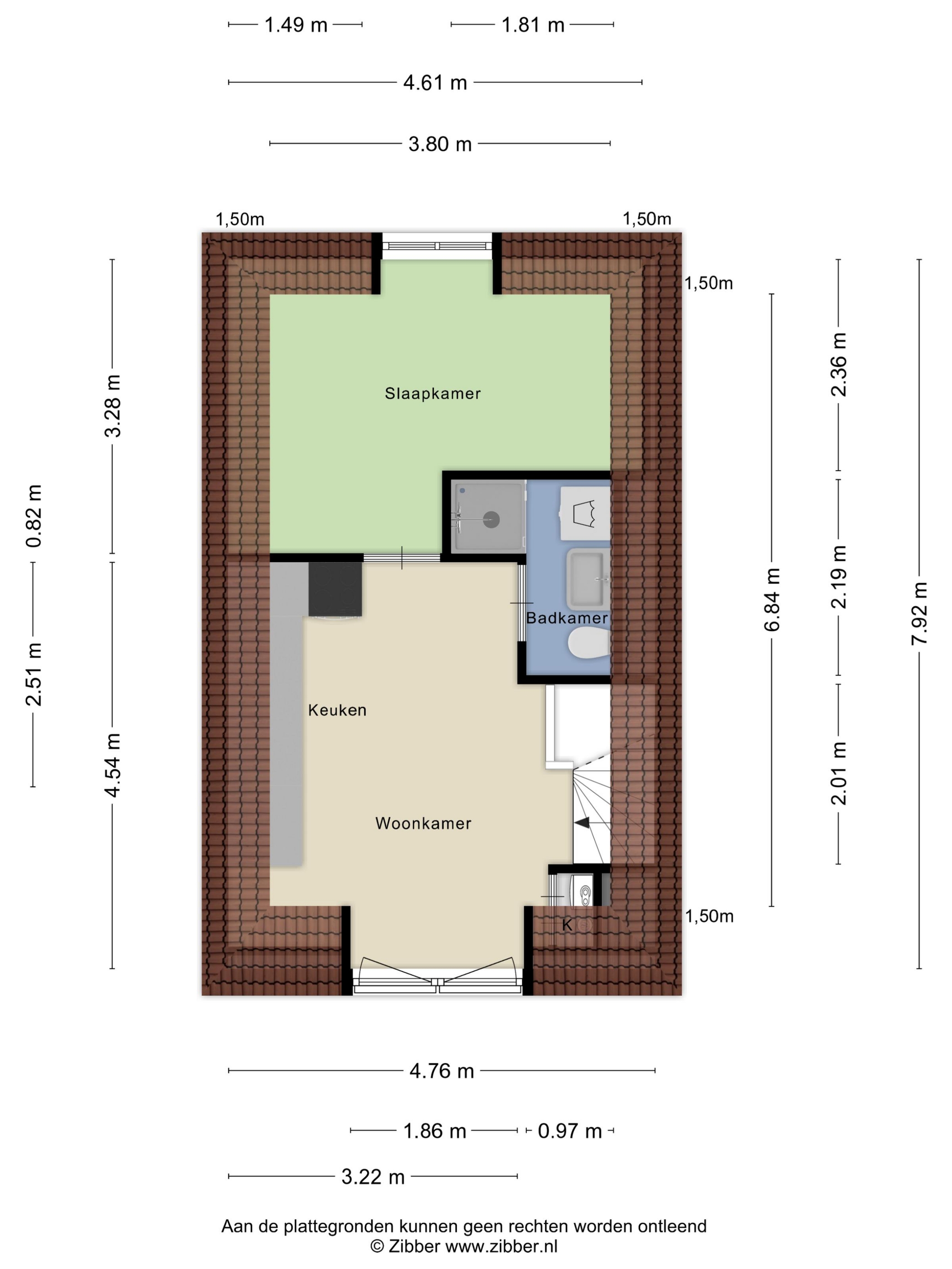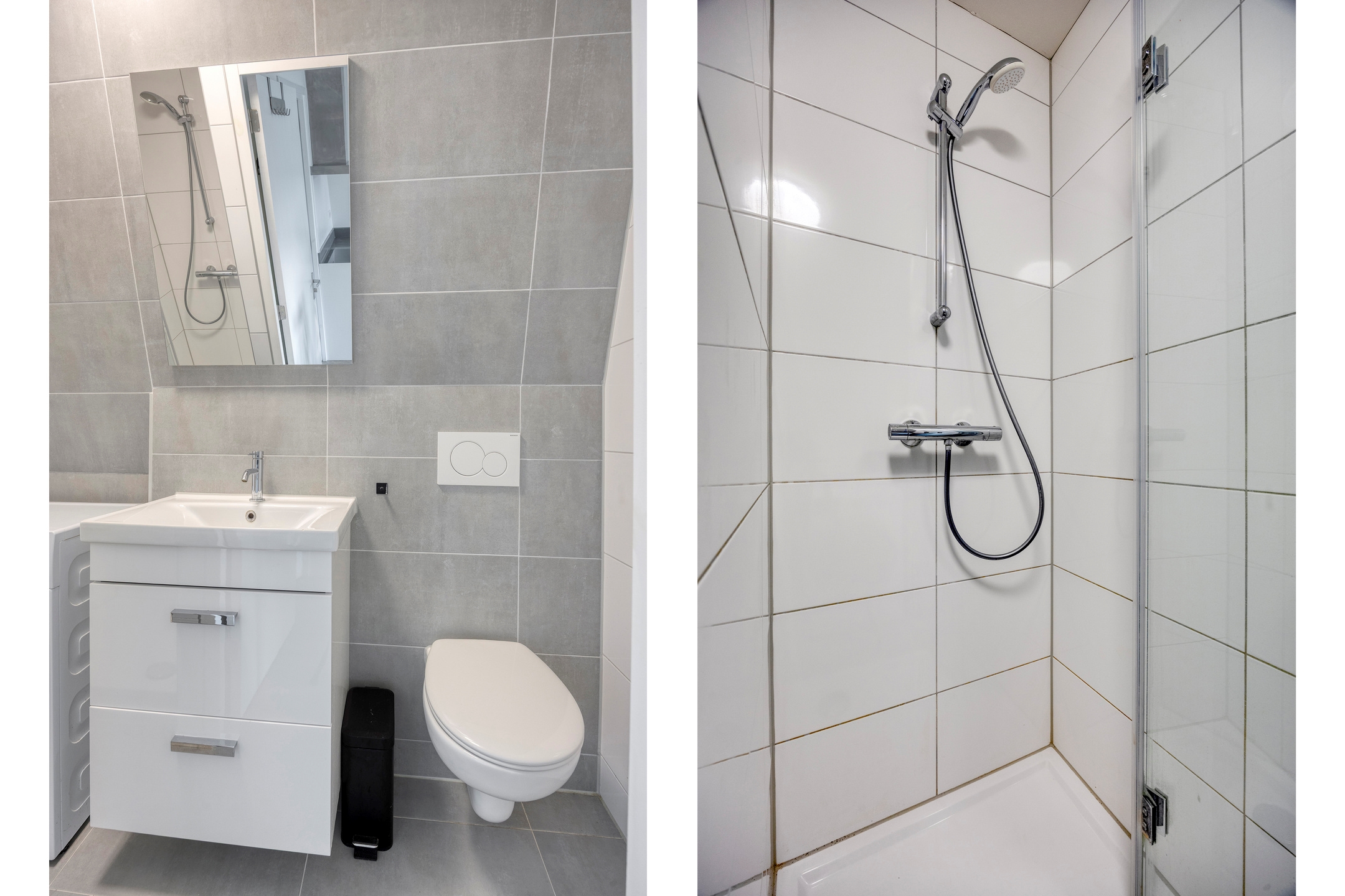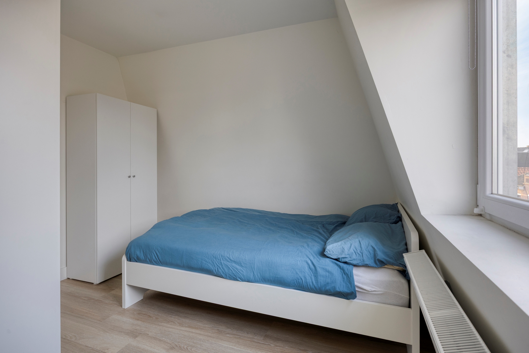 Vanuit de woonkamer bereik je de slaapkamer en de badkamer. In de slaapkamer staat een comfortabel tweepersoonsbed, zijn twee ruime kasten aanwezig en zorgen verduisterende rolgordijnen voor een prettige nachtrust. De badkamer beschikt over een douche, wastafelmeubel, toilet en een praktische was-/droogcombinatie.